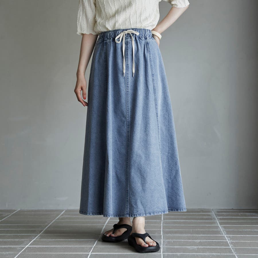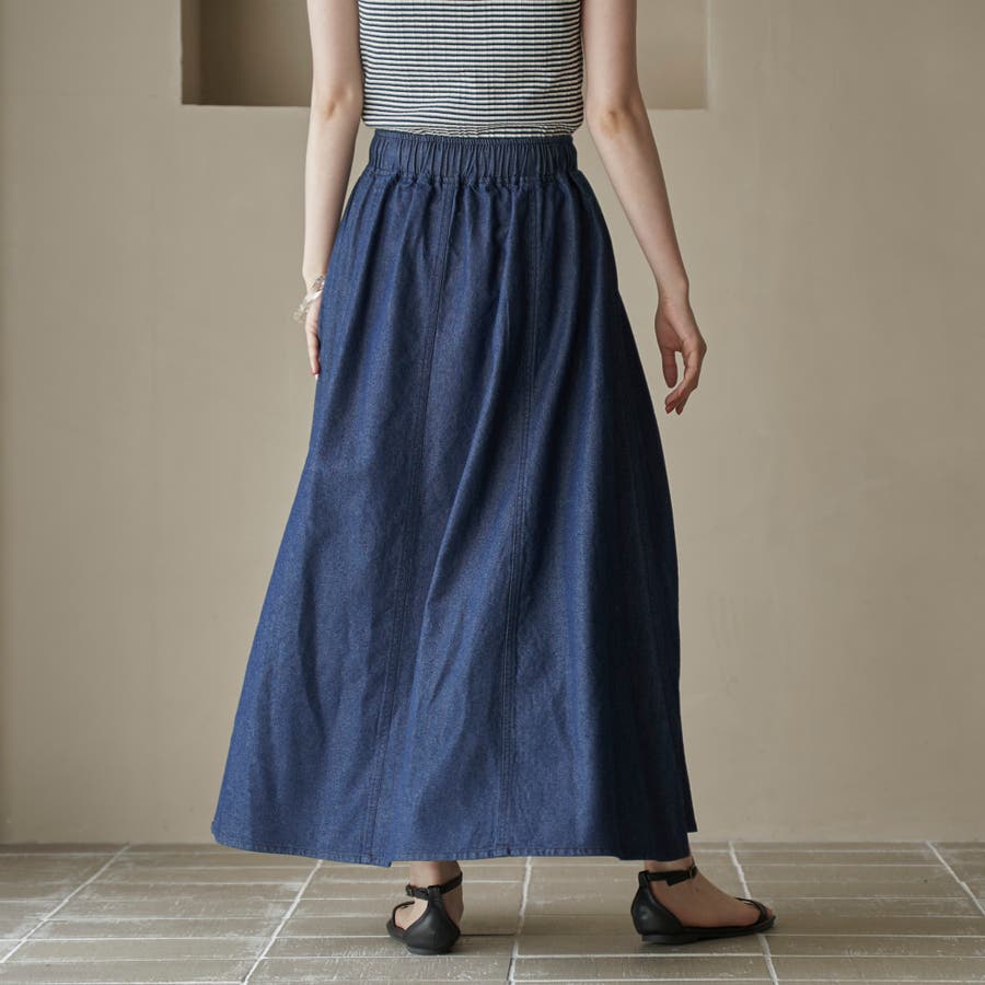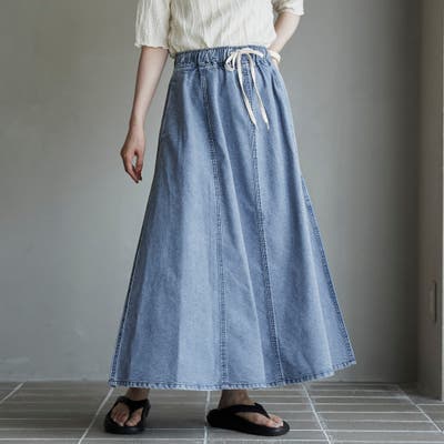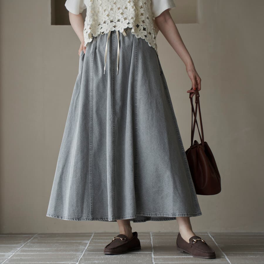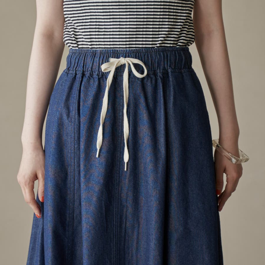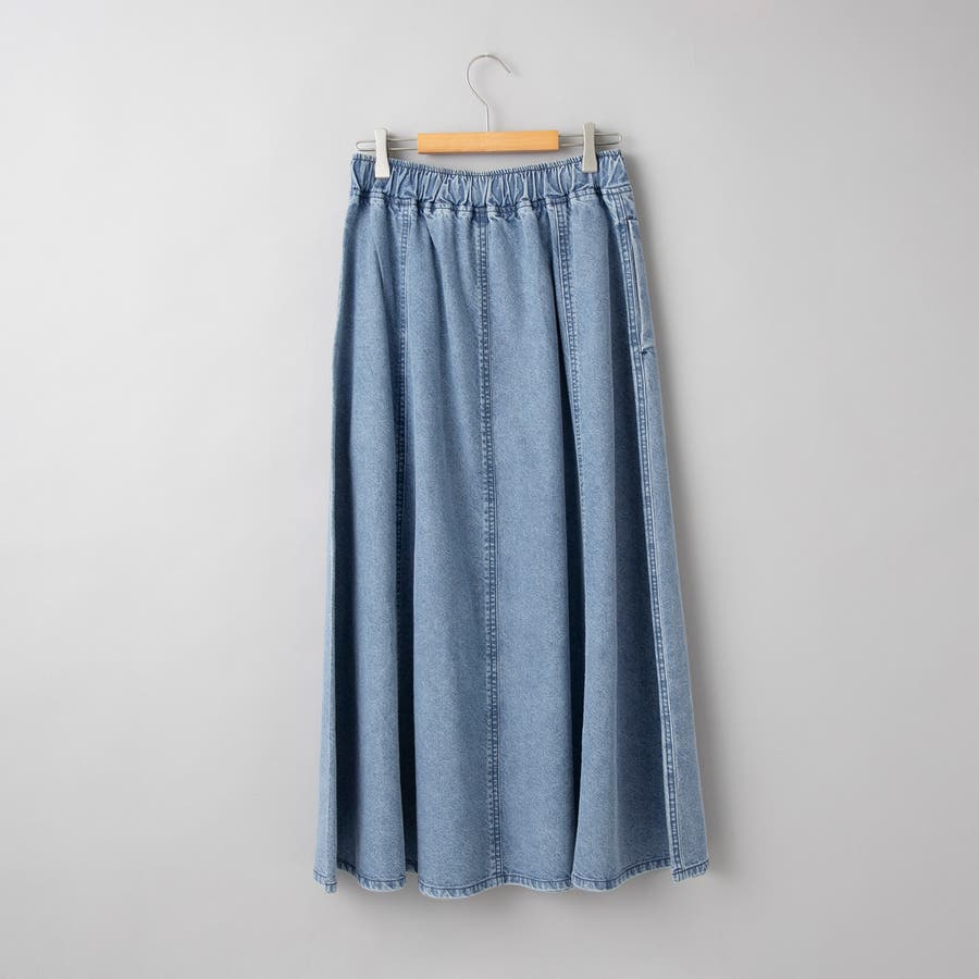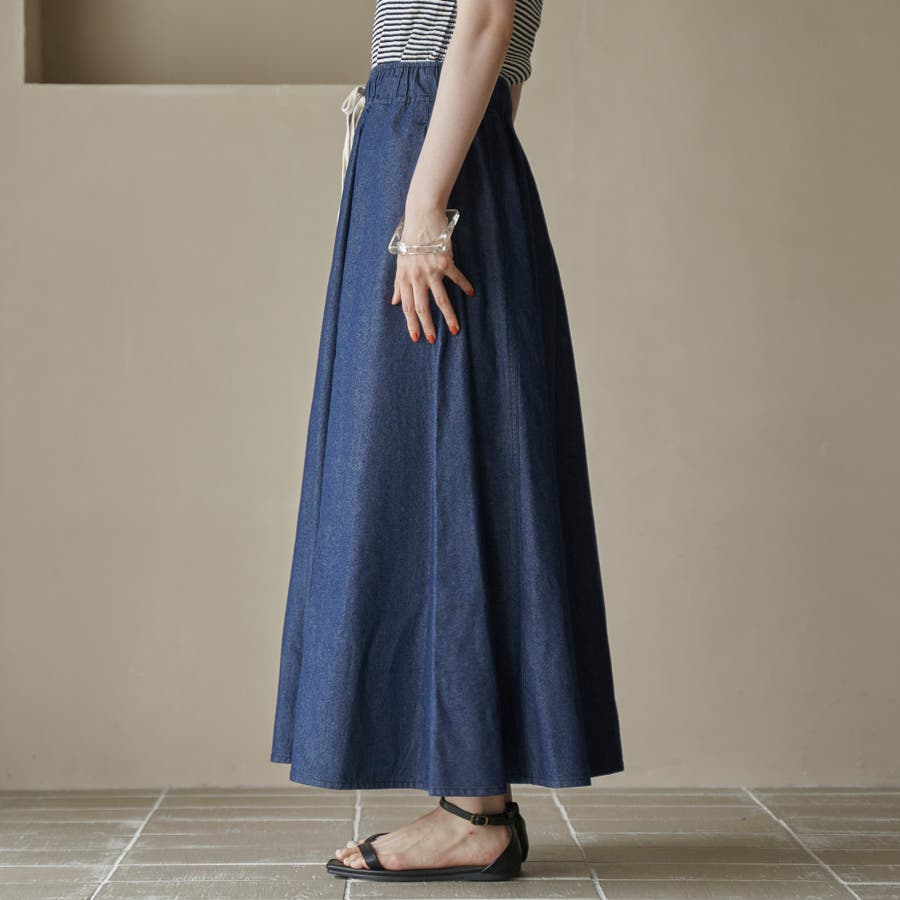 歩くたびに揺れる、涼やかなフレアシルエットが魅力のデニムスカート。