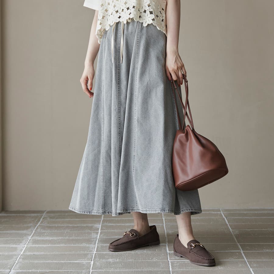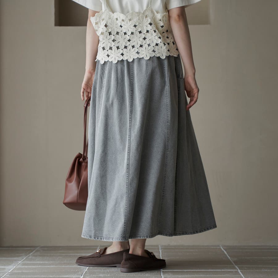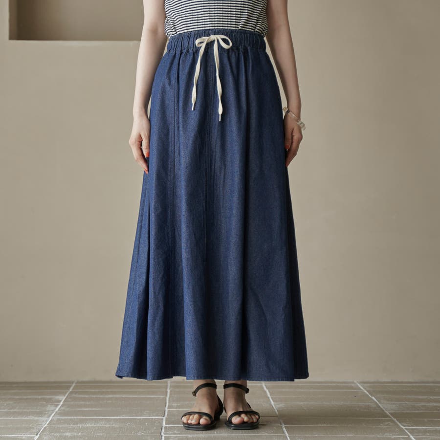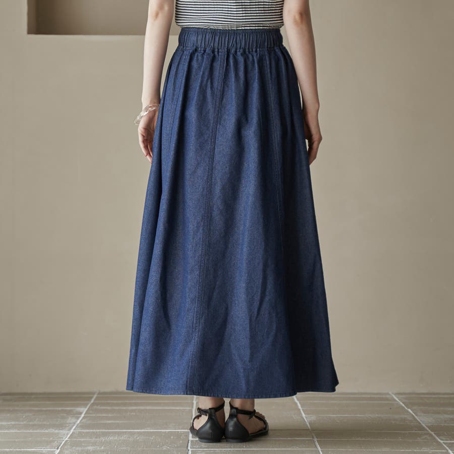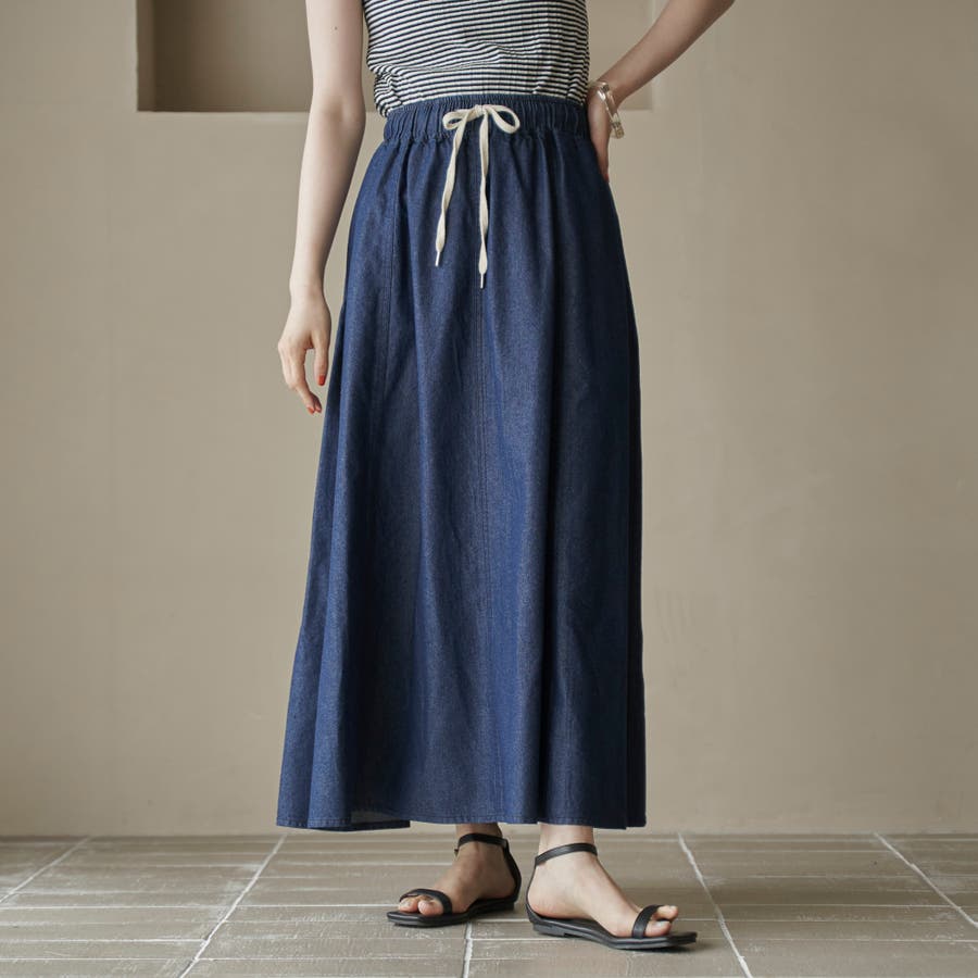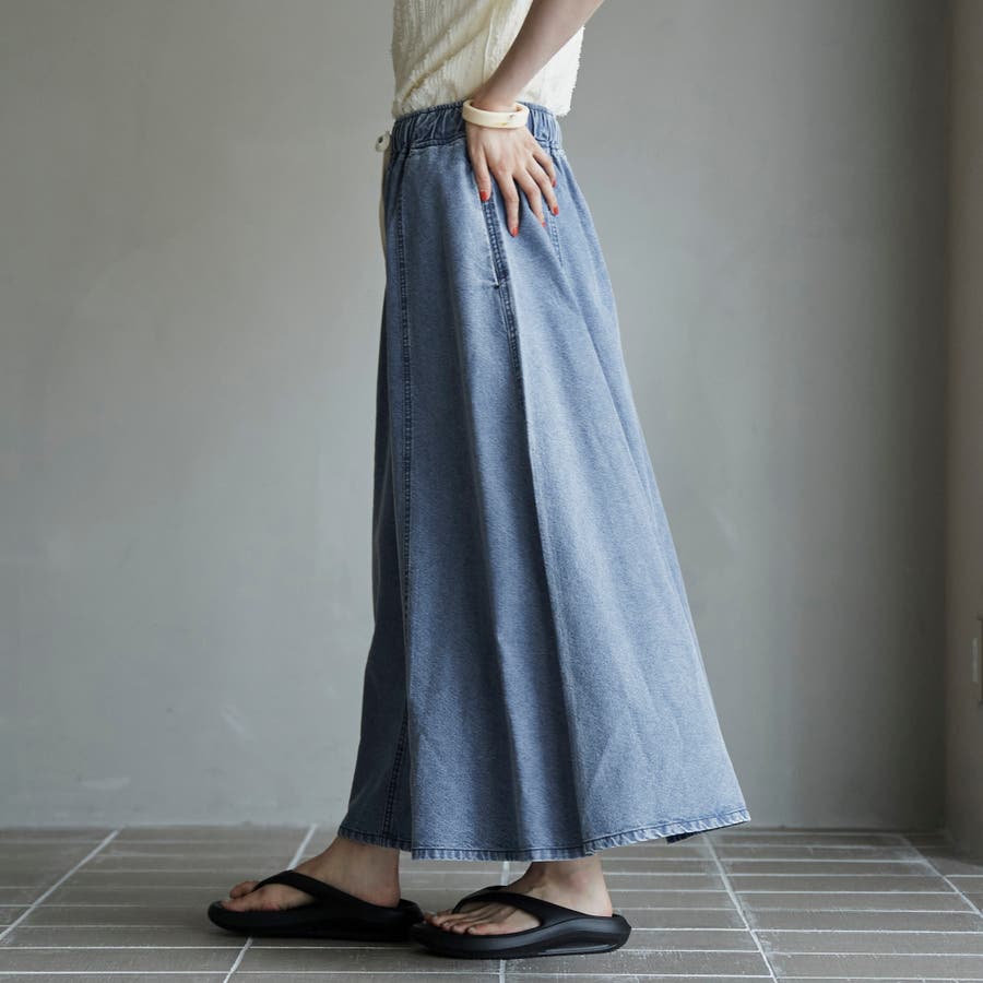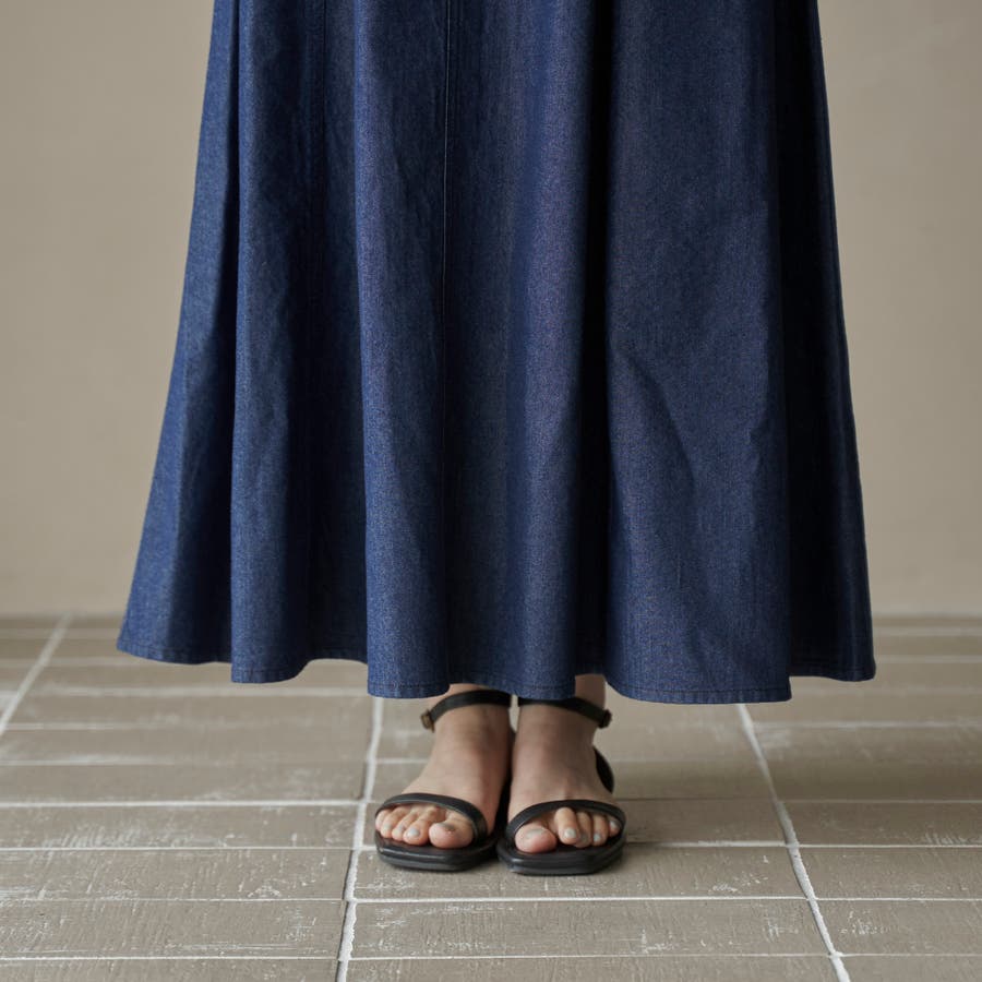 歩くたびに揺れる、涼やかなフレアシルエットが魅力のデニムスカート。