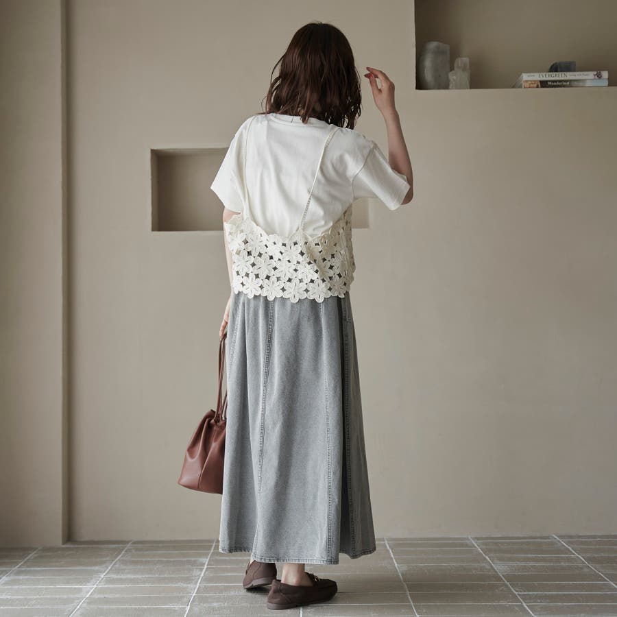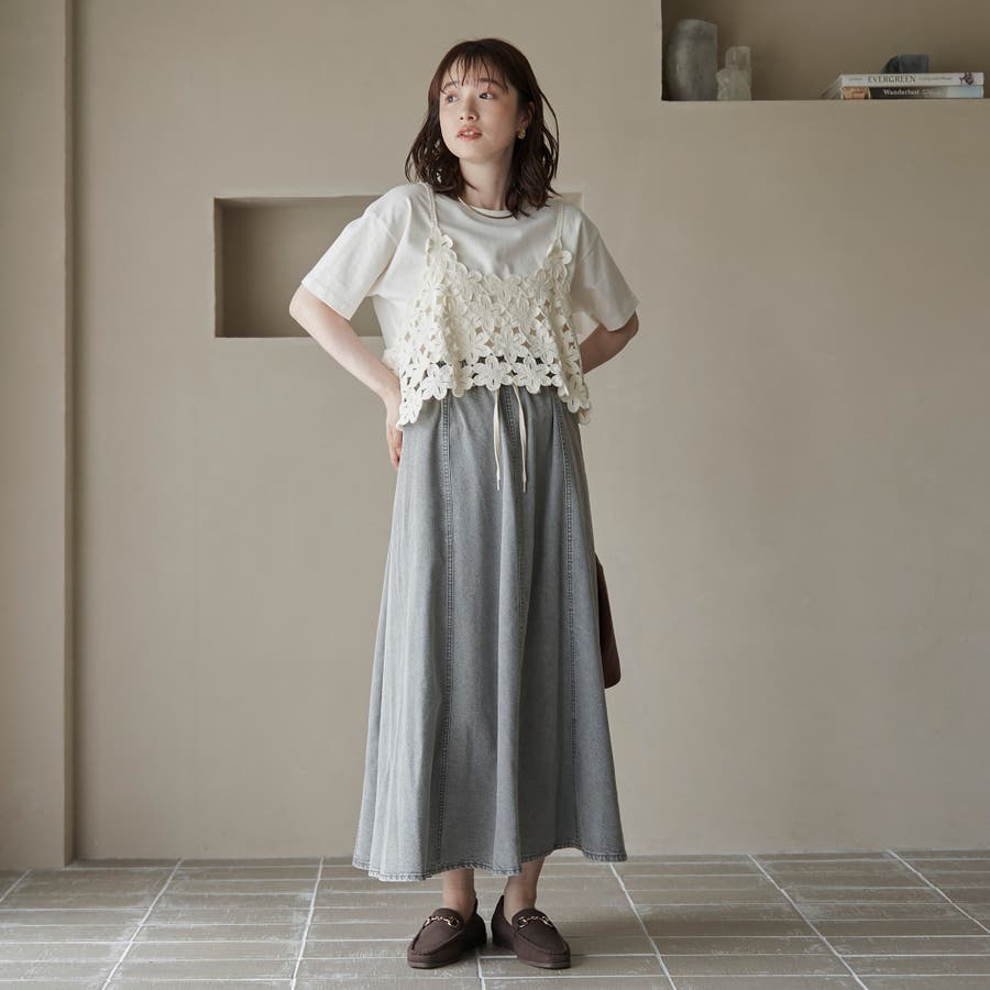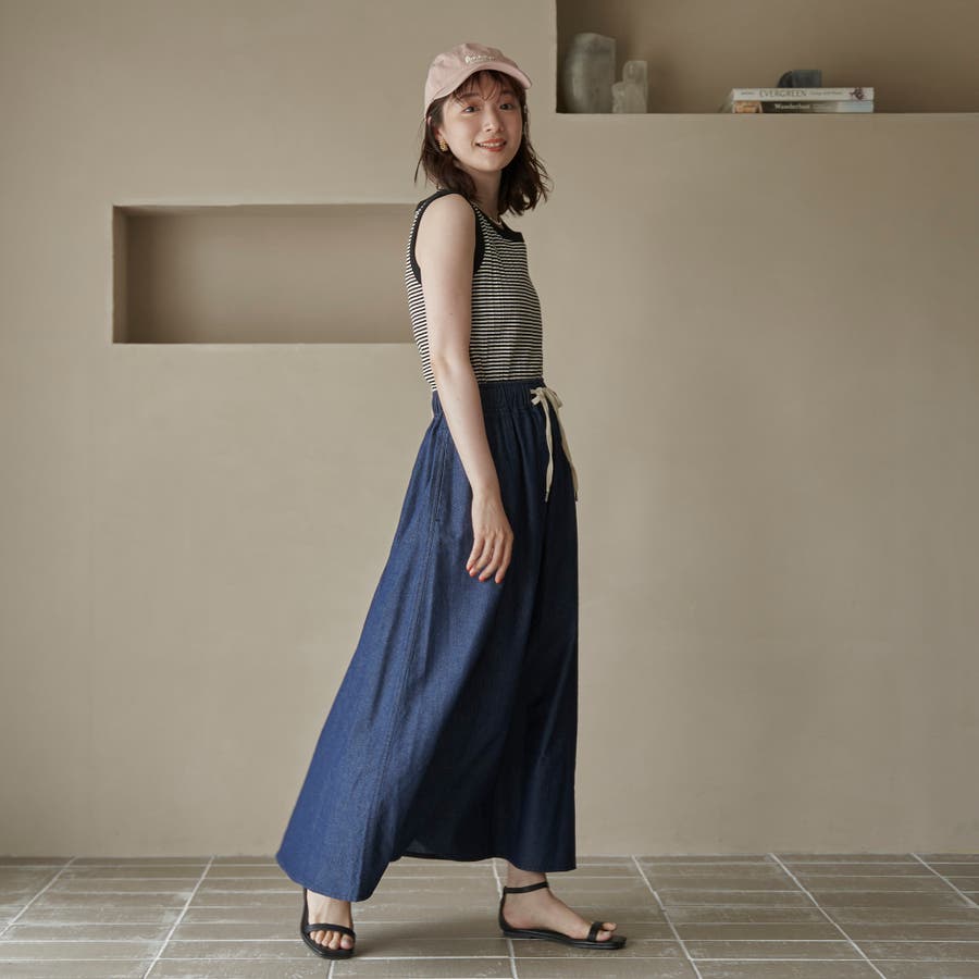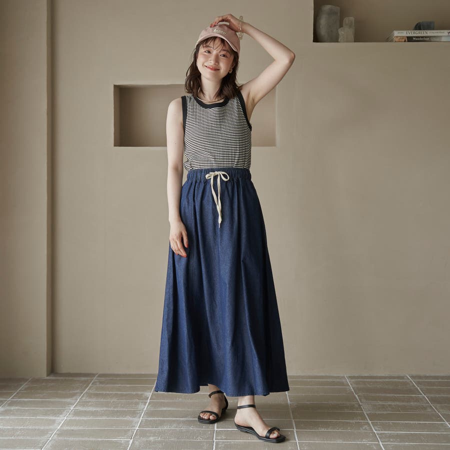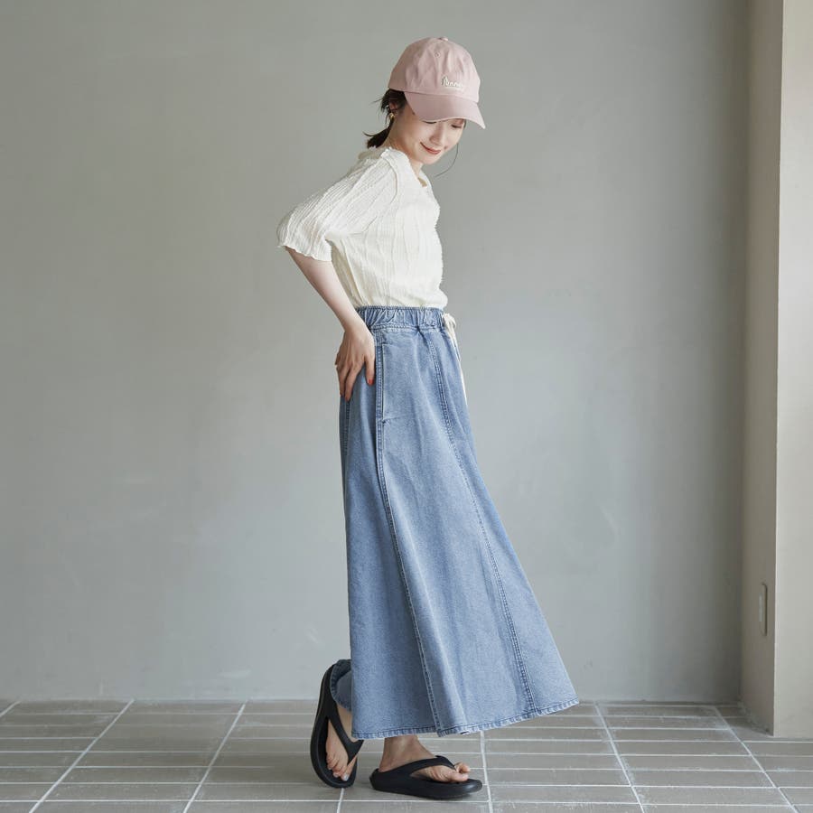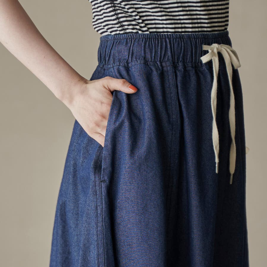 歩くたびに揺れる、涼やかなフレアシルエットが魅力のデニムスカート。