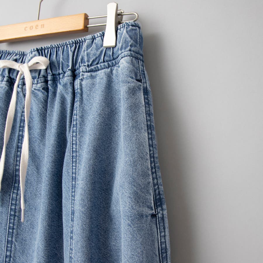 洗濯機洗い可能/ウエストゴム/ポケット付き/ドロストコードあり/ライトデニム/ソフトデニム/新作