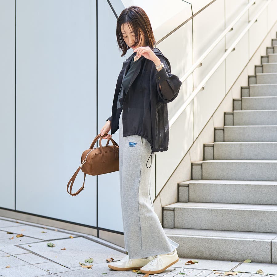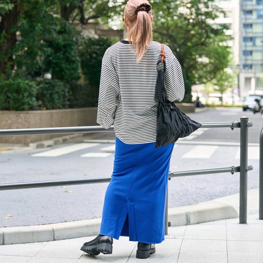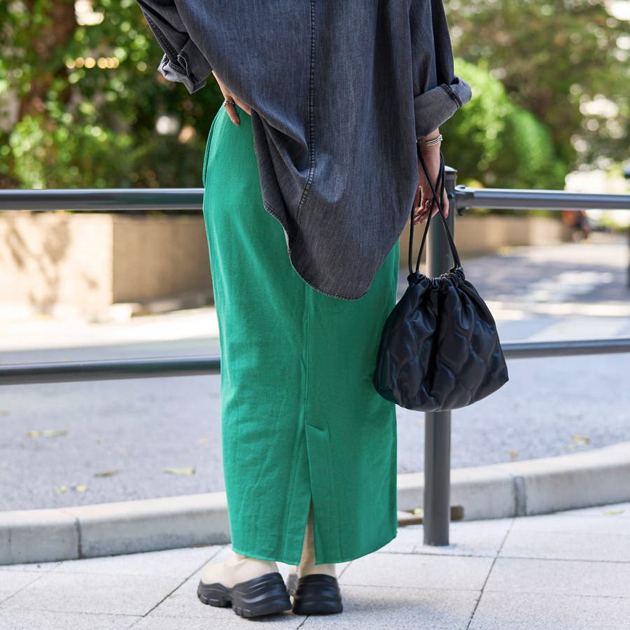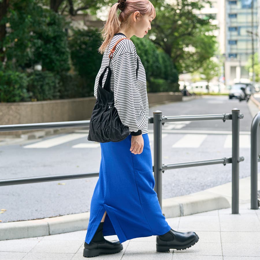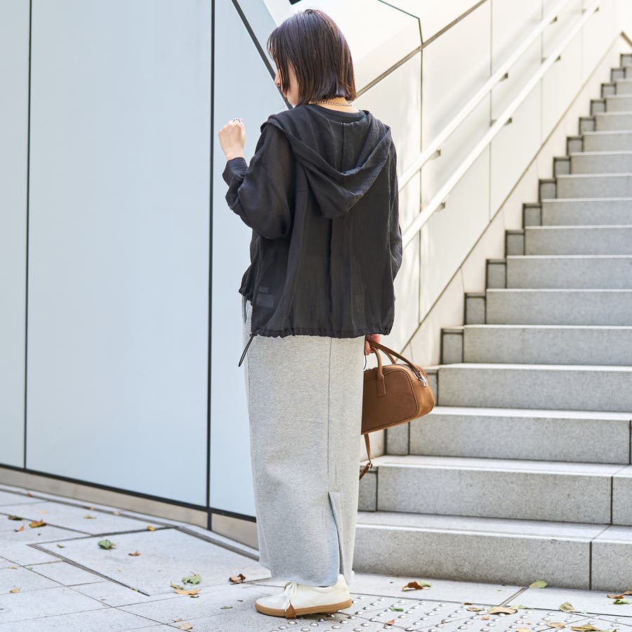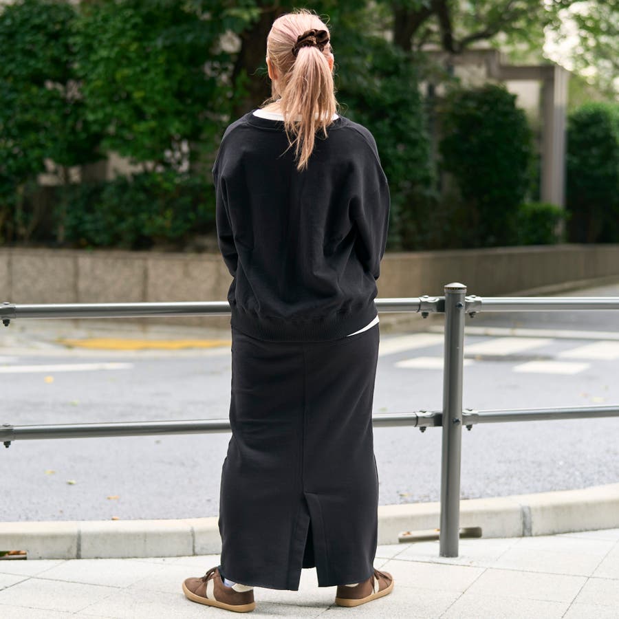 裾に入ったスリットが抜け感をプラスし、カジュアルながらもこなれた印象に仕上げます。