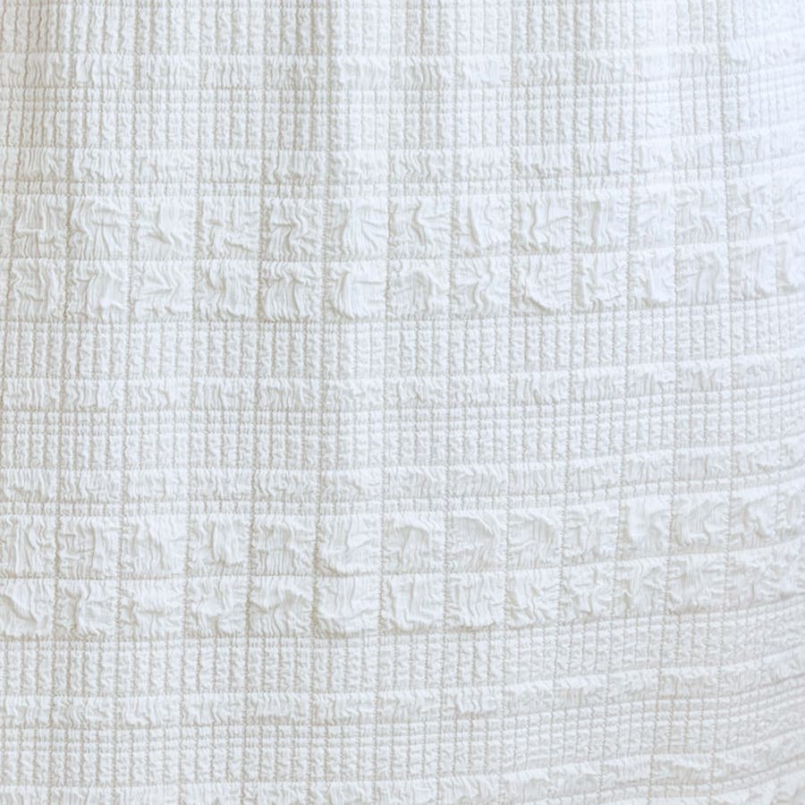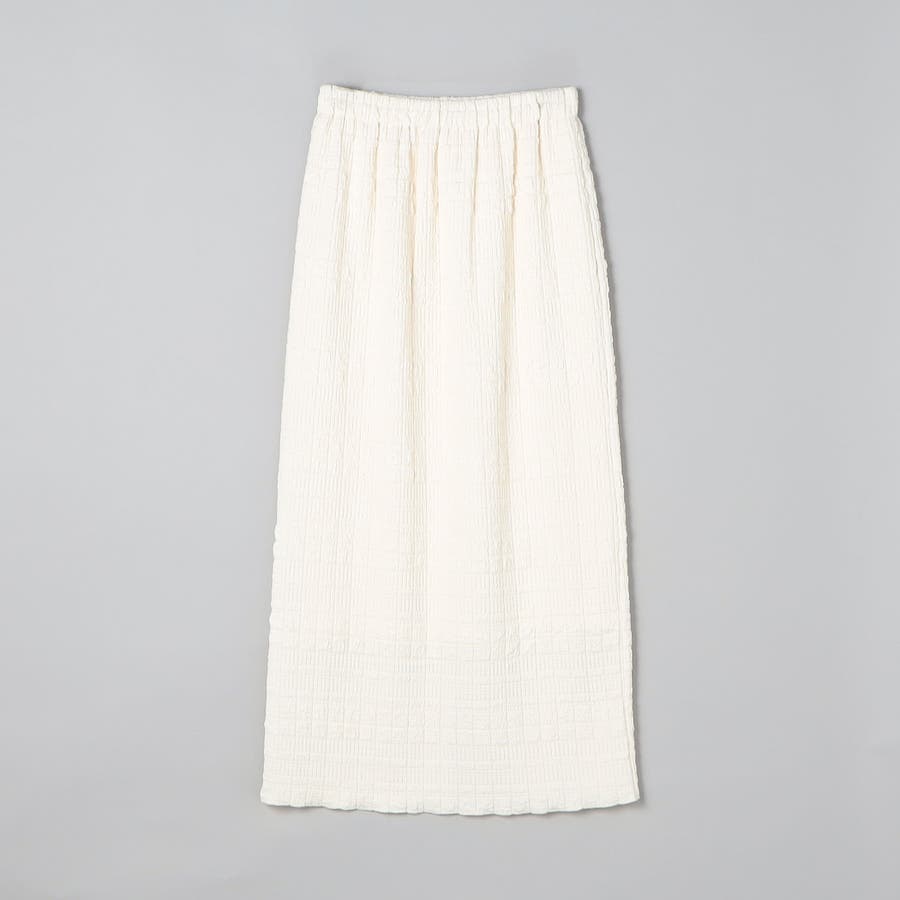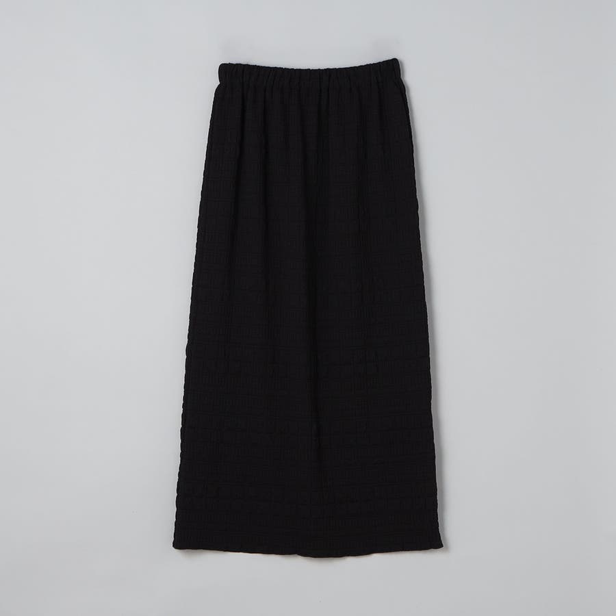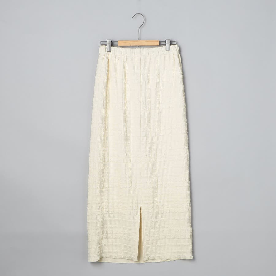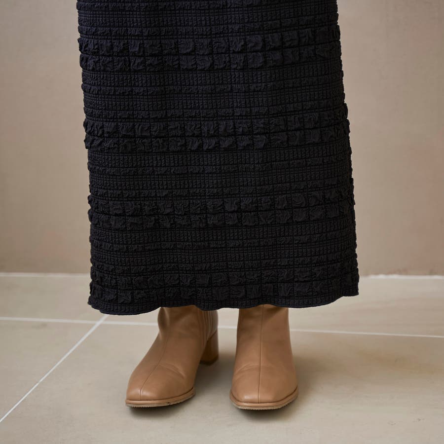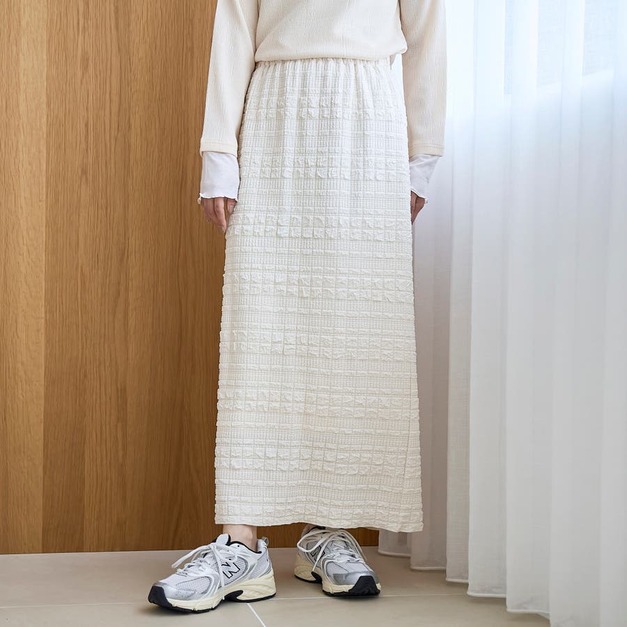 トレンド感のあるポコポコとした肉厚素材で、シンプルながら着映えし、女性らしさを引き立てます。
