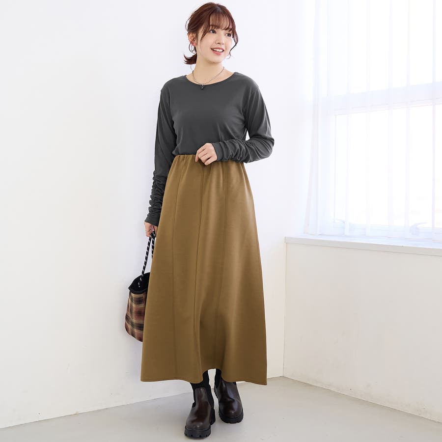 切り替えを入れたフレアラインで、広がりすぎず大人っぽい印象に。