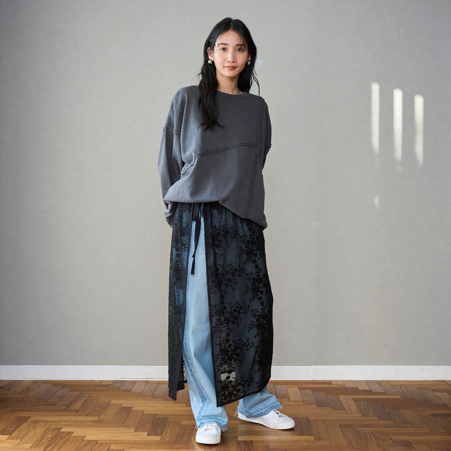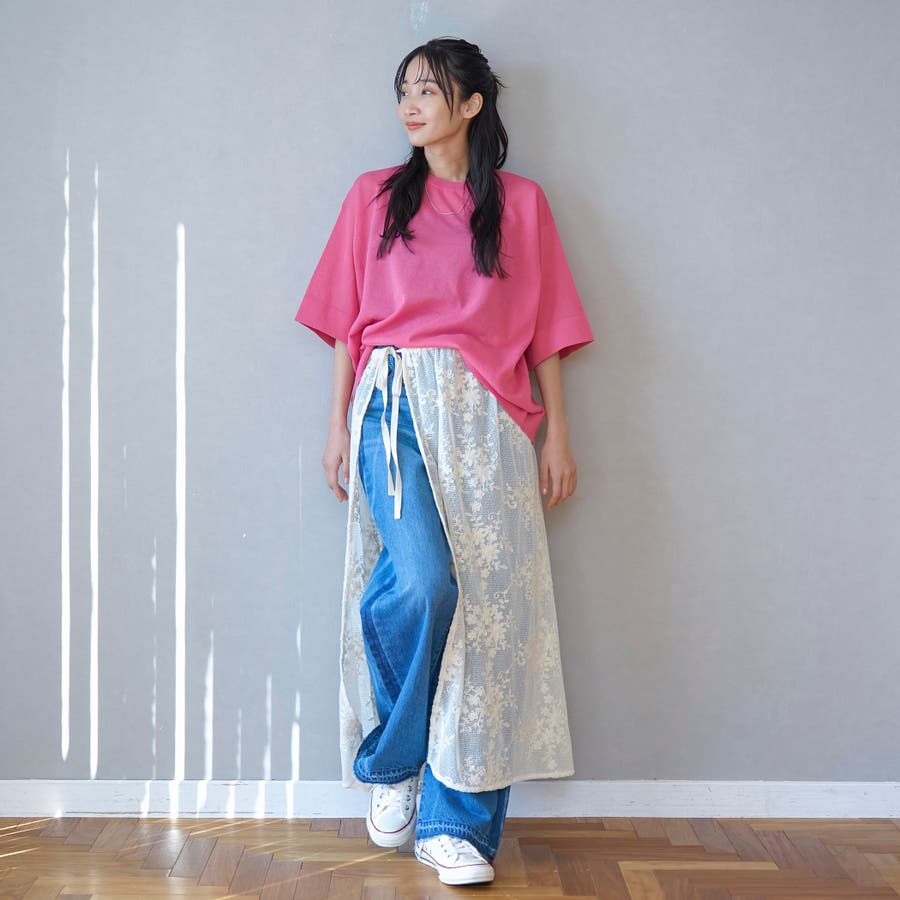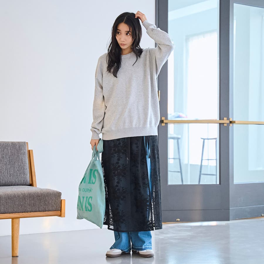 ゆるめのデニムパンツやカーゴなど、カジュアルアイテムとのミックスコーデがおすすめです。