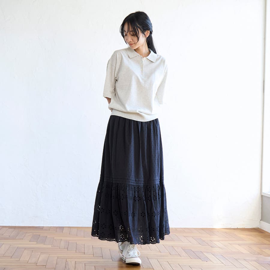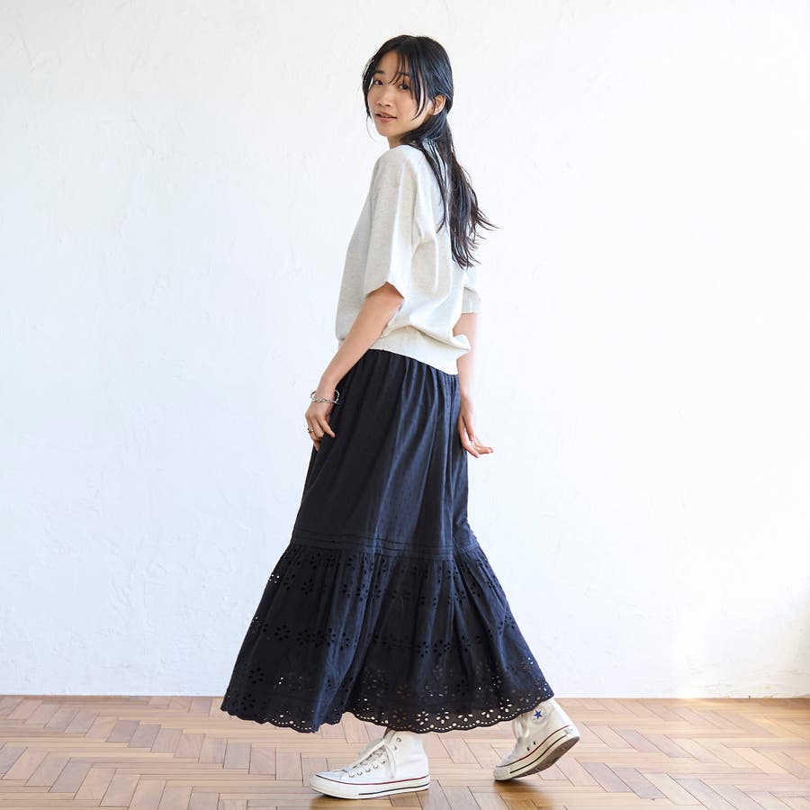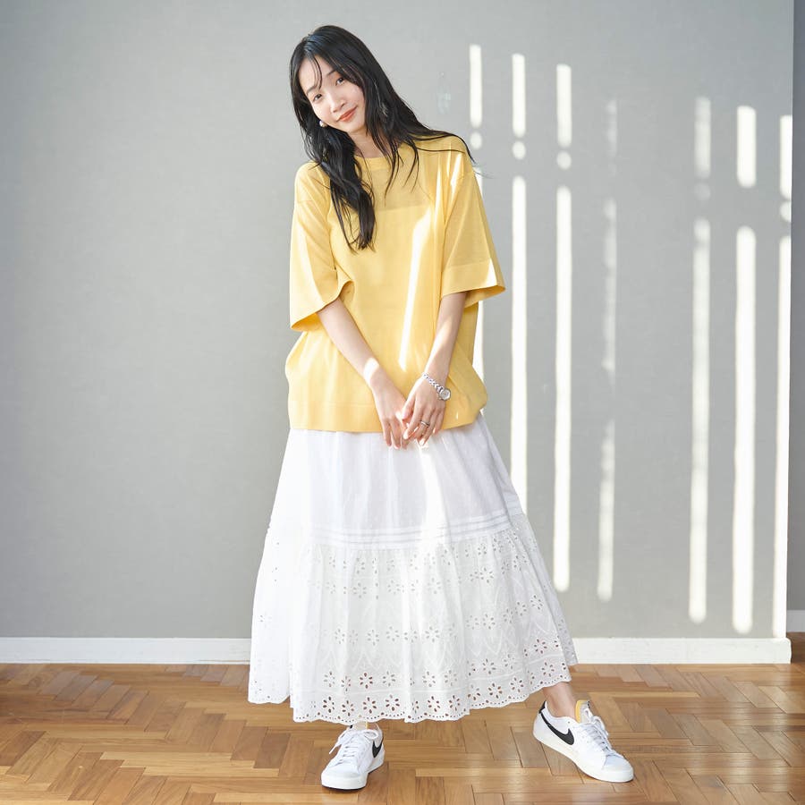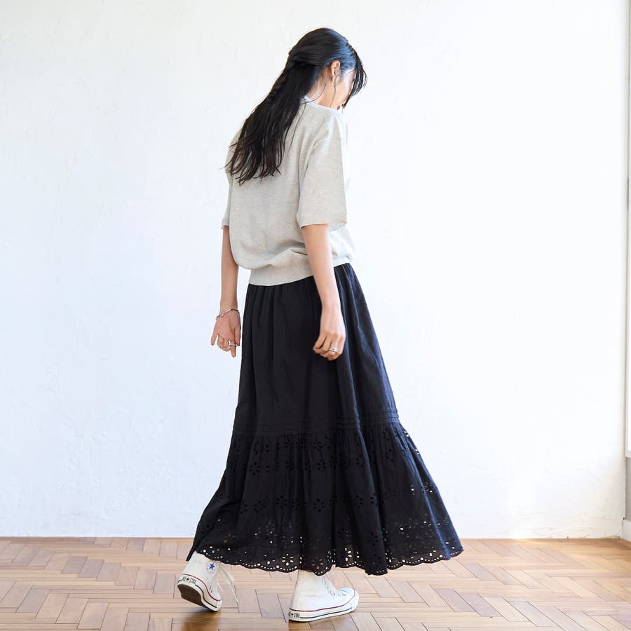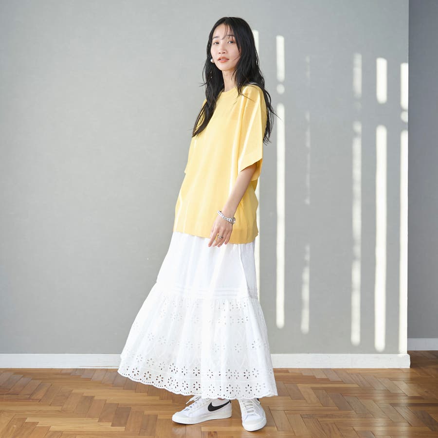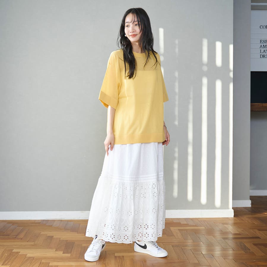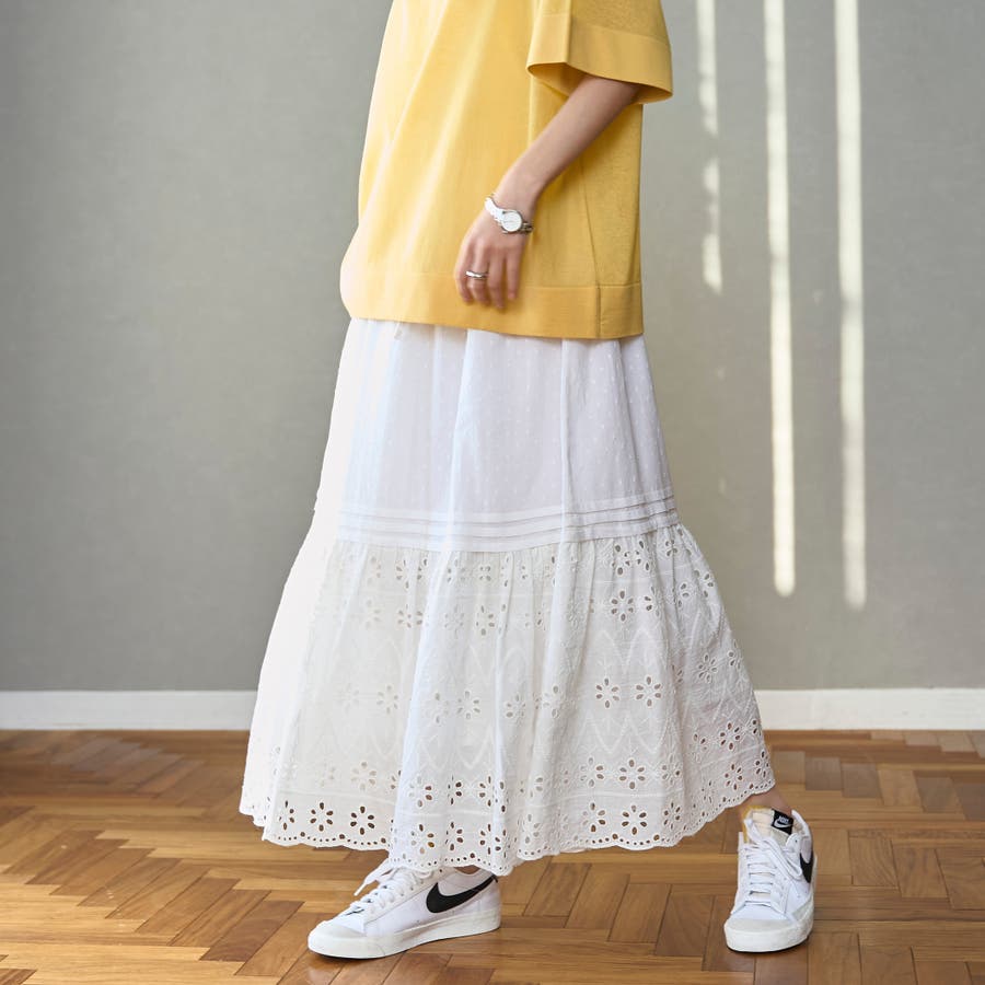 裾のシフリレース切替位置は冬のニットやスウェットとも、夏のTシャツとも素敵にきまるバランスに仕上げました◎