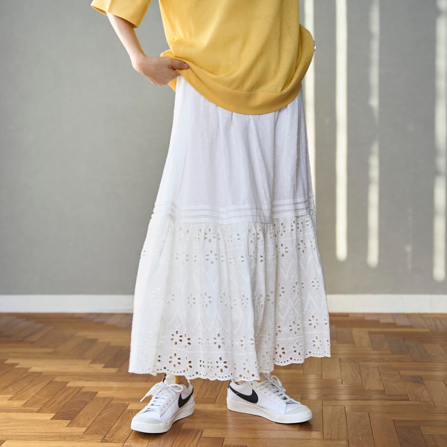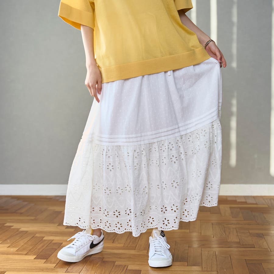 コットンドビー×シフリレースのインド生産ならではの繊細なレース生地を使用したスカート。