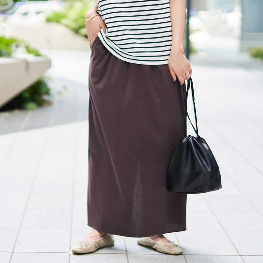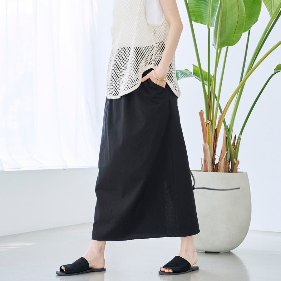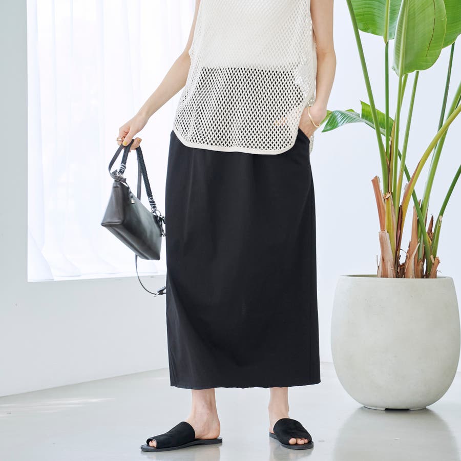 涼しい感じする。シンプルなデザインだから何にでもあう。ポケットついてるし良いです。スリット入ってるけど大股で歩くのはちょっと無理だった