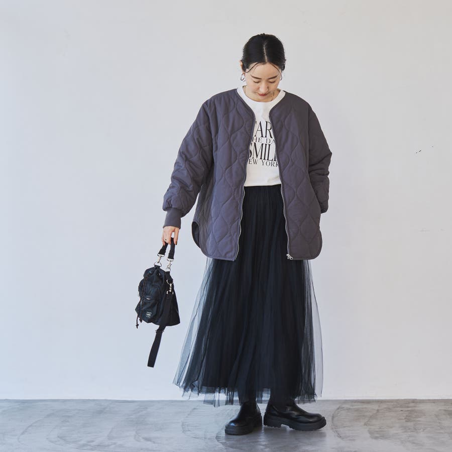 落ち着きのある長めの丈感に、すとんとした落ち感のあるシルエットで様々なスタイリングを盛り上げます。