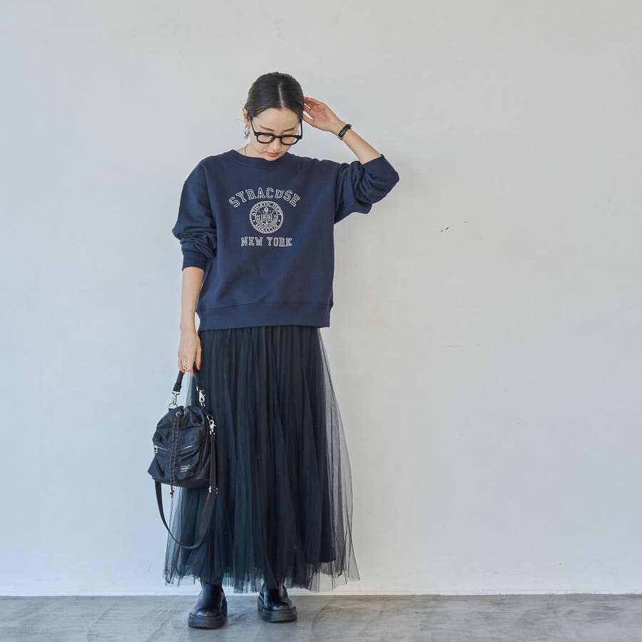 スウェットやパーカー、足元はスニーカーやブーツなど、カジュアルアイテムと合わせるのがおすすめ。その上からダウンベストを重ねるとさらに旬なスタイリングに。