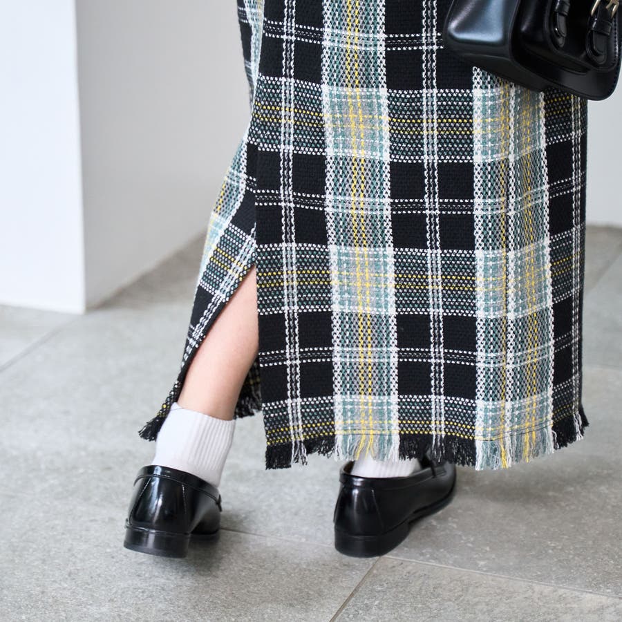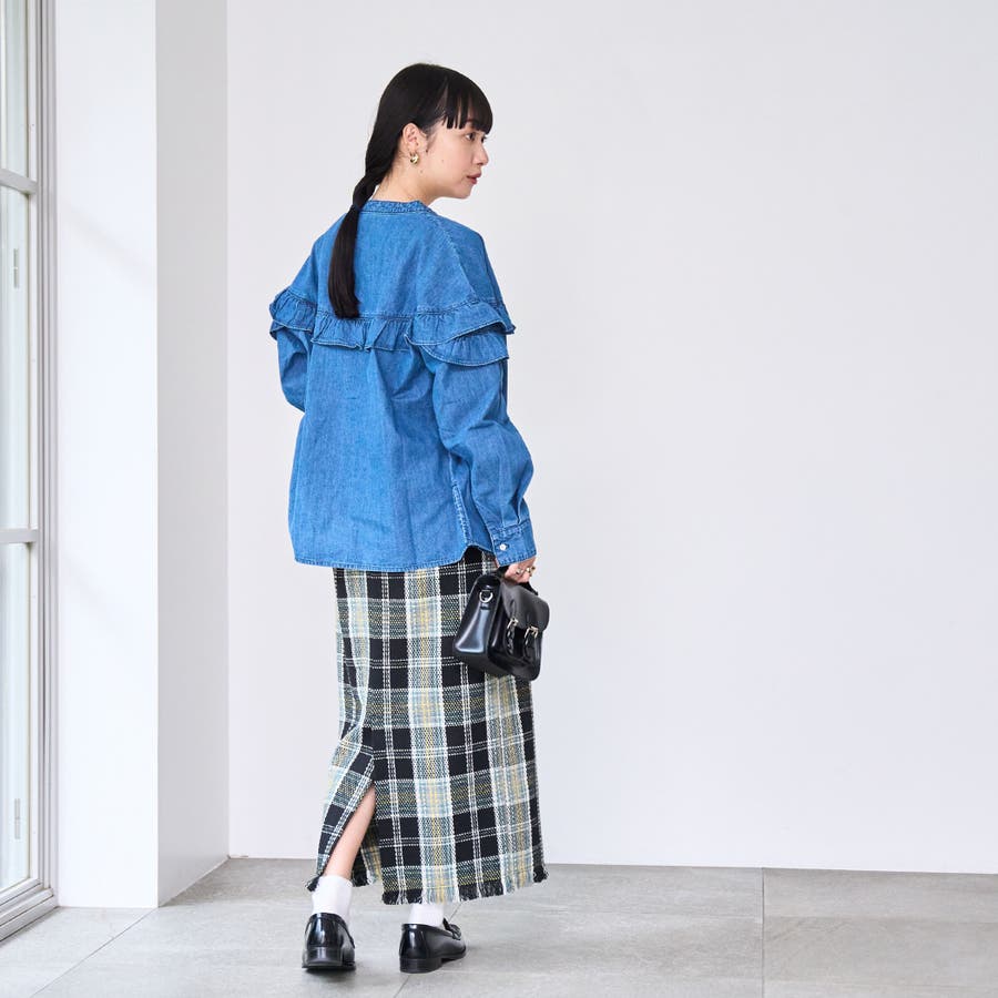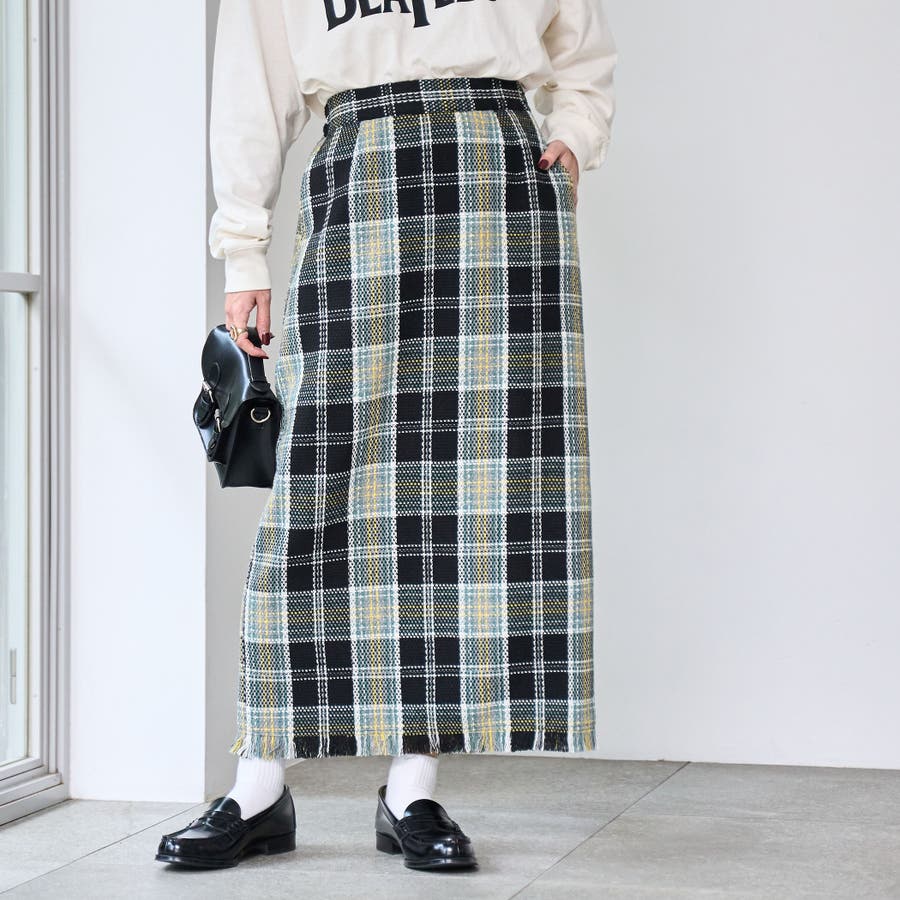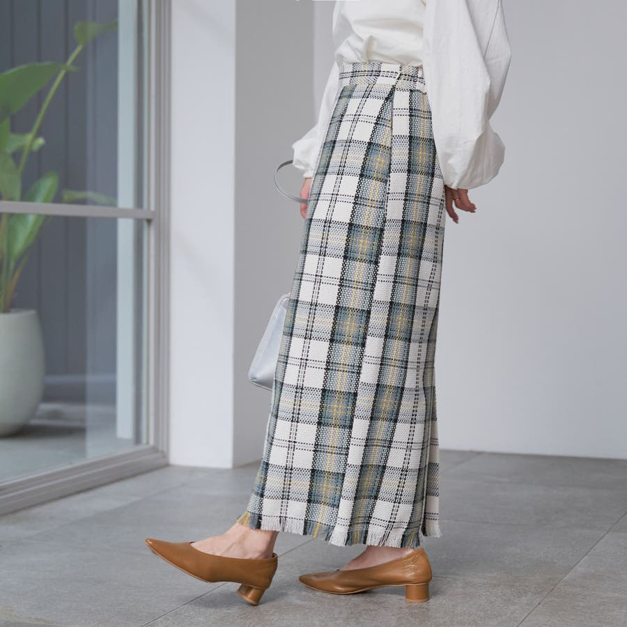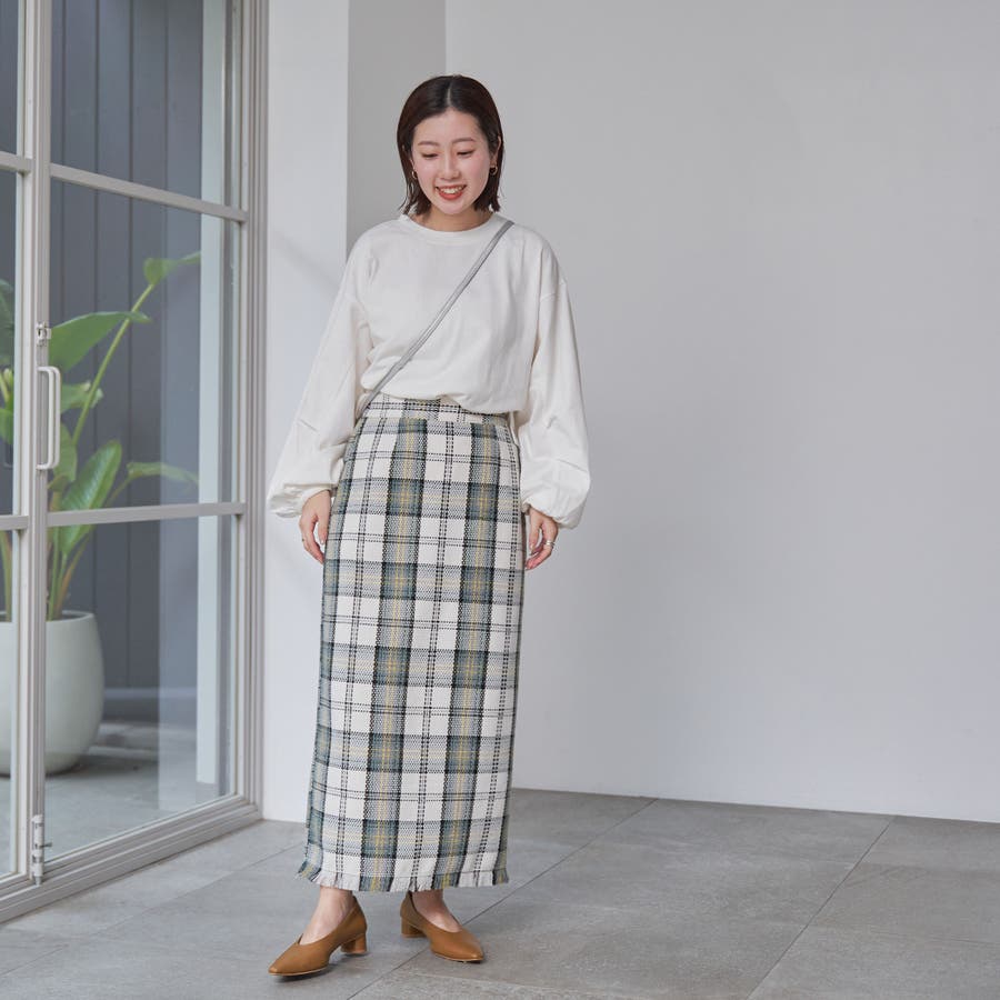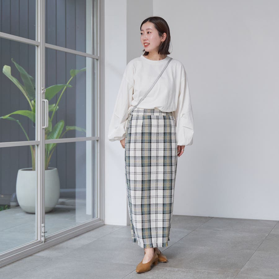 スタイリングに映える春色を意識したチェック柄は、すとんと落ちるシルエットで大人見え。
