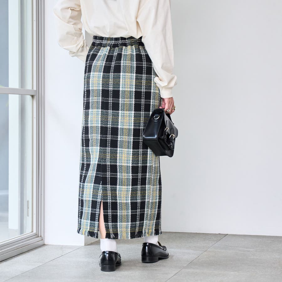 シンプルなトップスと合わせるだけでもサマになるスカートです。
