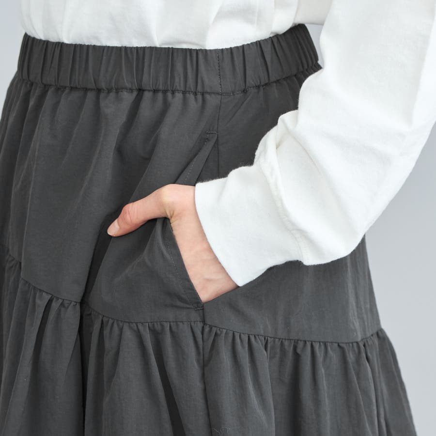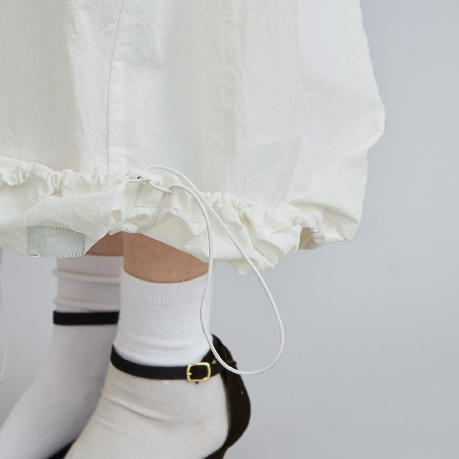 裾にプラスしたドローストリングでシルエットアレンジが楽しめるスカート。