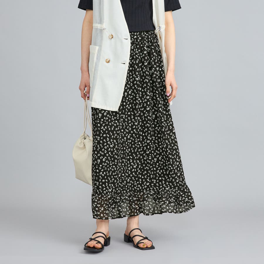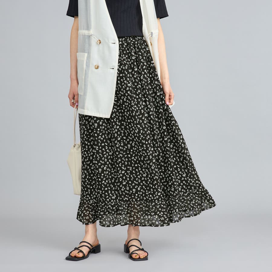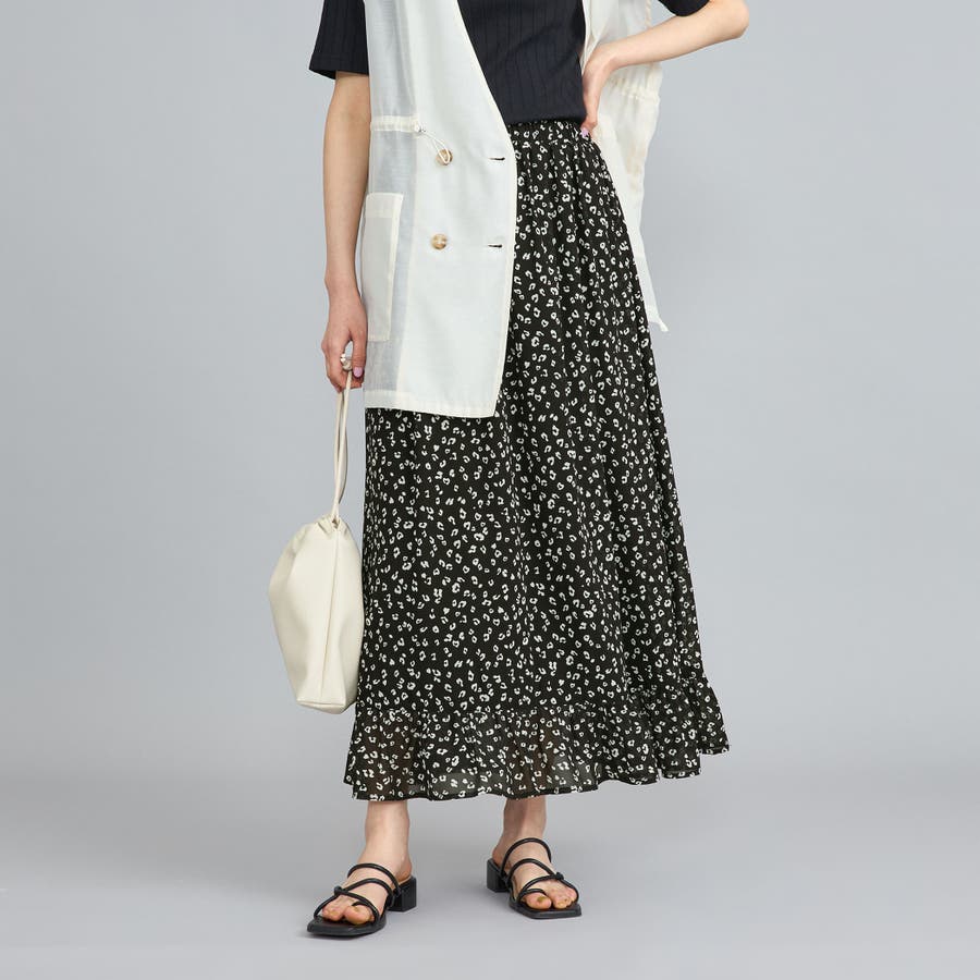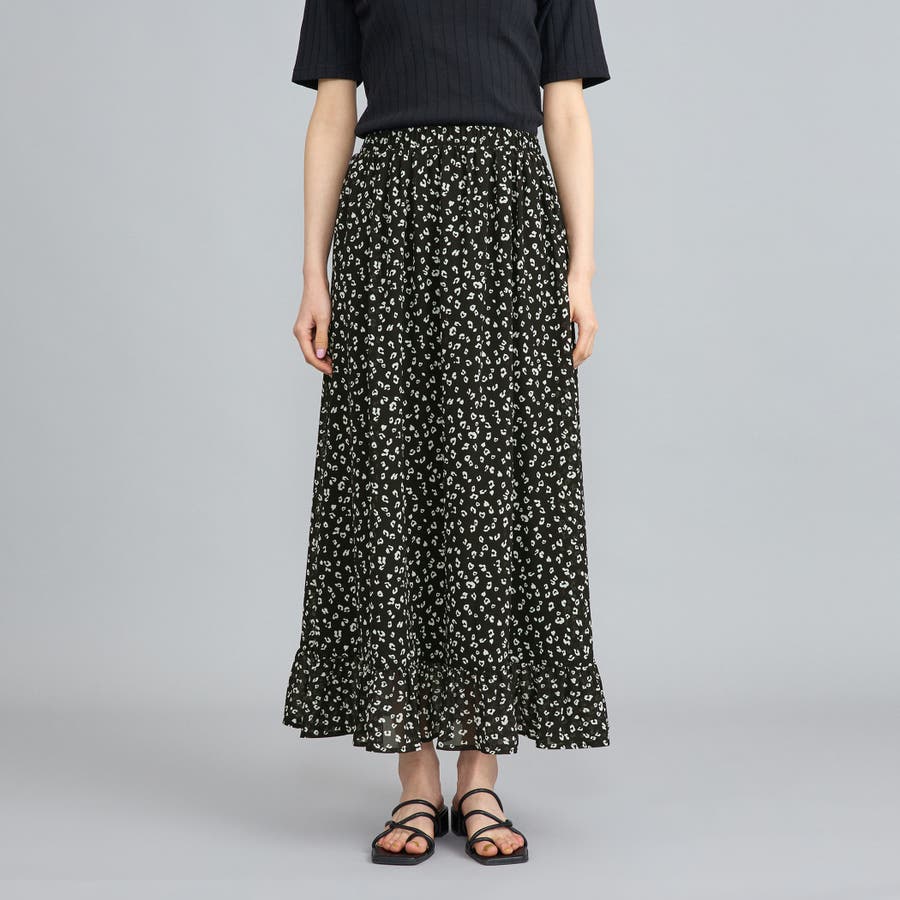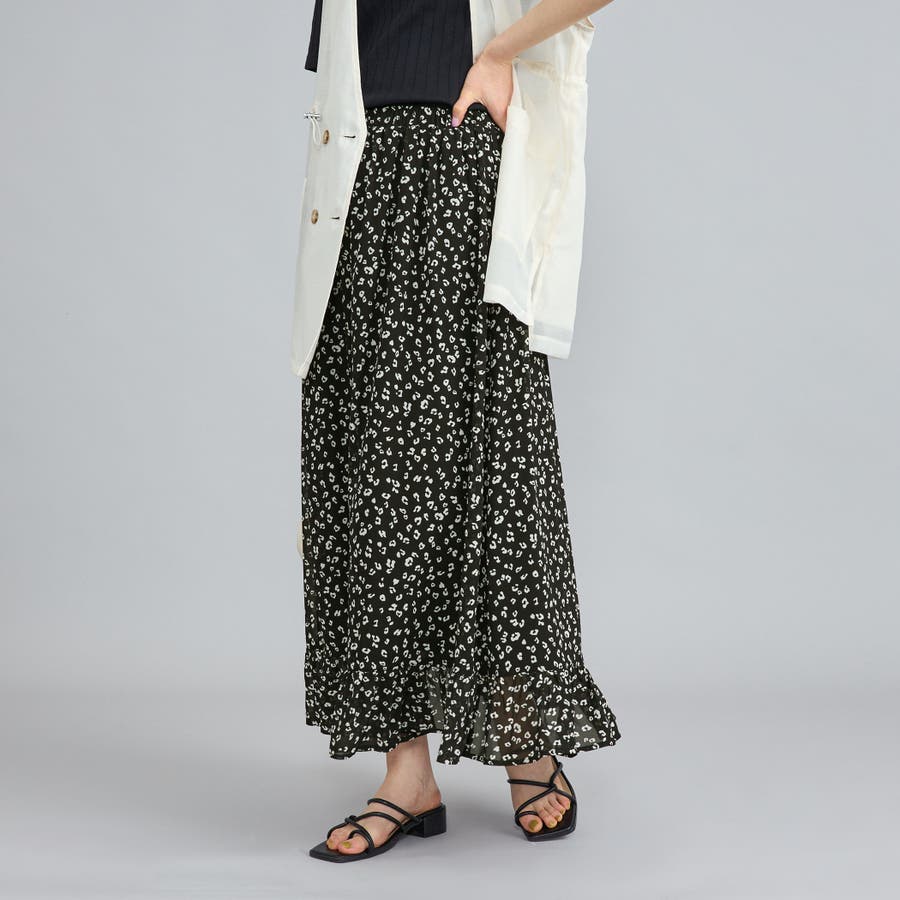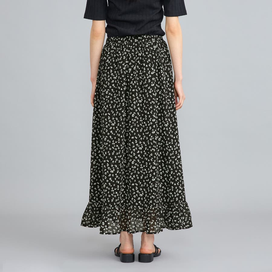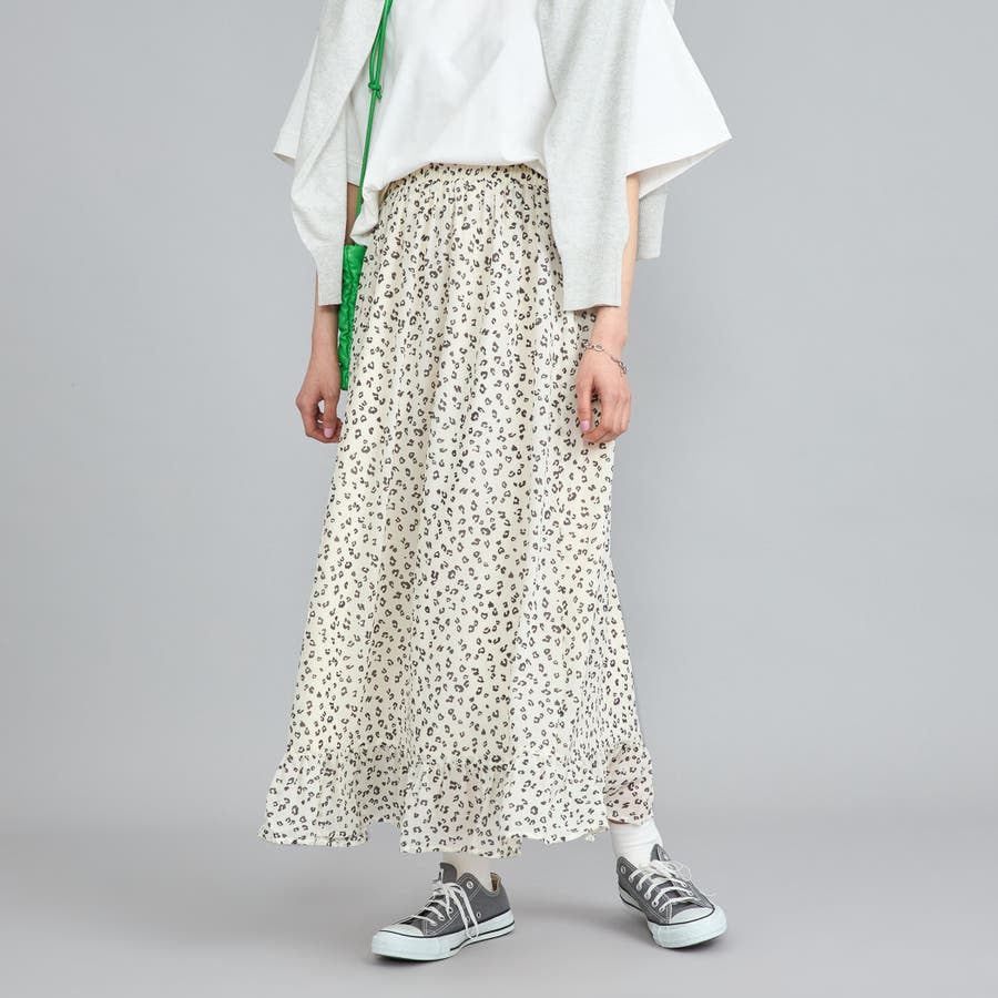 レオパードプリントフリルギャザースカート
