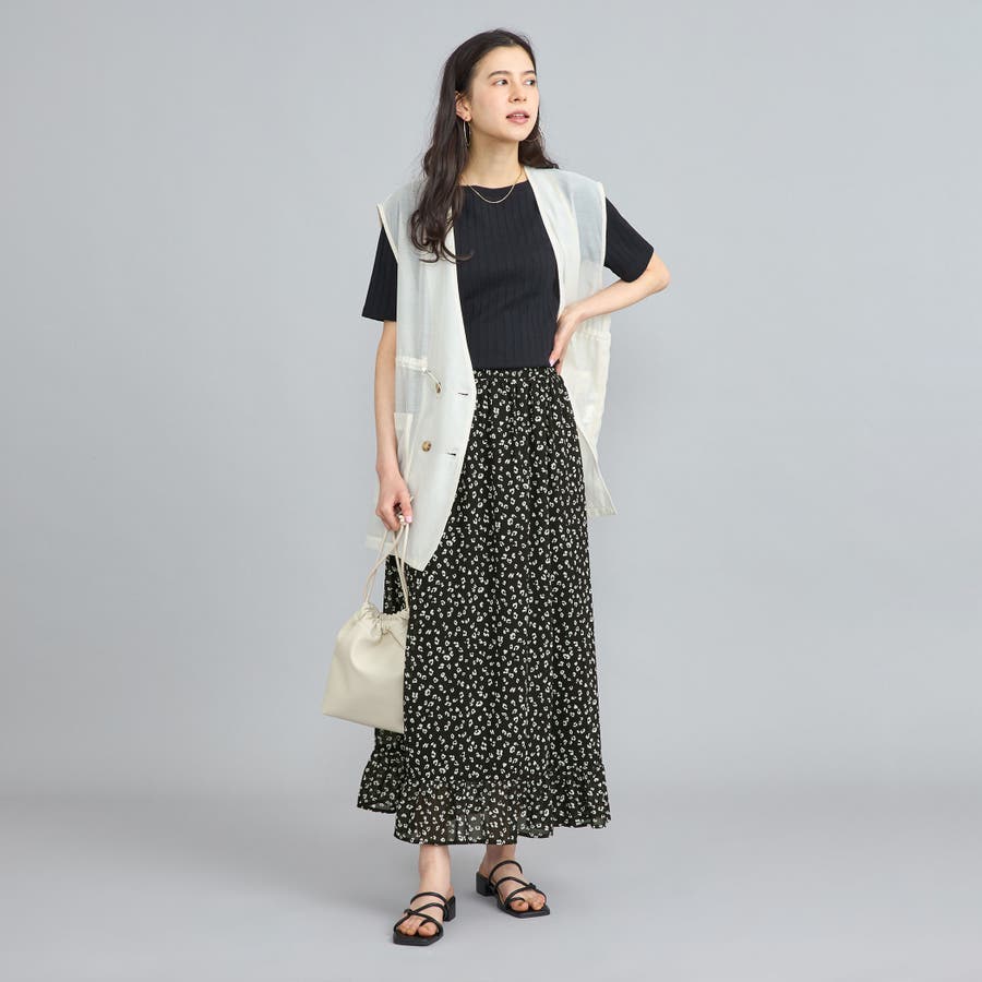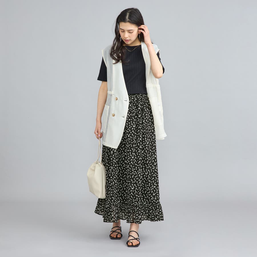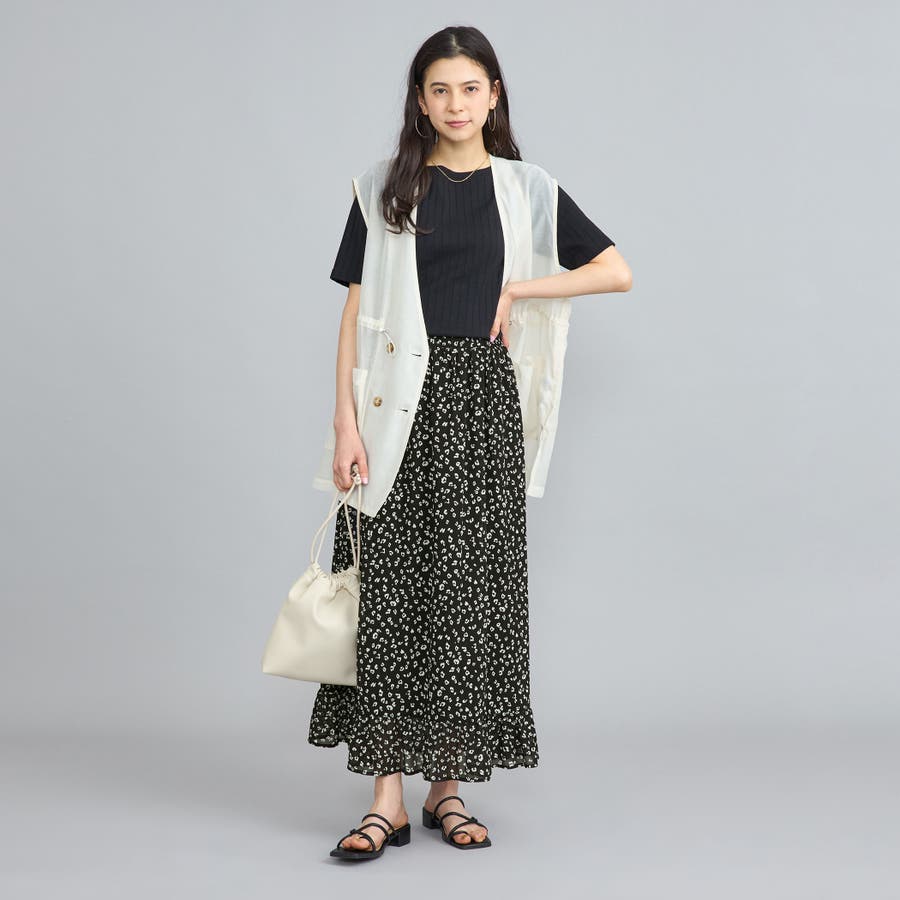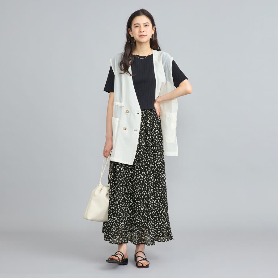 ふわっと揺れ広がるエアリーな素材感やシルエット、裾フリルなどで女性らしい印象に仕上げています。