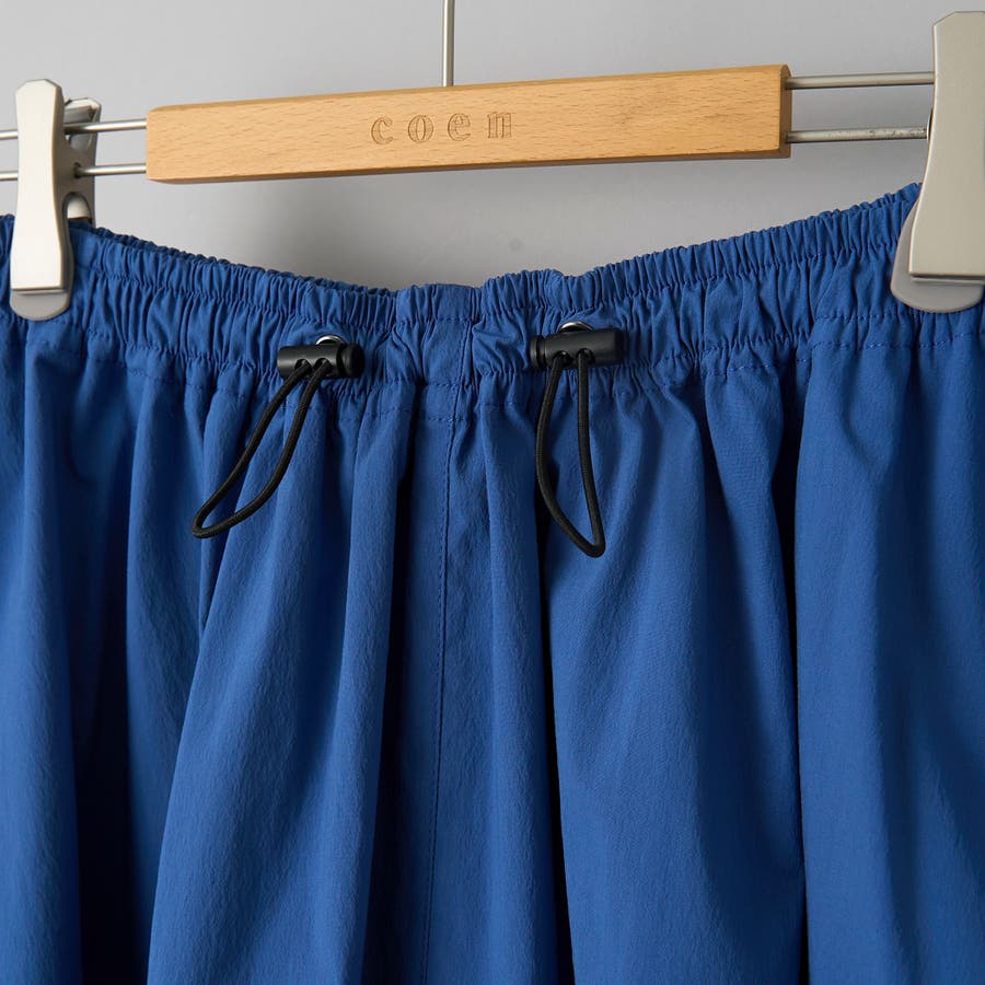 ギャザー仕様のウエストにはドローコードを入れることでフィット感の調節も自在。
