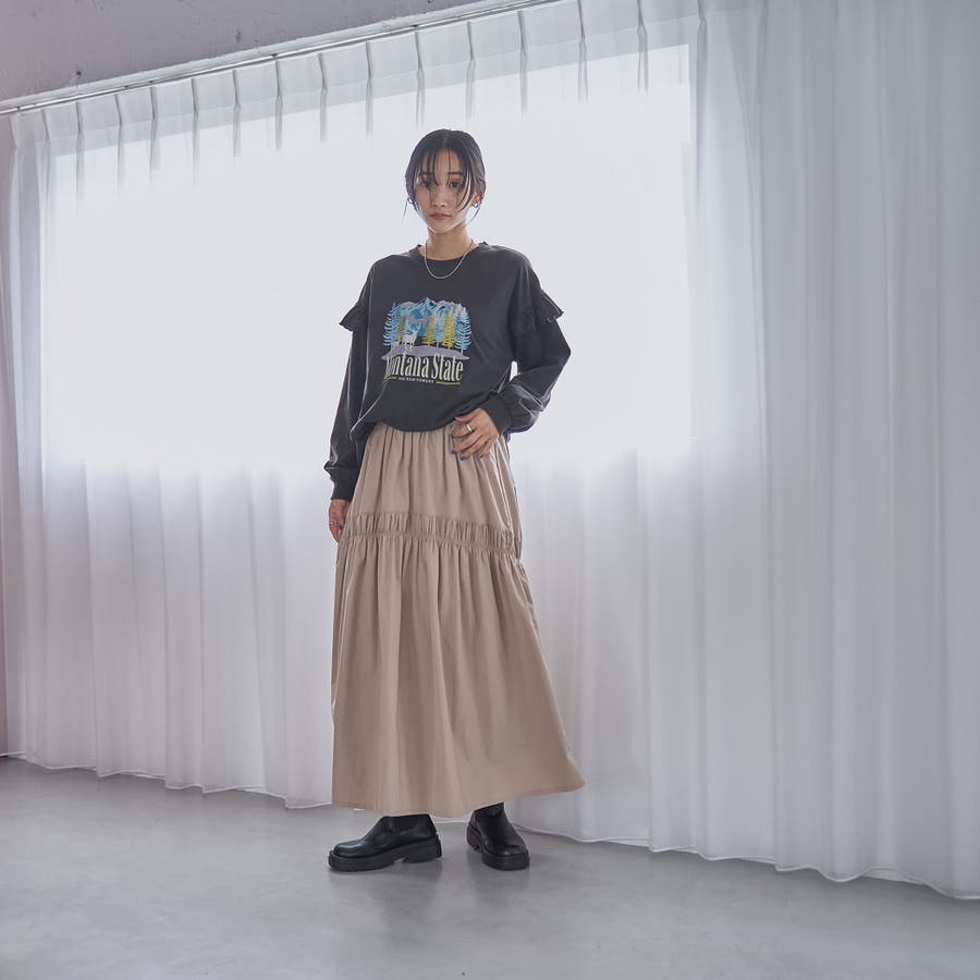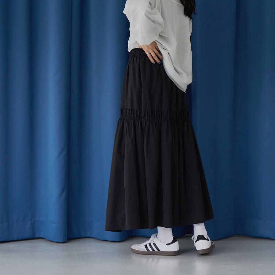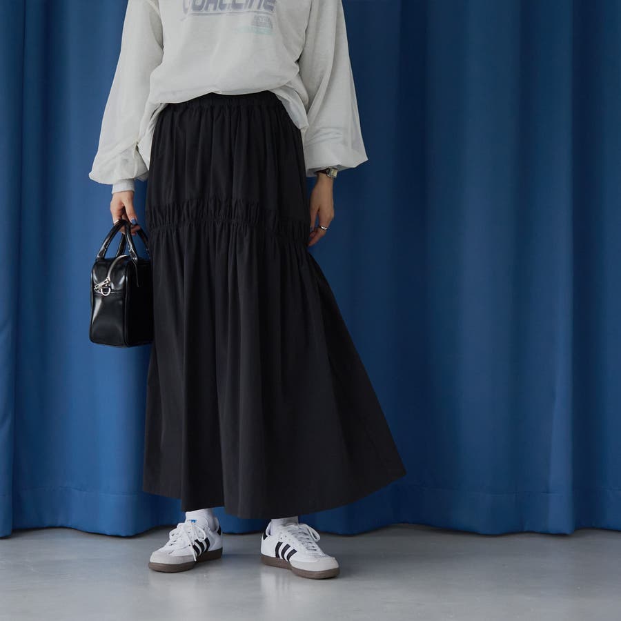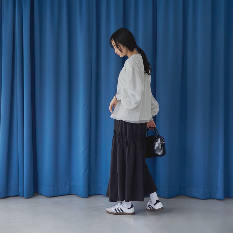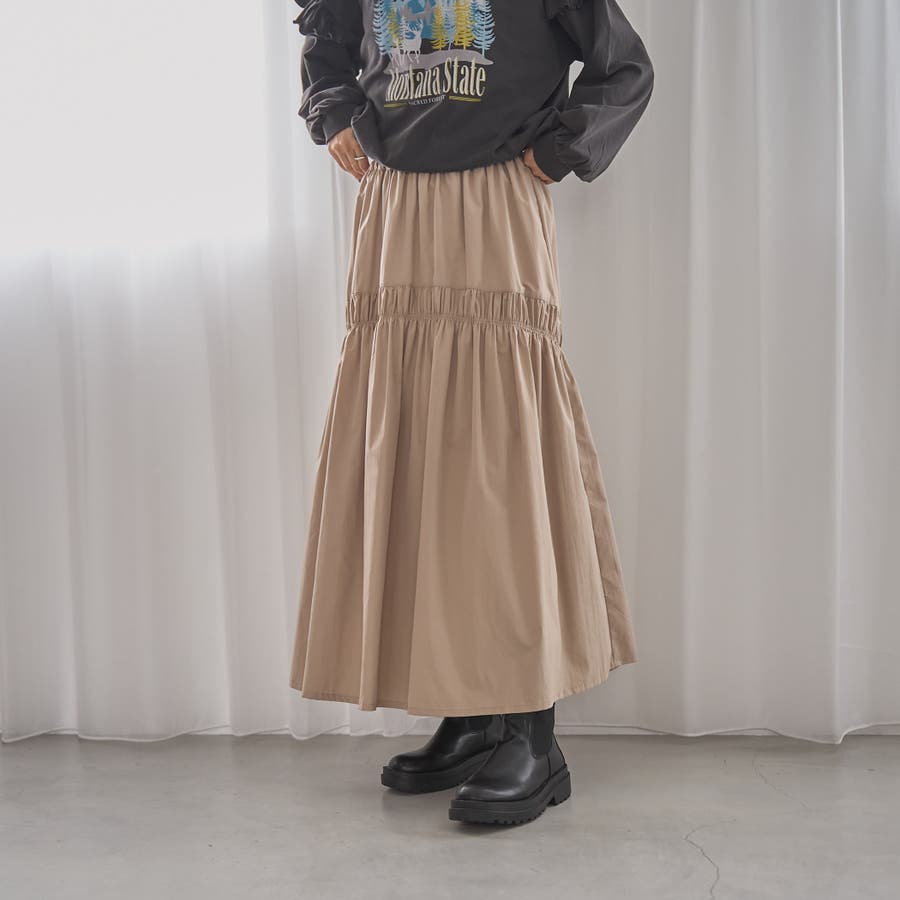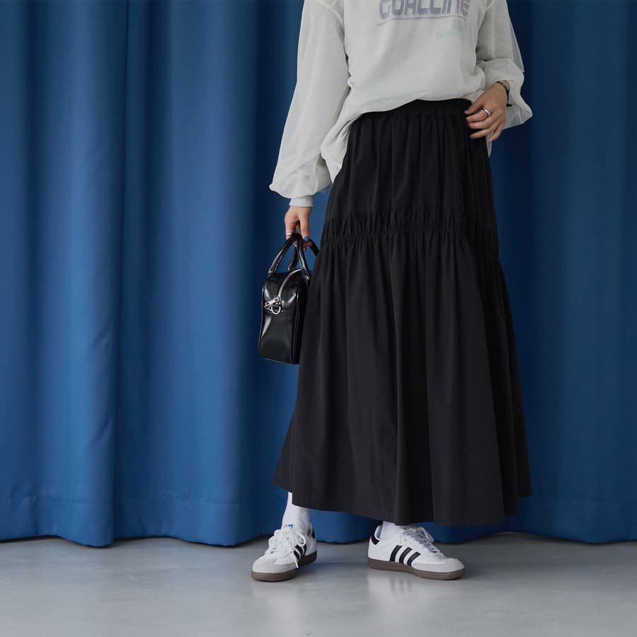 ティアード切り替え×シャーリングのボリュームが印象的なスカート。