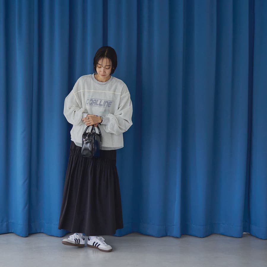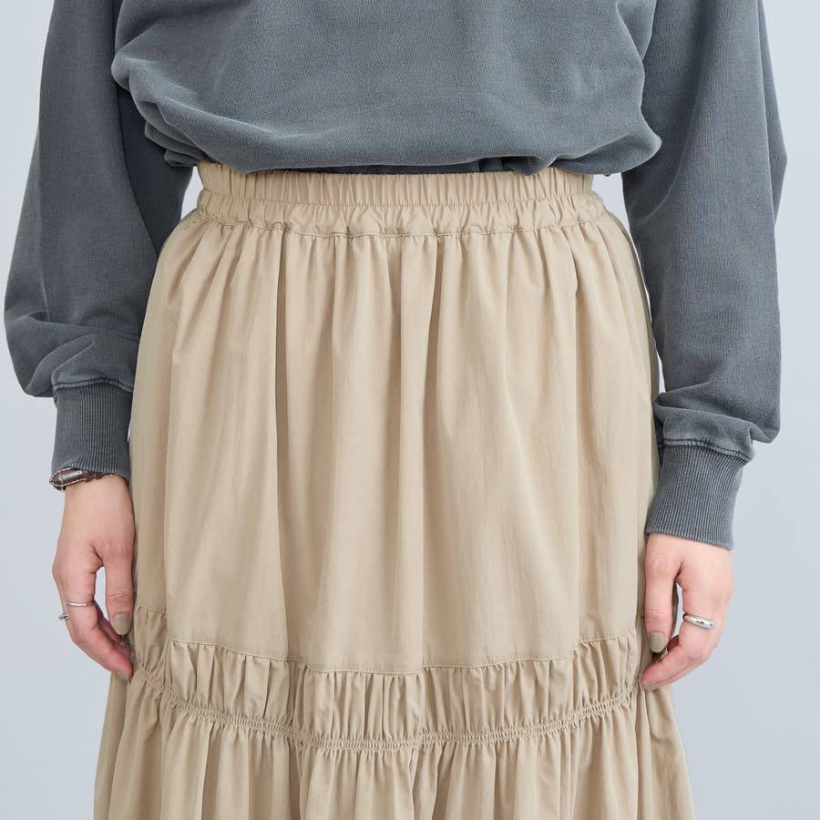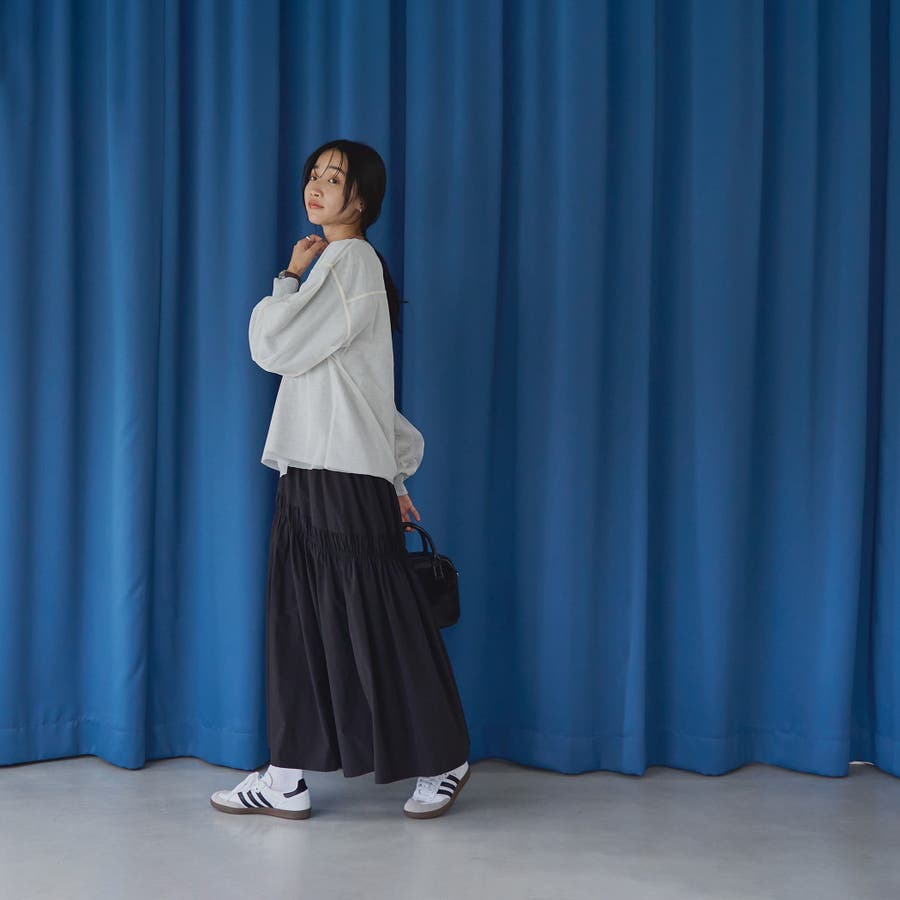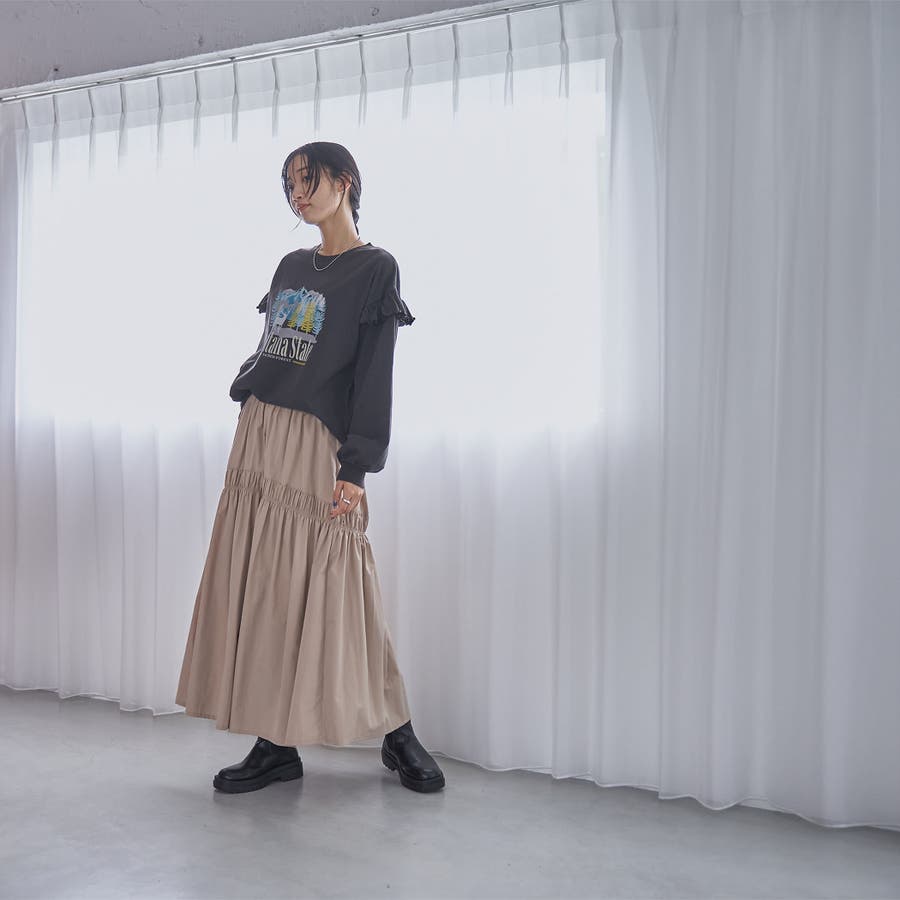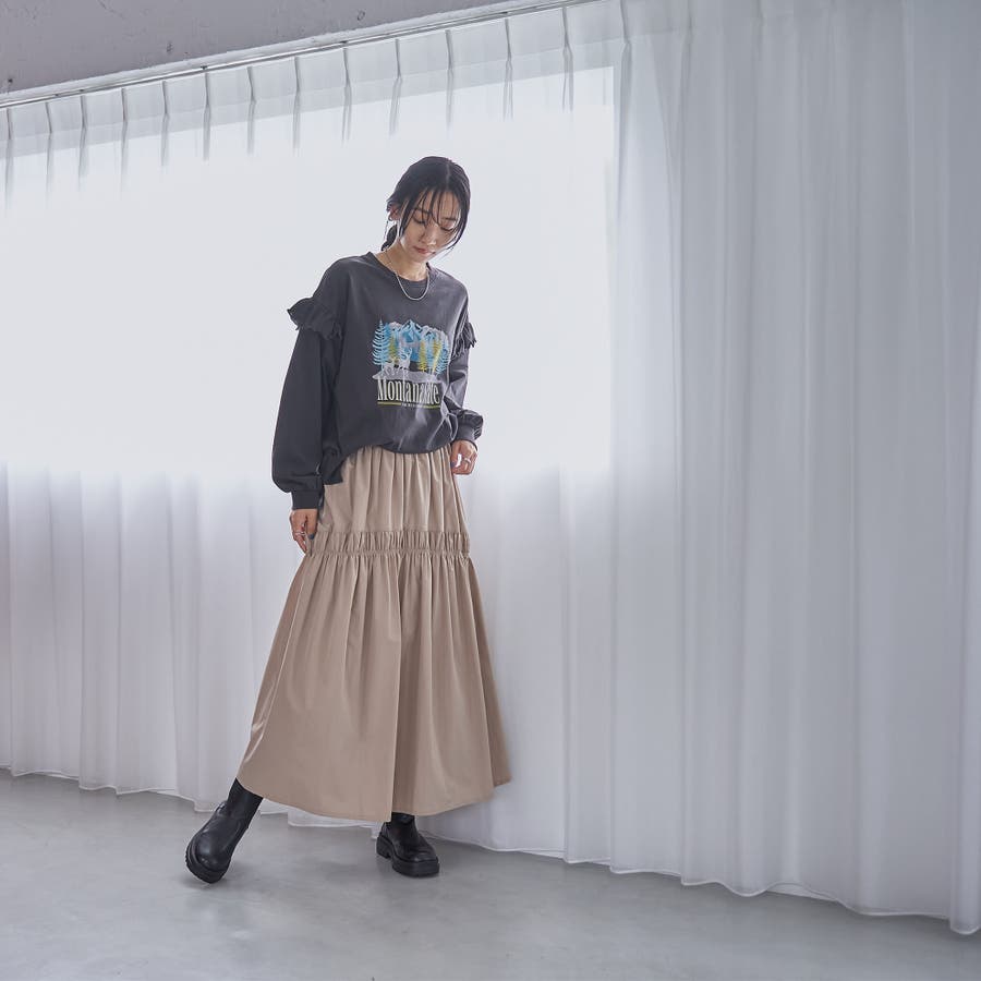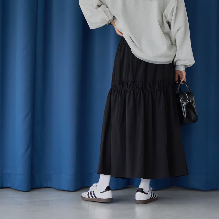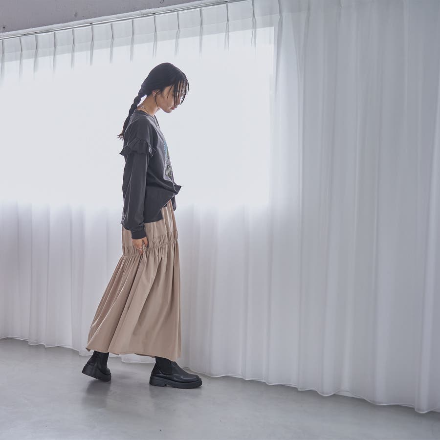 ティアード切り替え×シャーリングのボリュームが印象的なスカート。