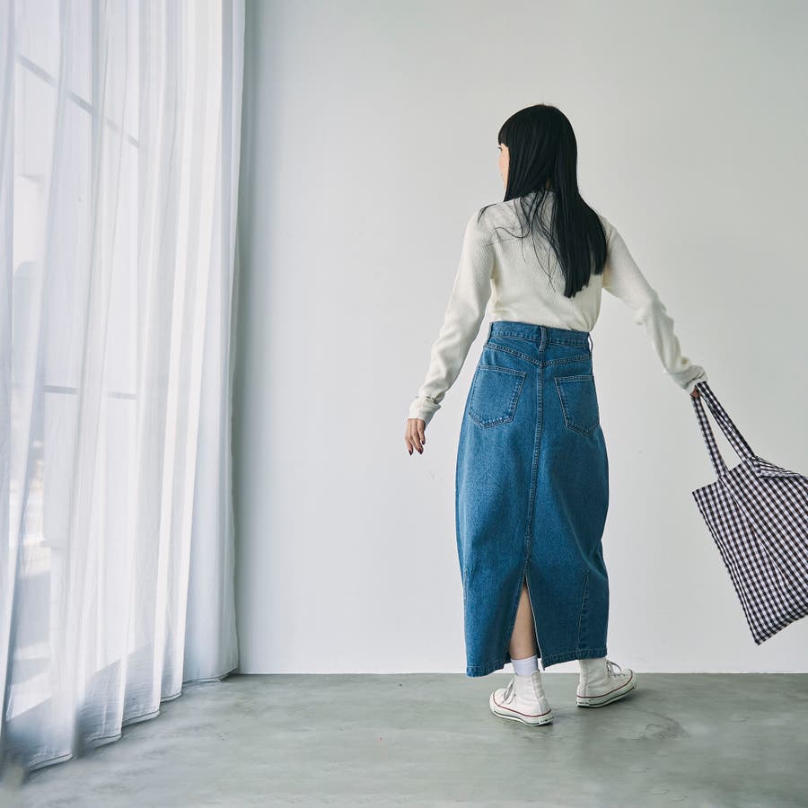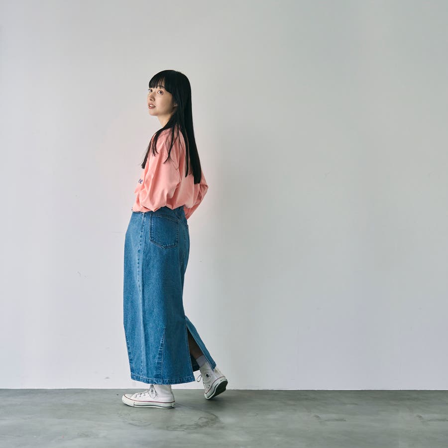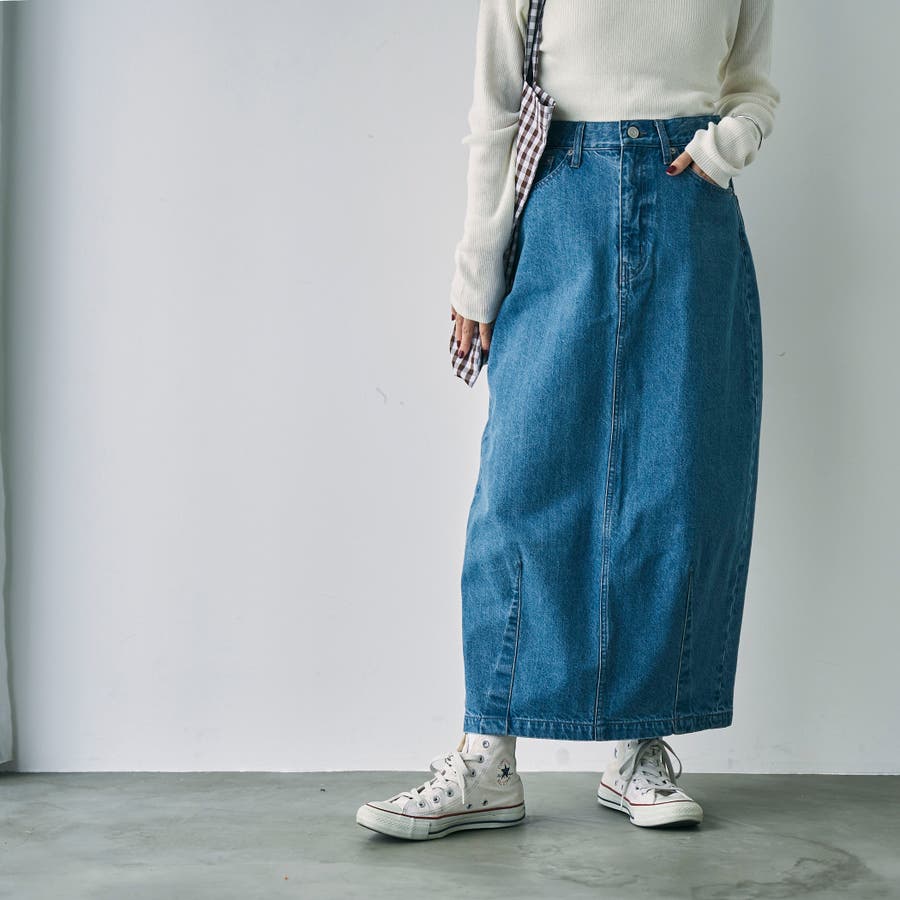 人気のカーブシルエットを定番デニムスカートへ落とし込んだ1枚