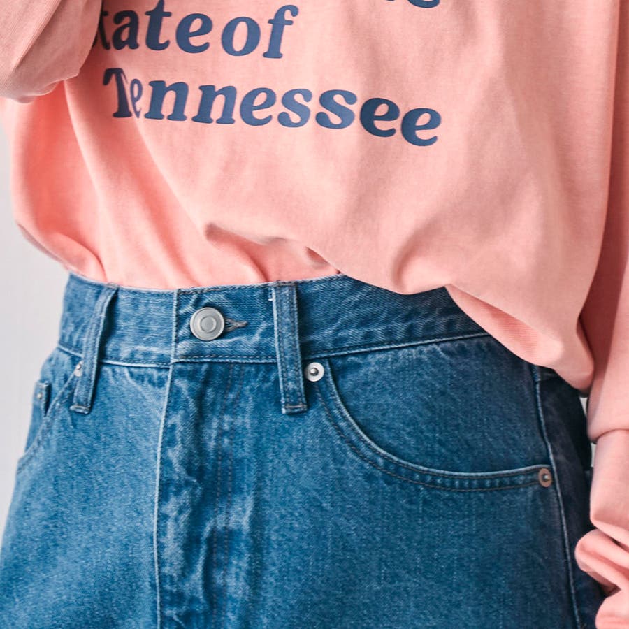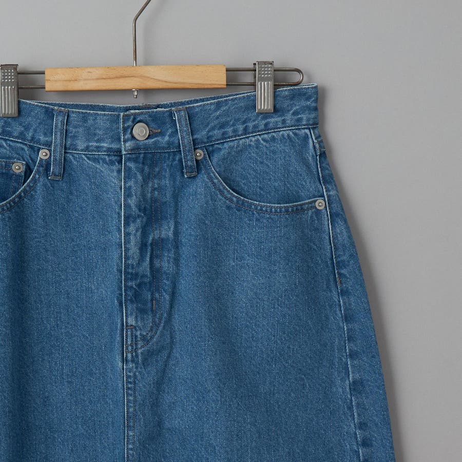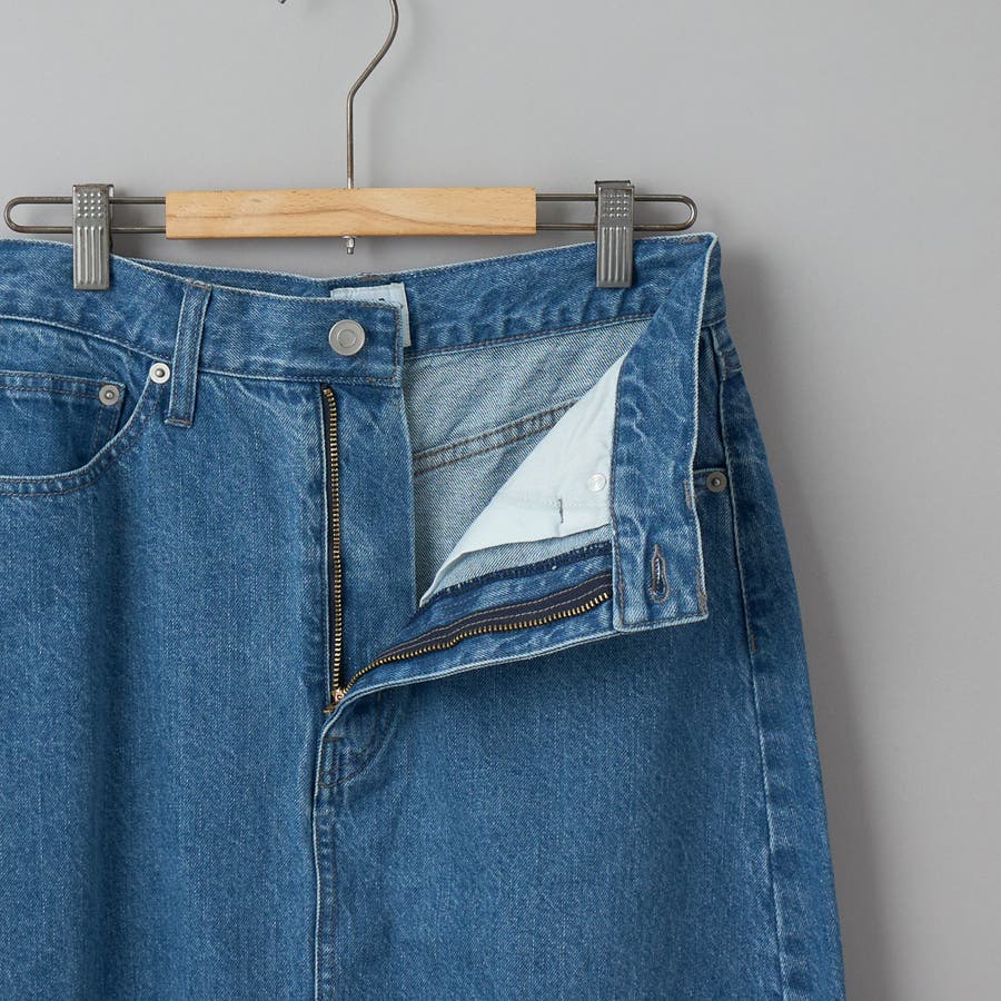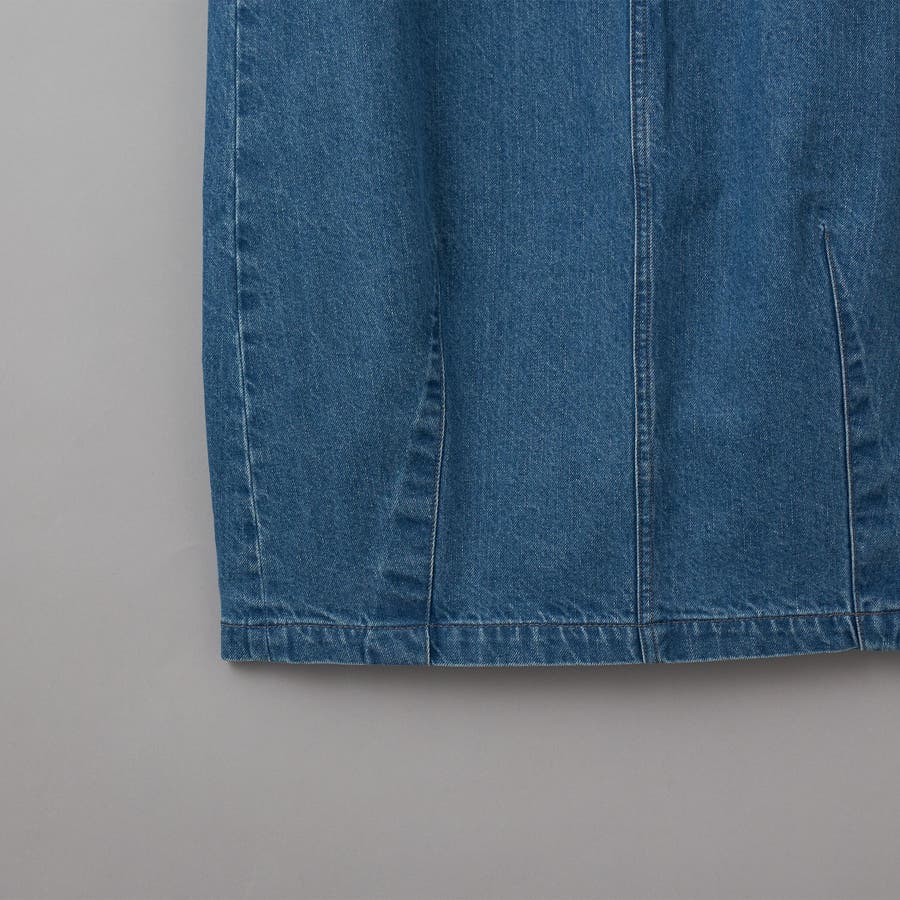 ユーズド感のある色合いのデニム素材を使用し、腰下からふんわりと丸みをつけたデニムスカート。