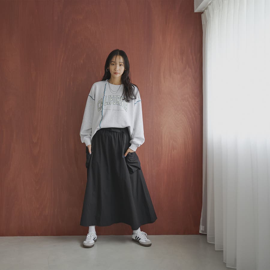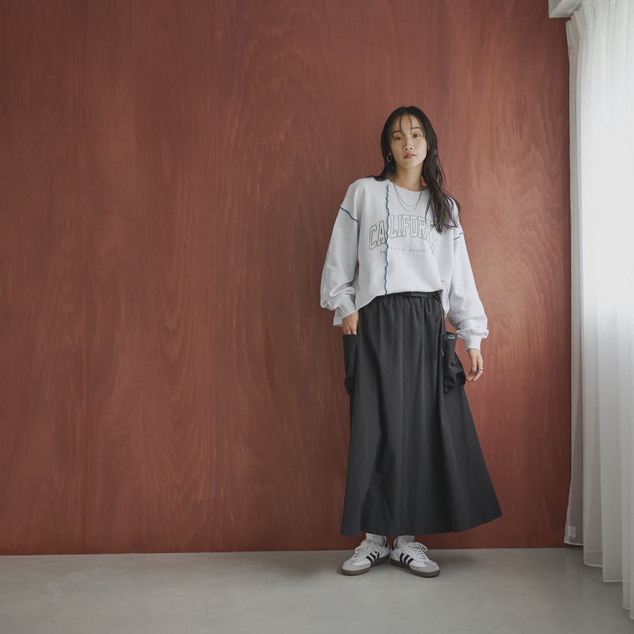 晩夏はロンTと、これからの季節はスウェットやニットとのコーディネートがおすすめです。