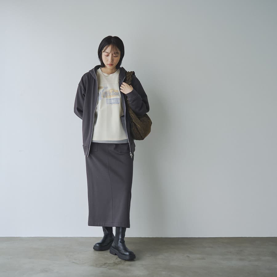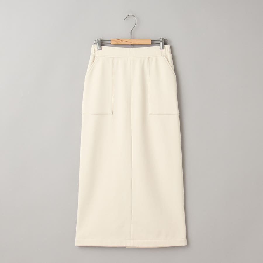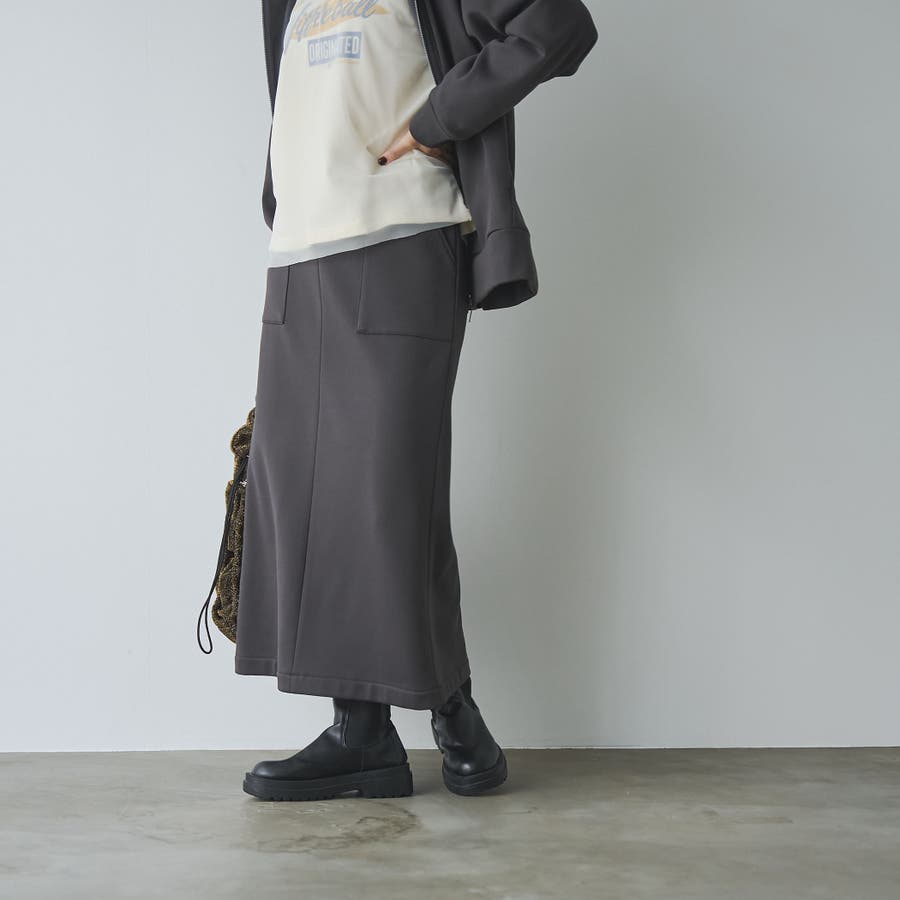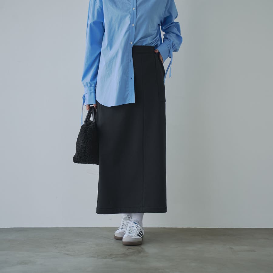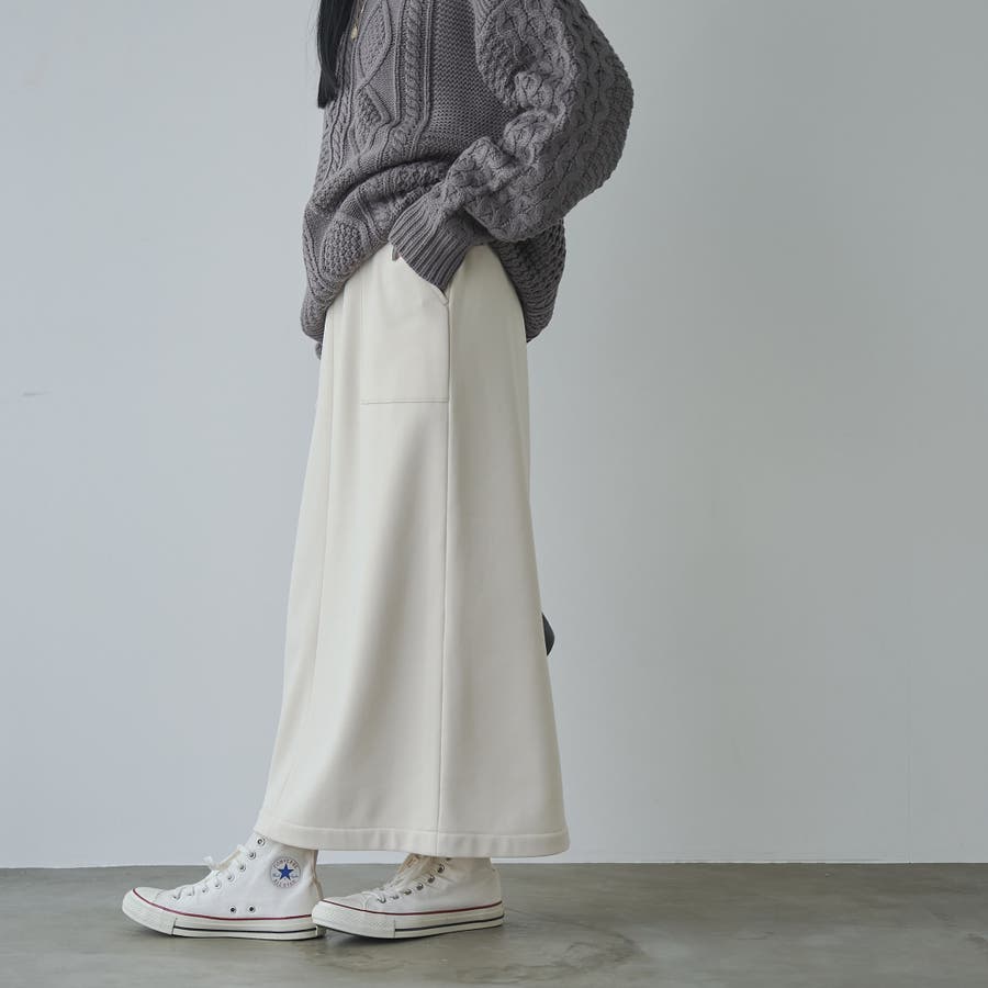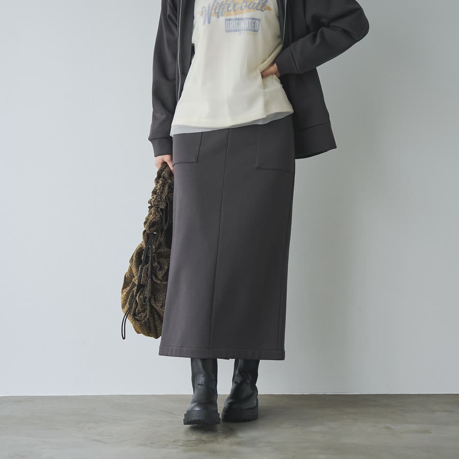 どんなトップスにも合わせやすい、シンプルなスウェット地のナロースカート。