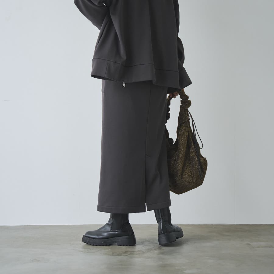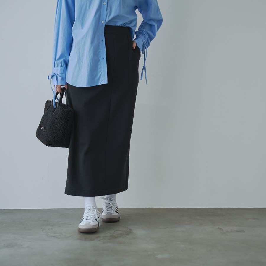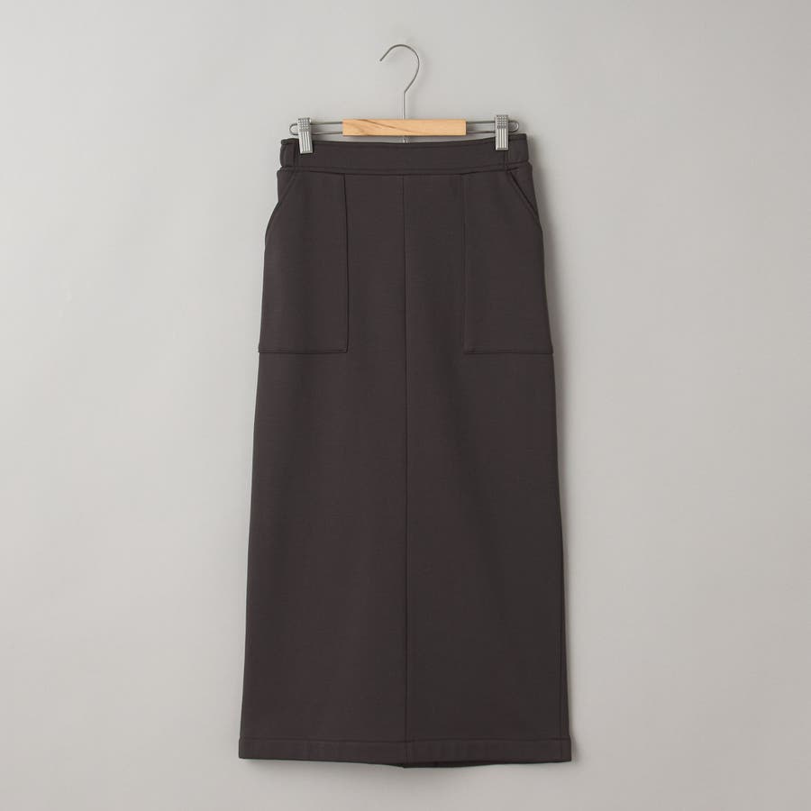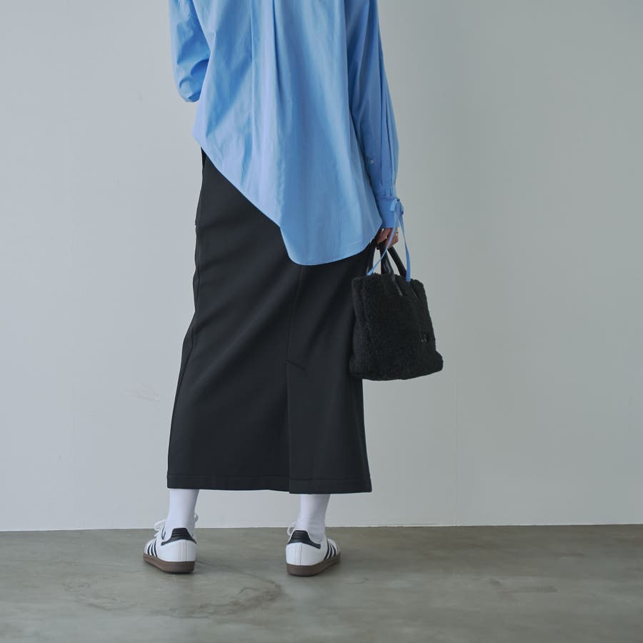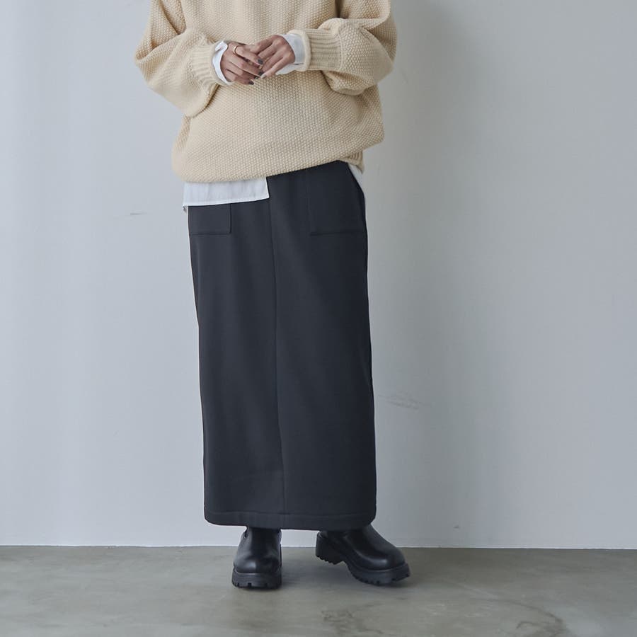 どんなトップスにも合わせやすい、シンプルなスウェット地のナロースカート。