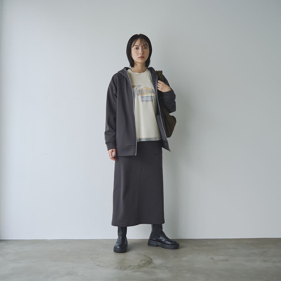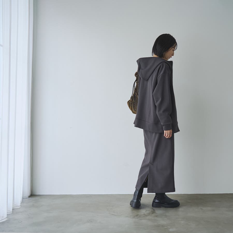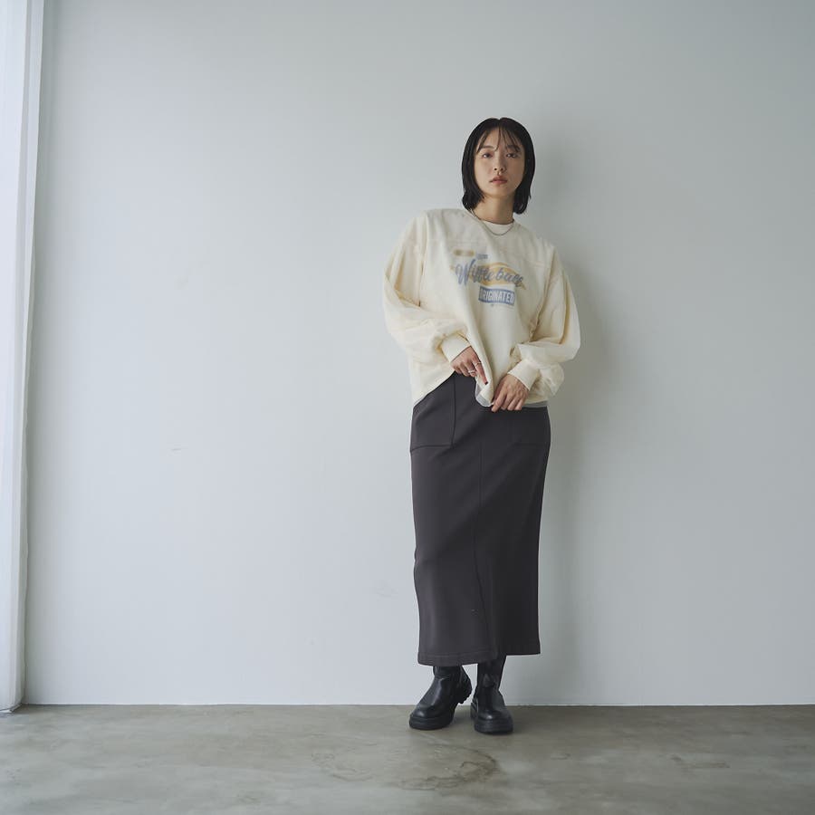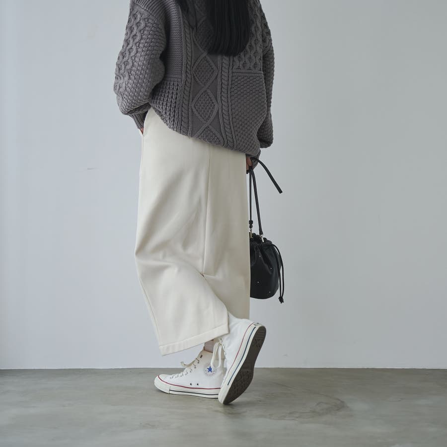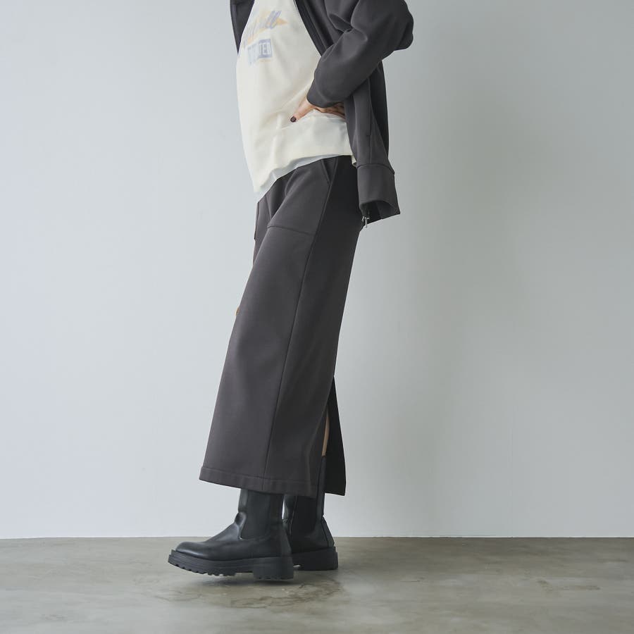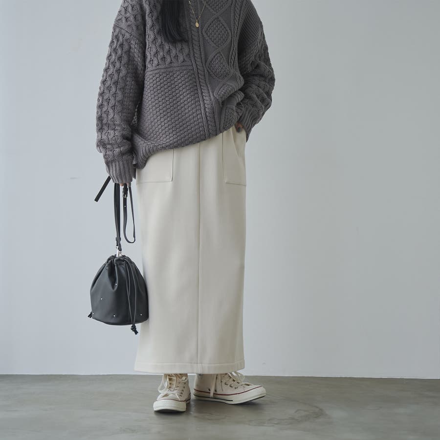 どんなトップスにも合わせやすい、シンプルなスウェット地のナロースカート。