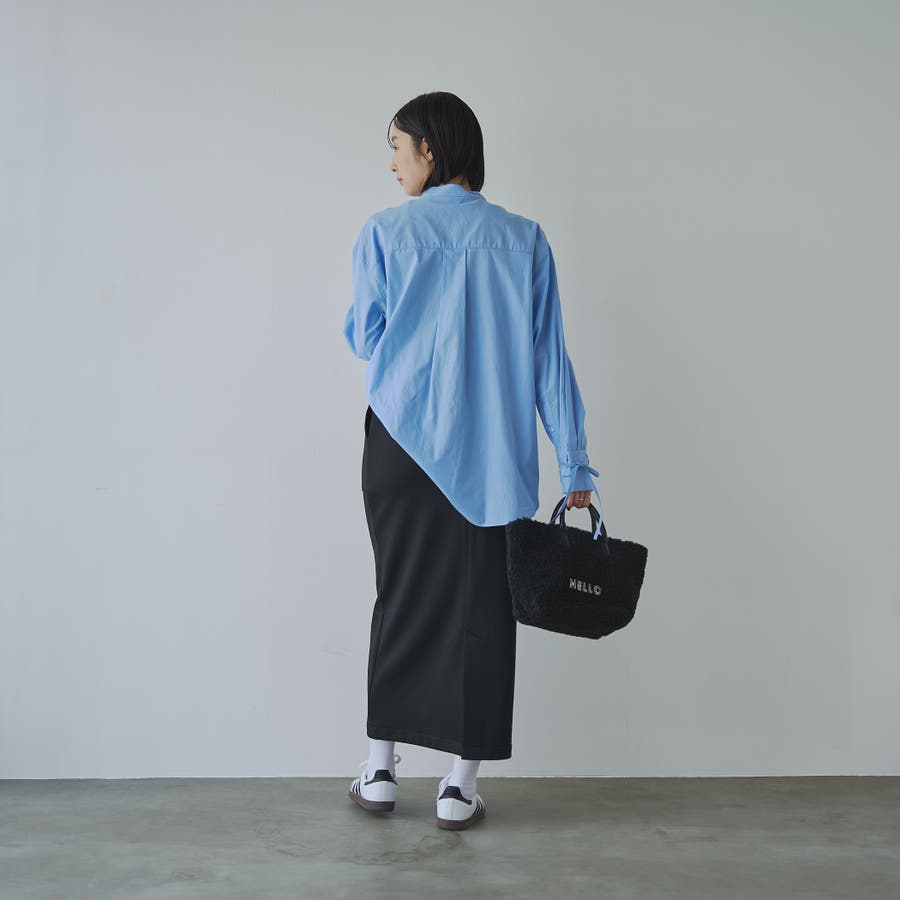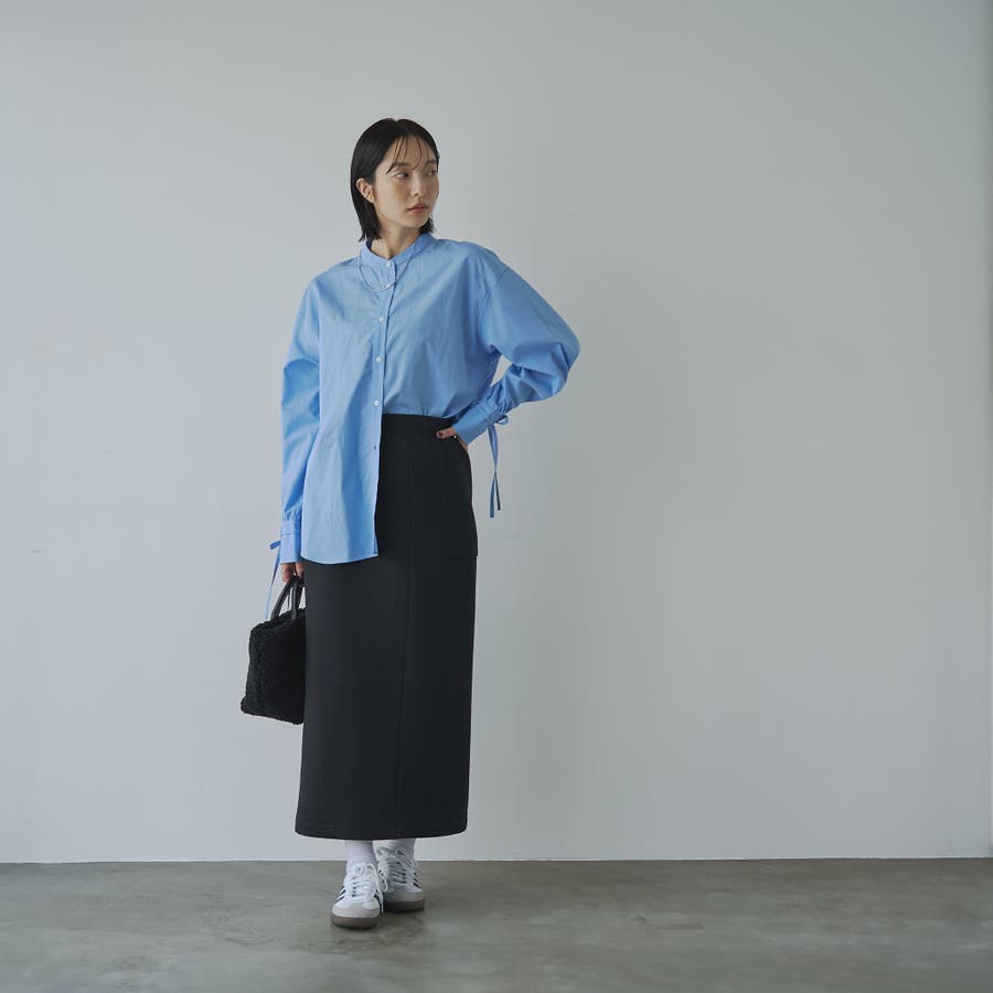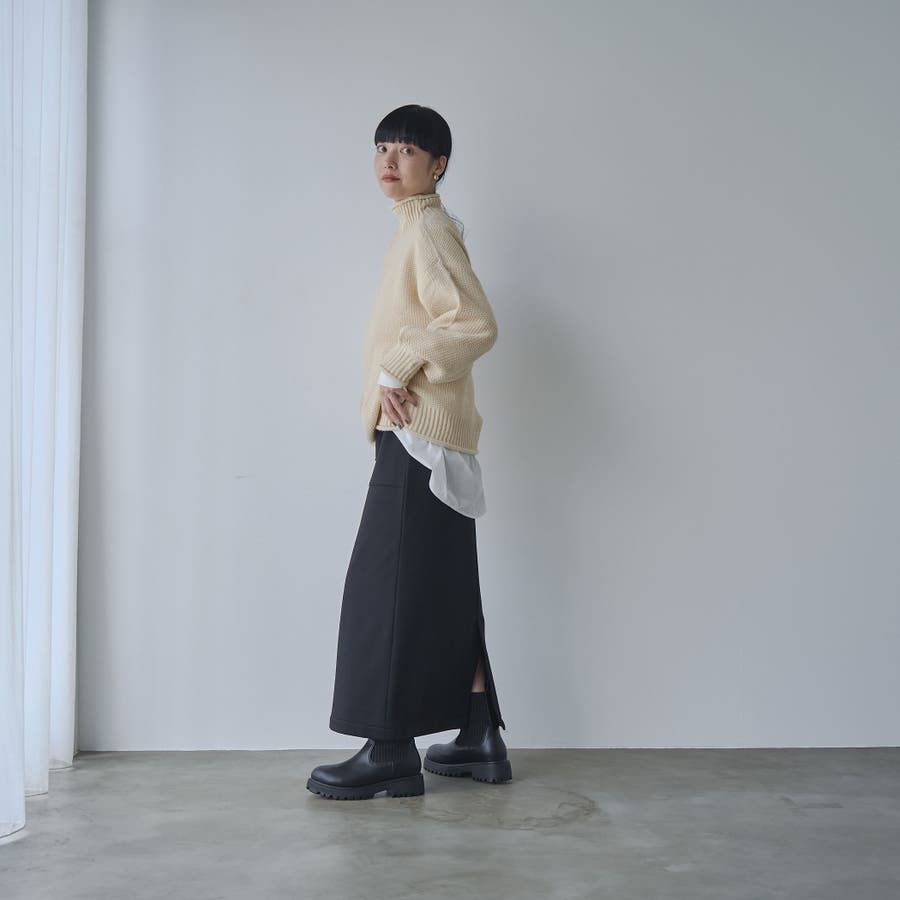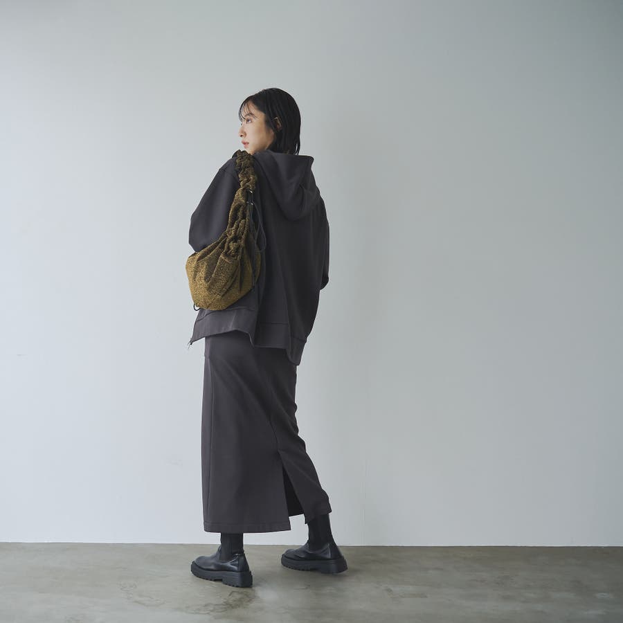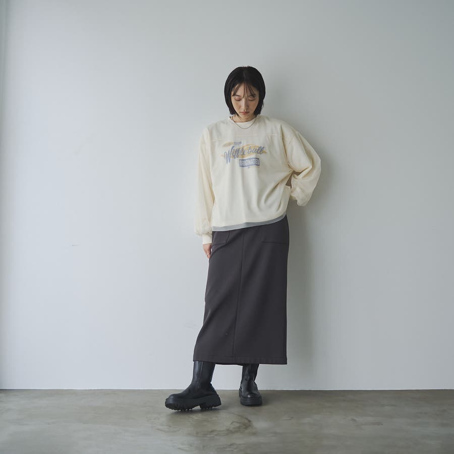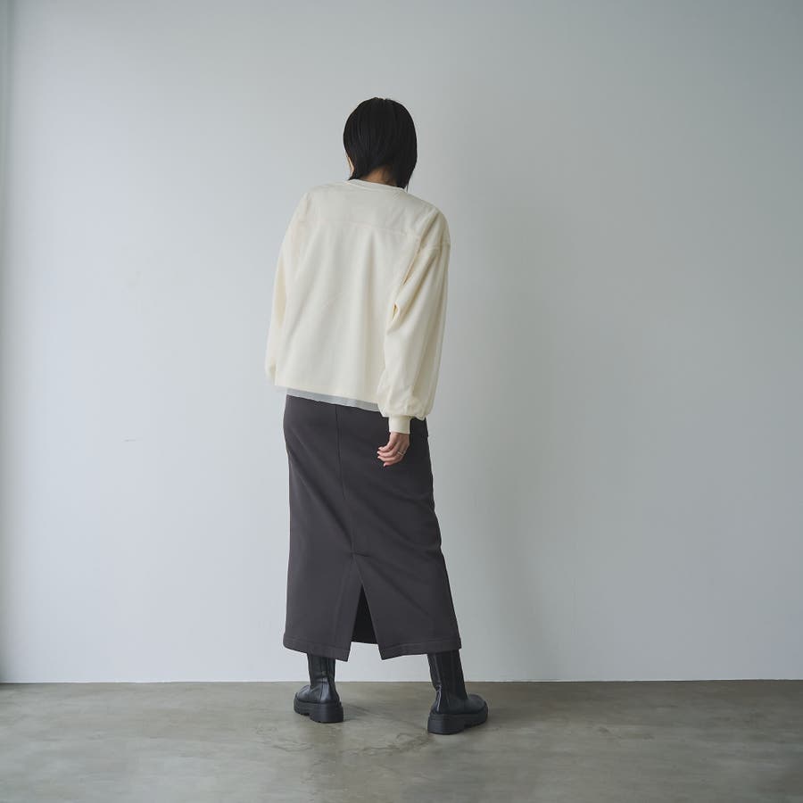 どんなトップスにも合わせやすい、シンプルなスウェット地のナロースカート。