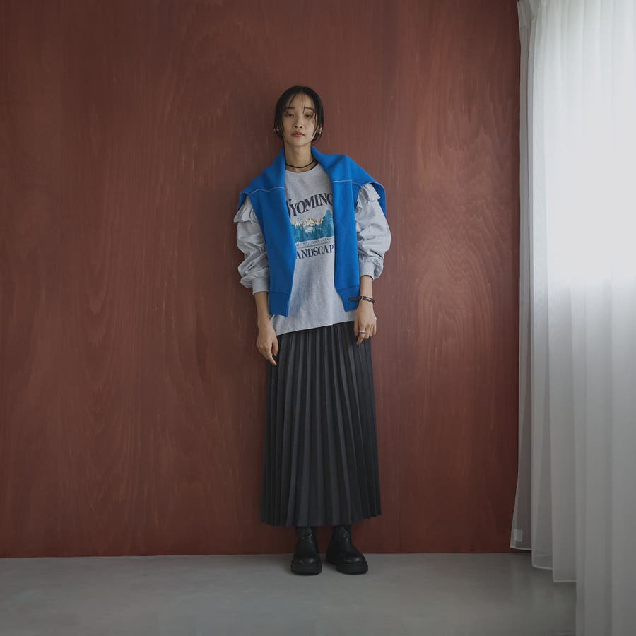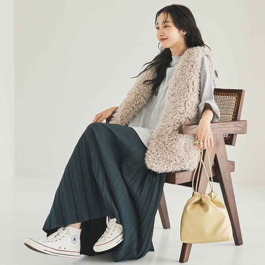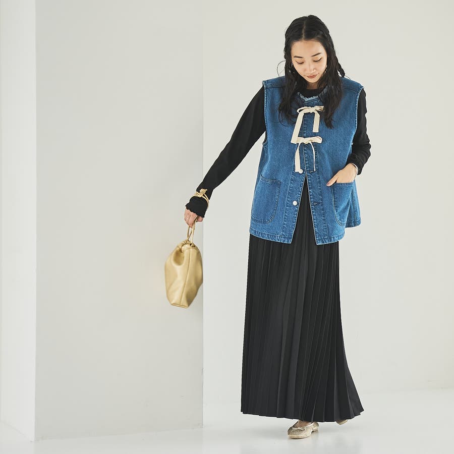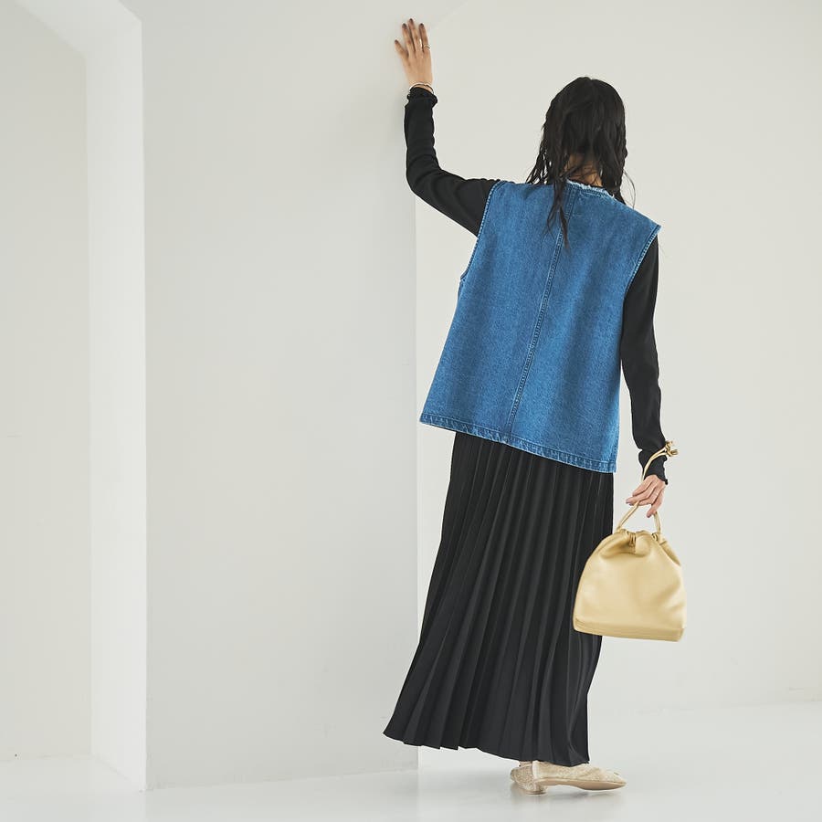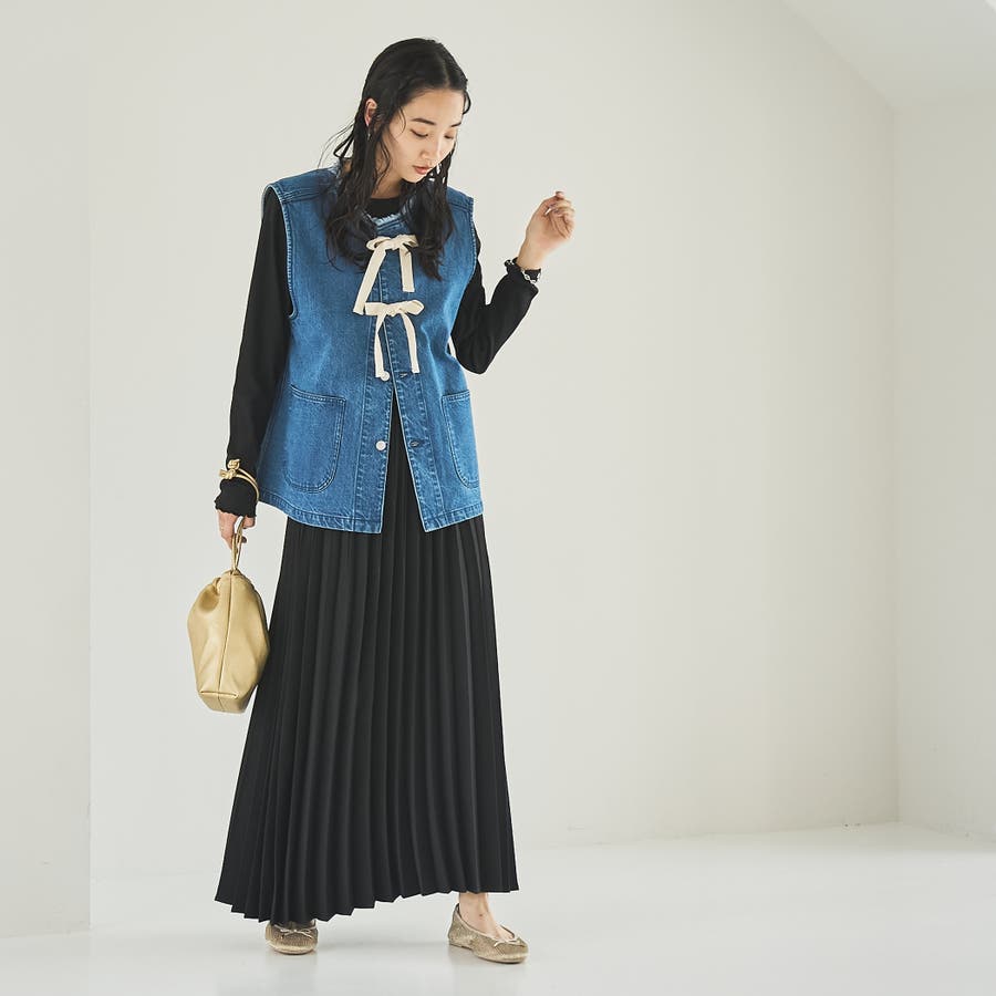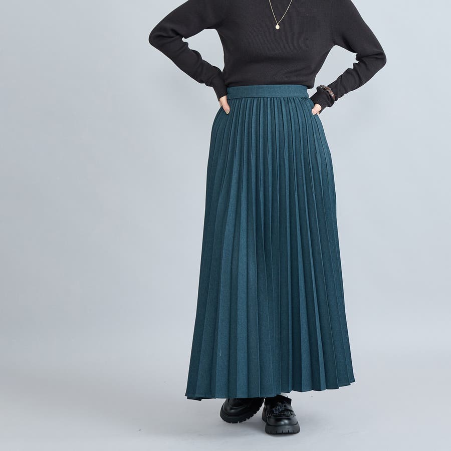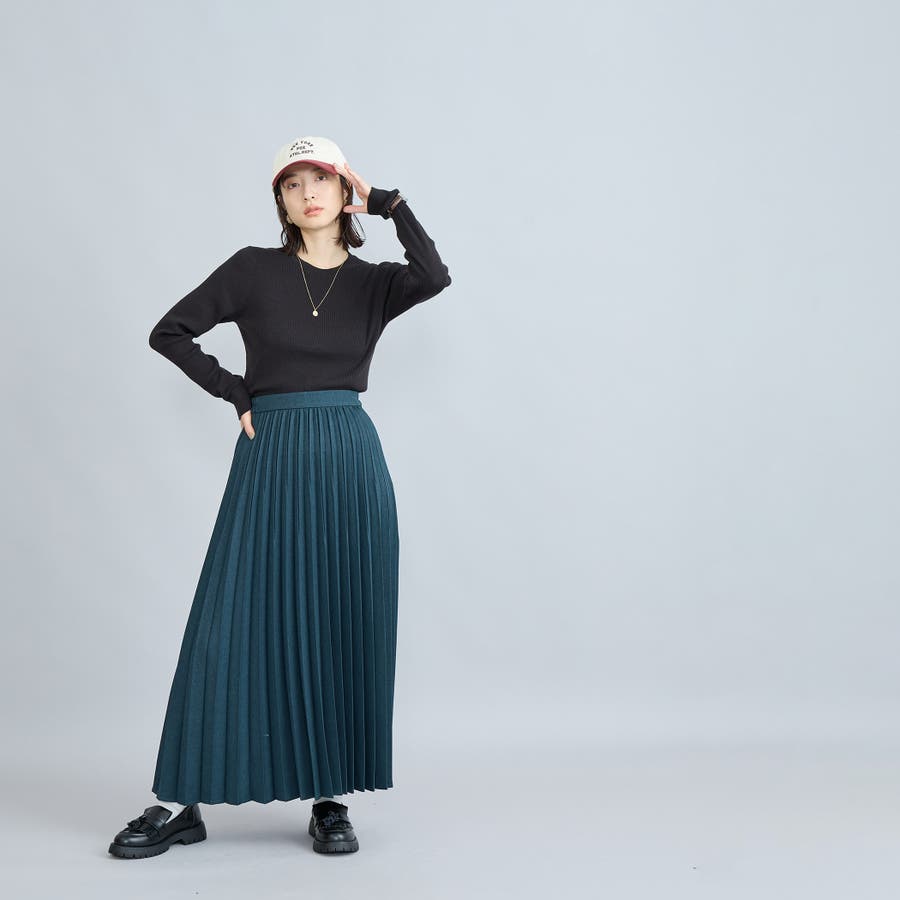 ロング丈×細プリーツが縦のラインを強調し、スッキリと穿きこなせる1枚です。