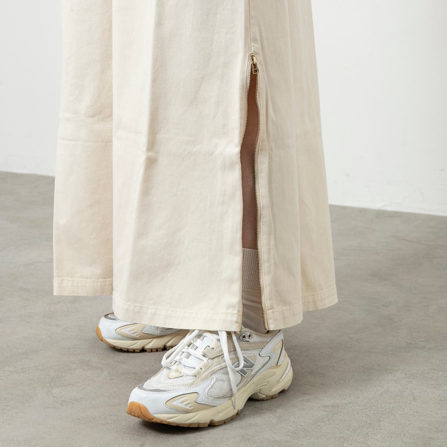 サイドにはジップを施しているので、パンツレイヤードはもちろん今らしいヌケ感を演出します。