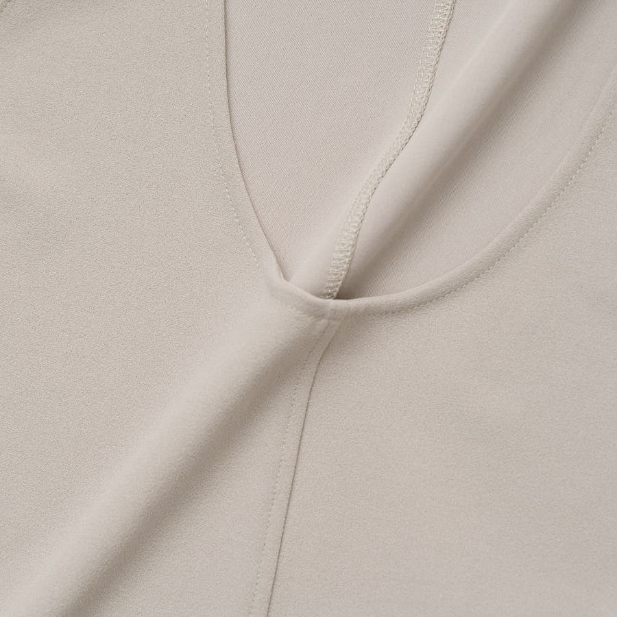 トレンド感のある深めUネックで、スッキリとしたIラインシルエットを実現。