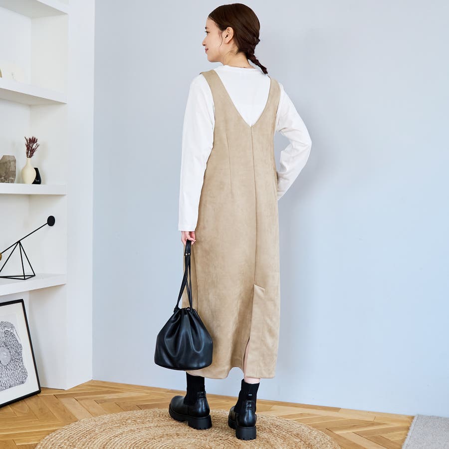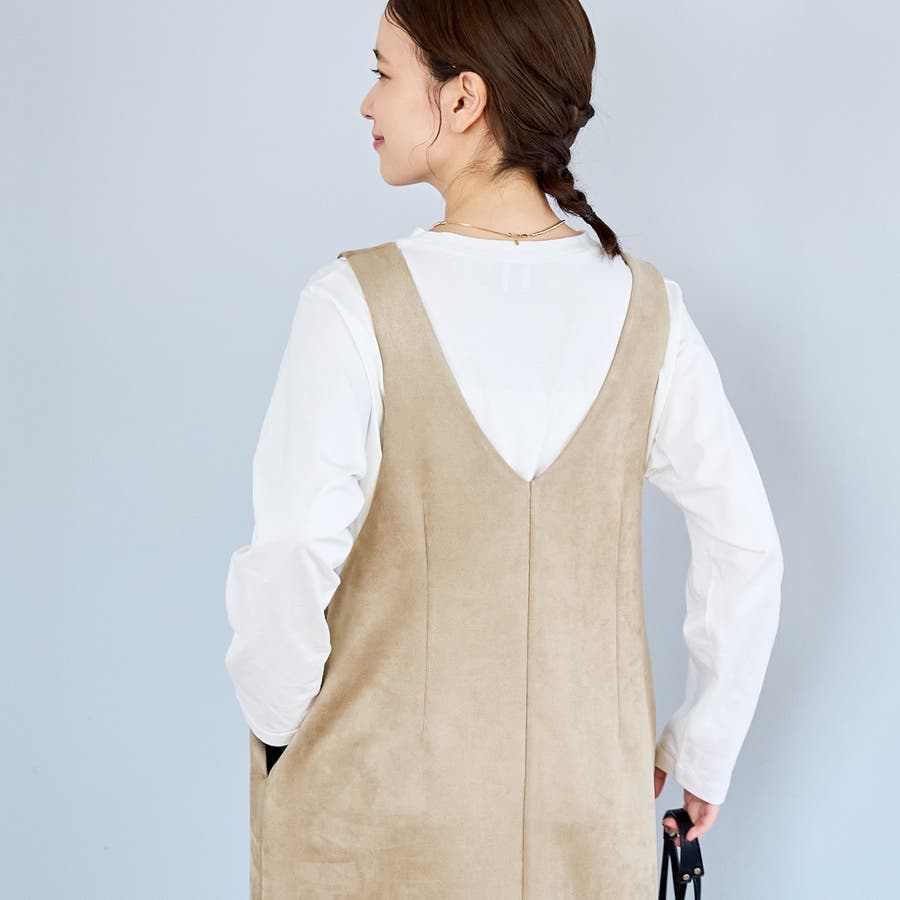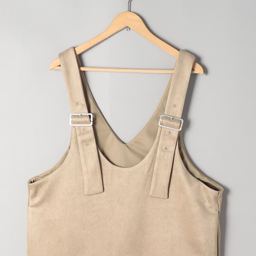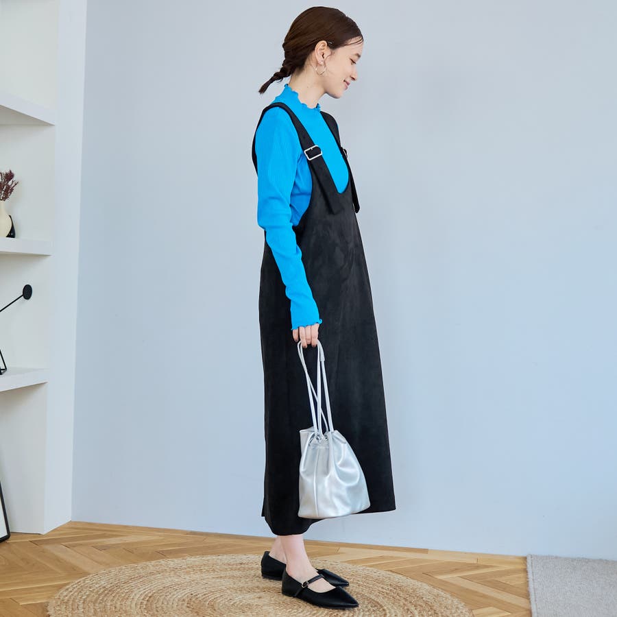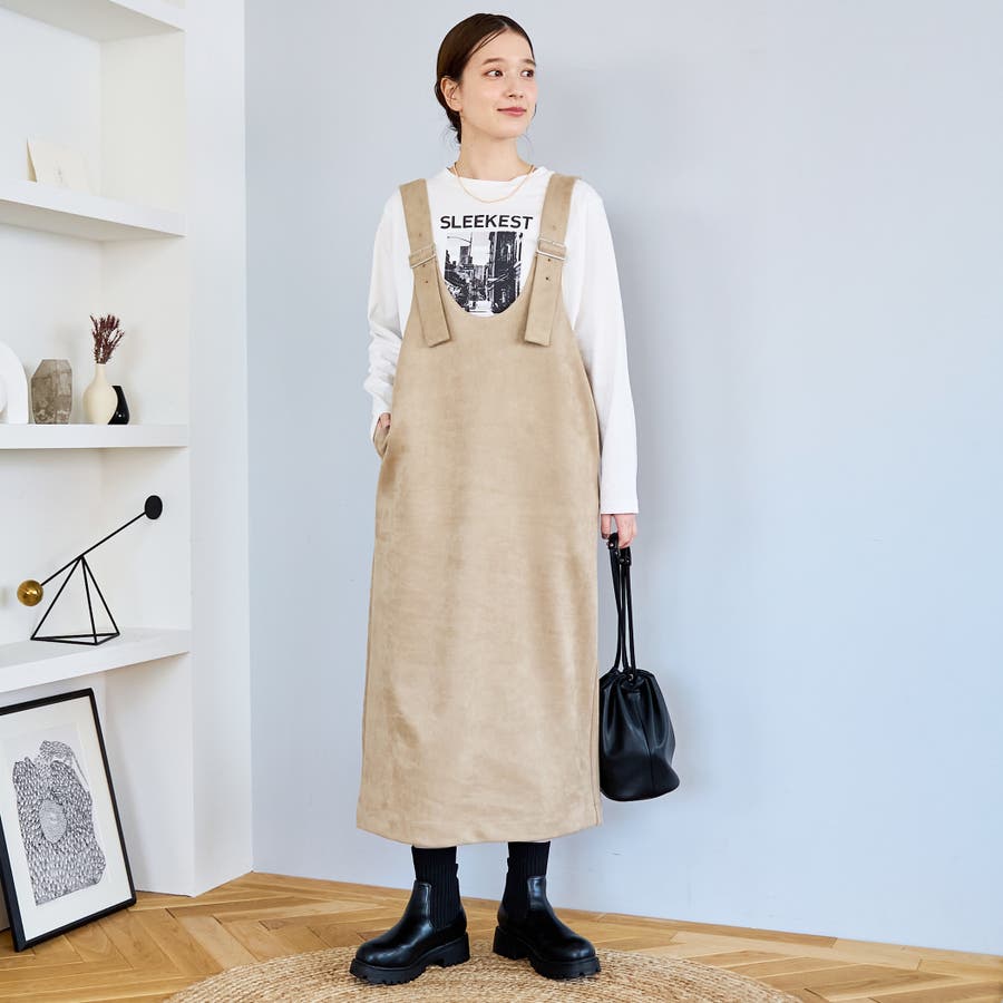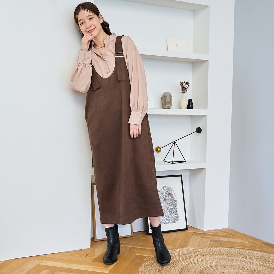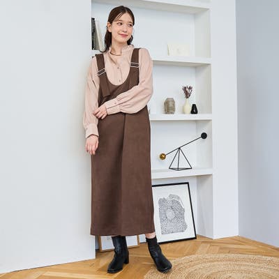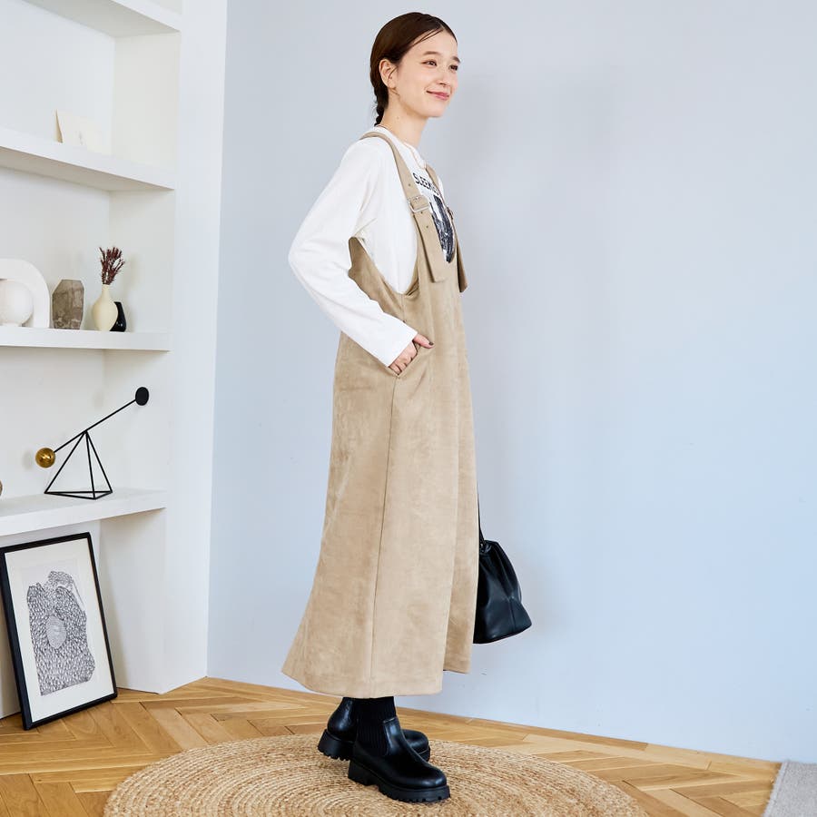 スエード調の素材を使用した、大人っぽい印象のジャンパースカートです。