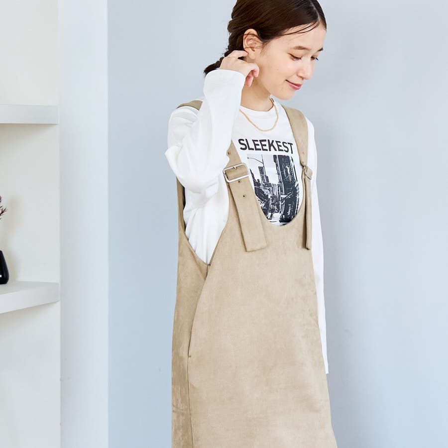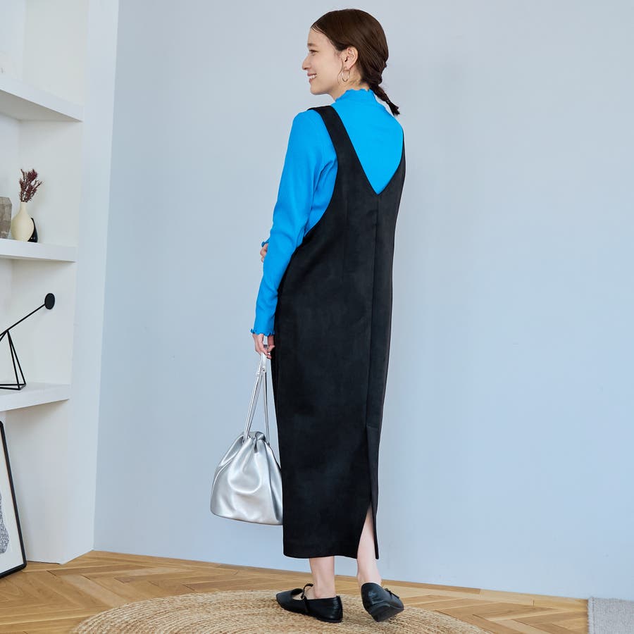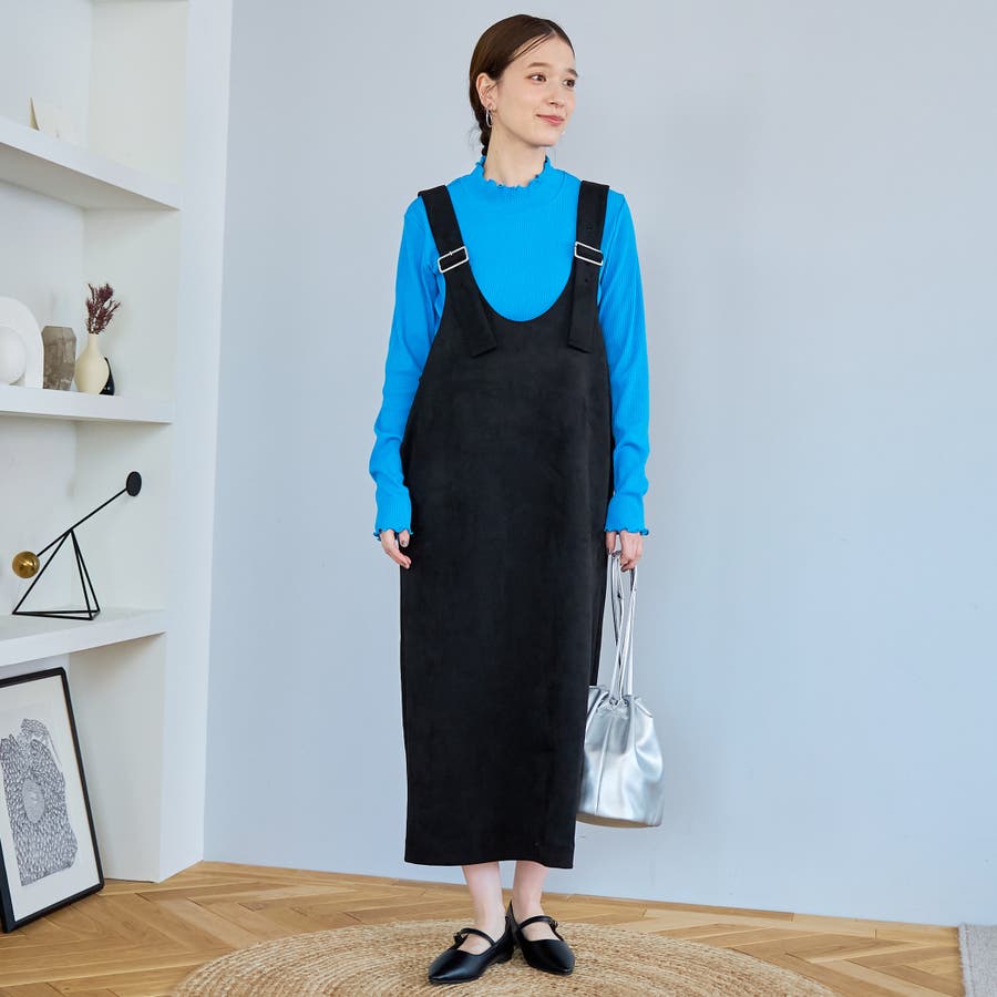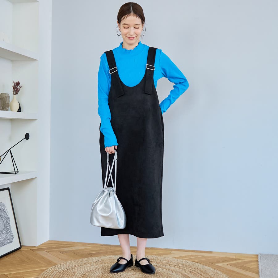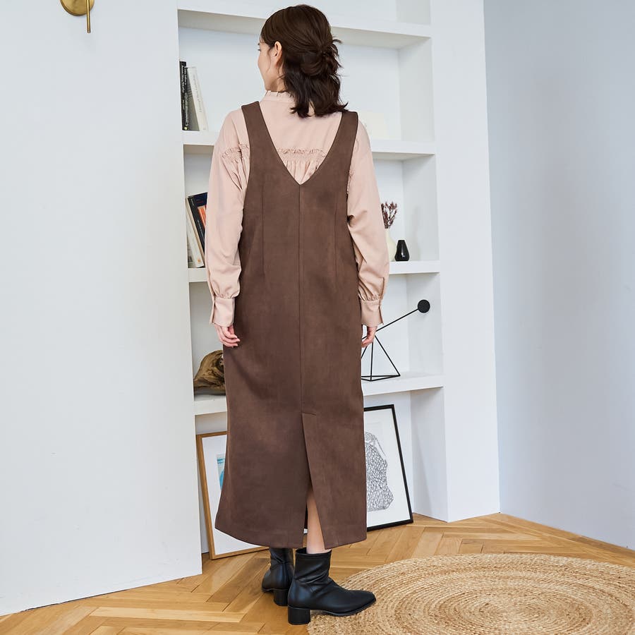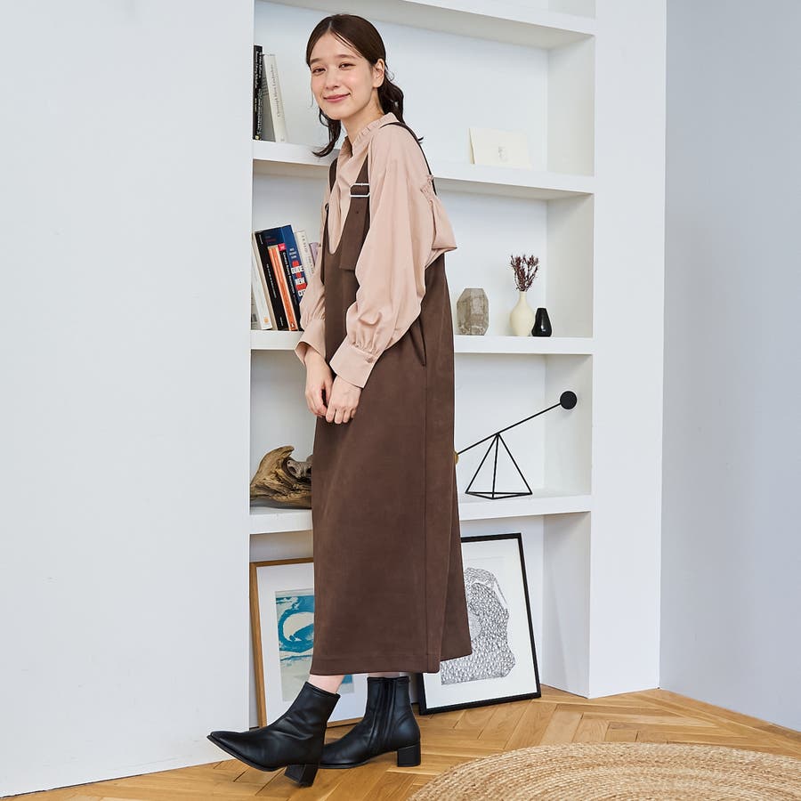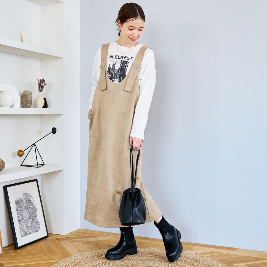 スエード調の素材を使用した、大人っぽい印象のジャンパースカートです。