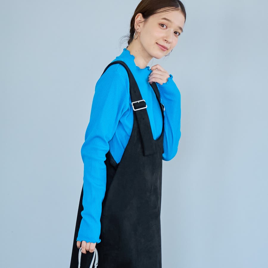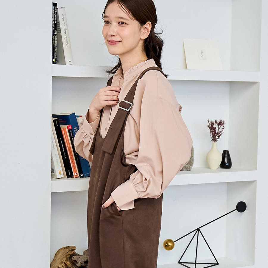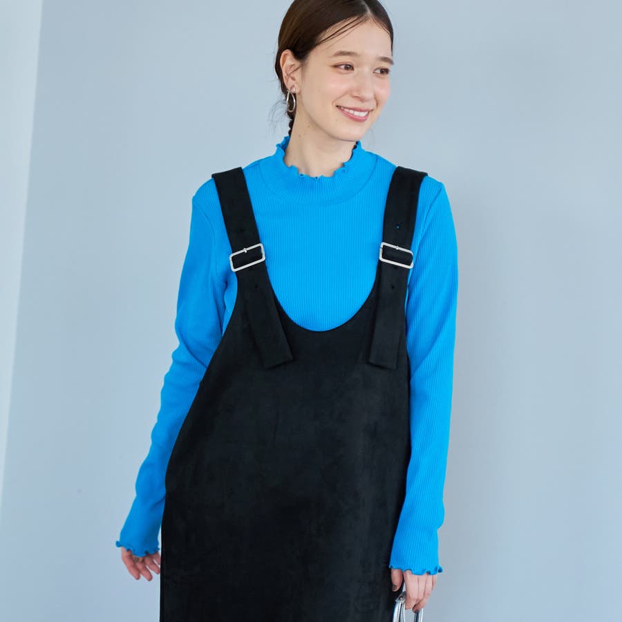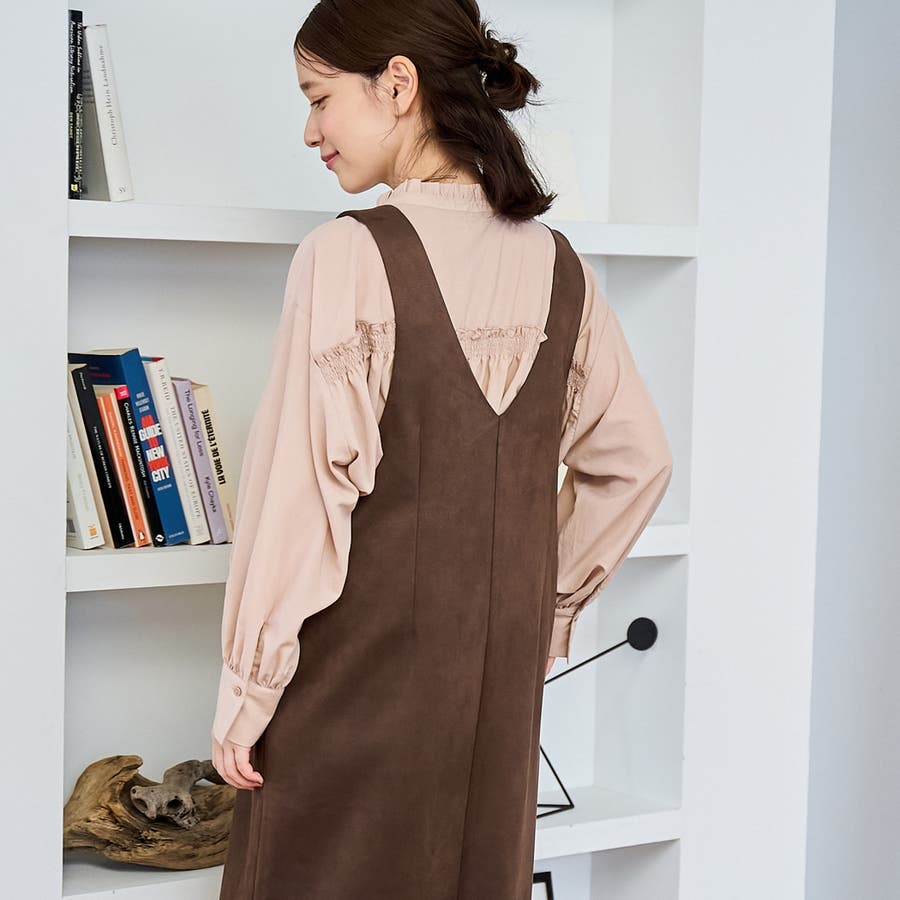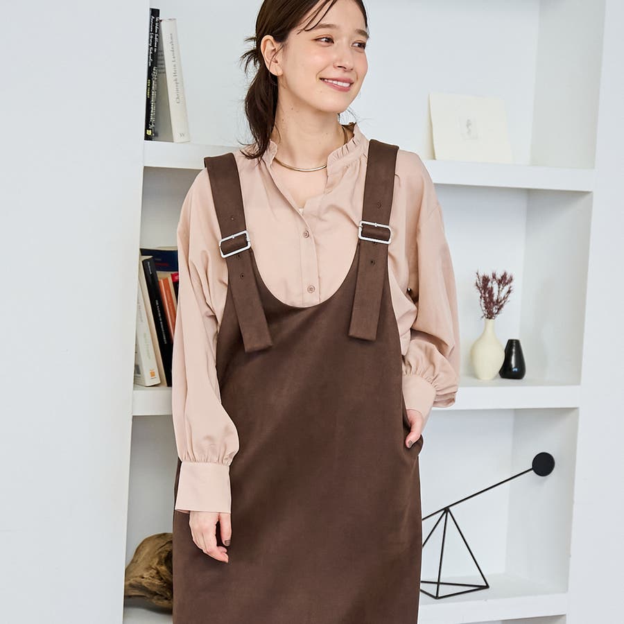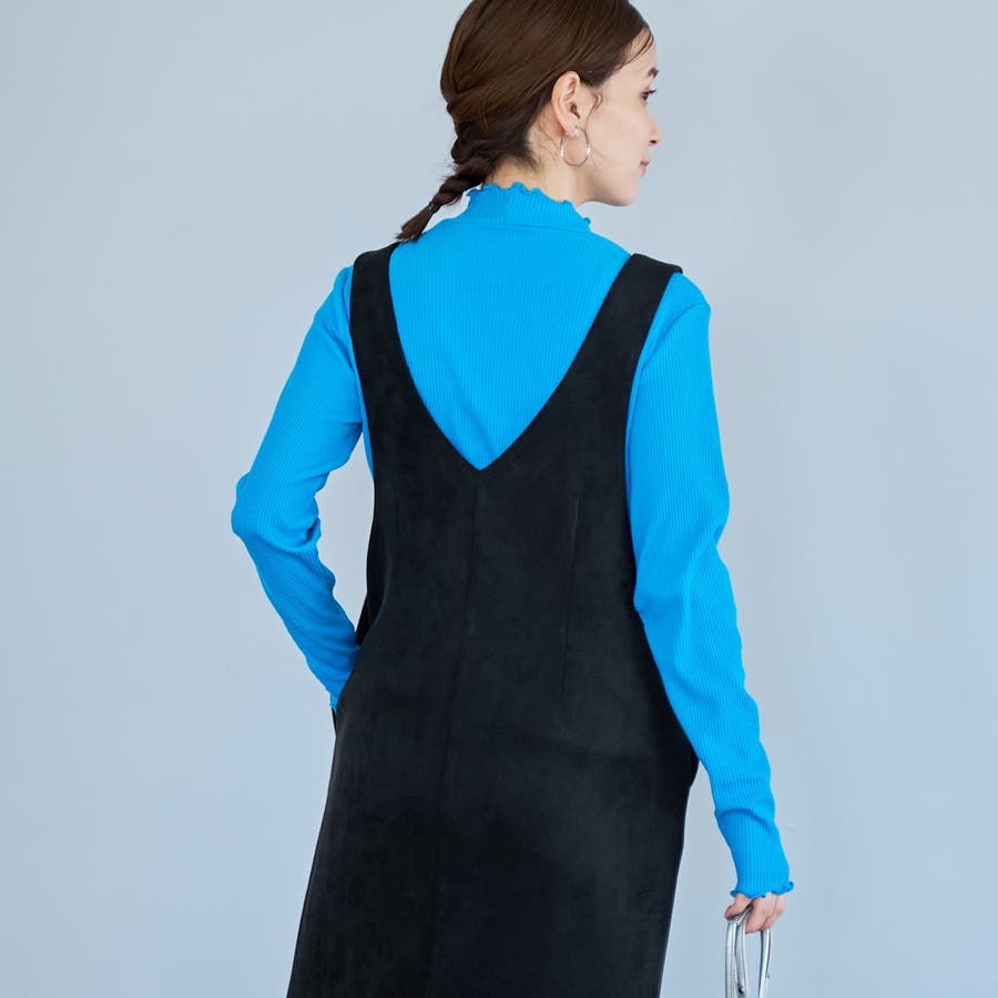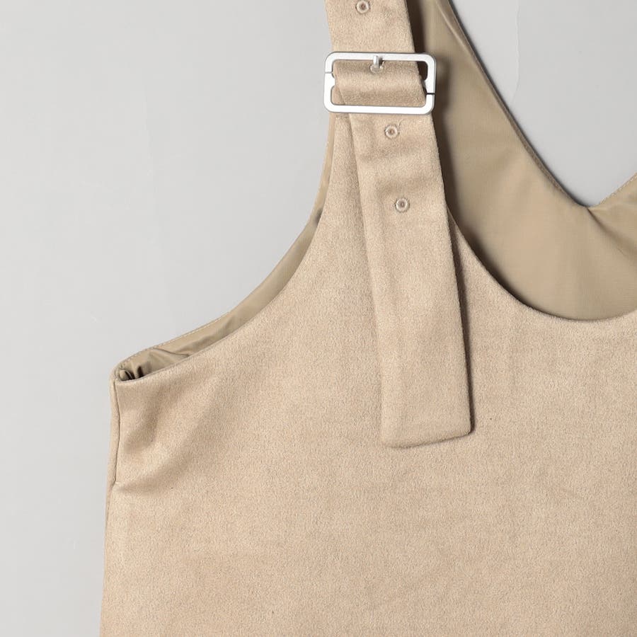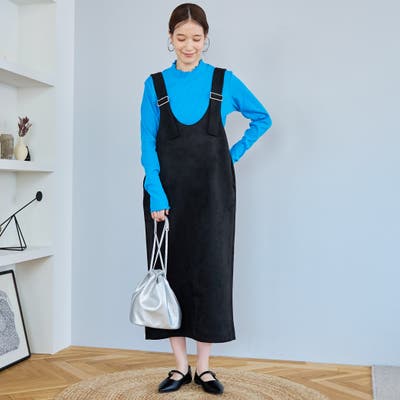 スエード調の素材を使用した、大人っぽい印象のジャンパースカートです。