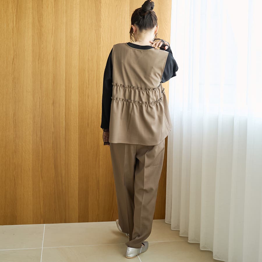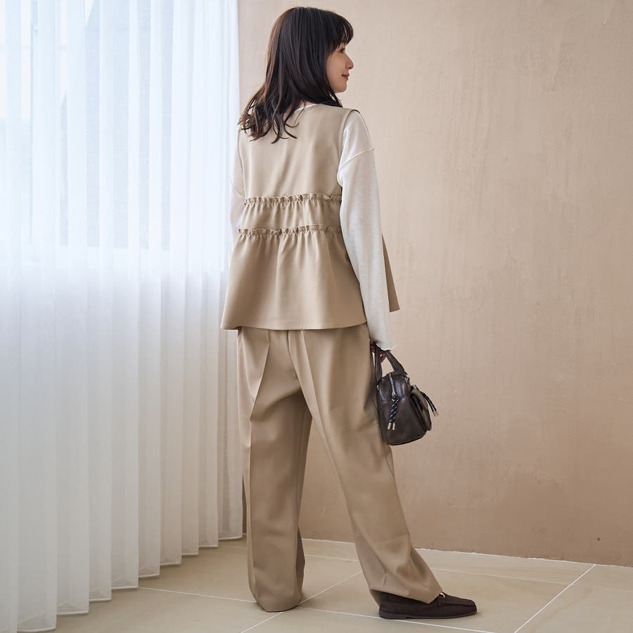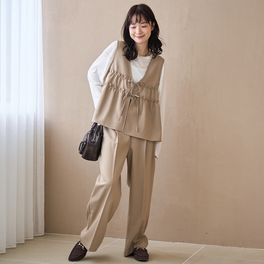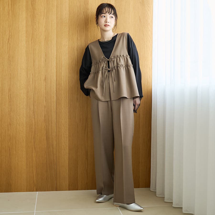ビスチェ×スラックスのセットで、別々でもセットでも着回し自在。