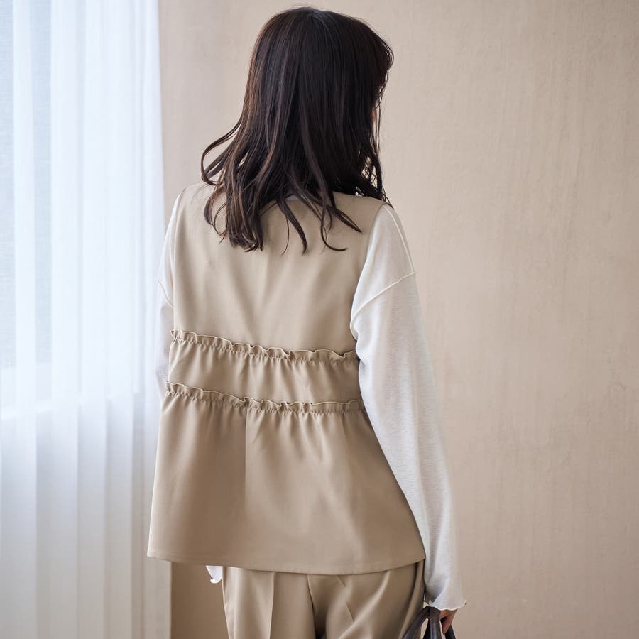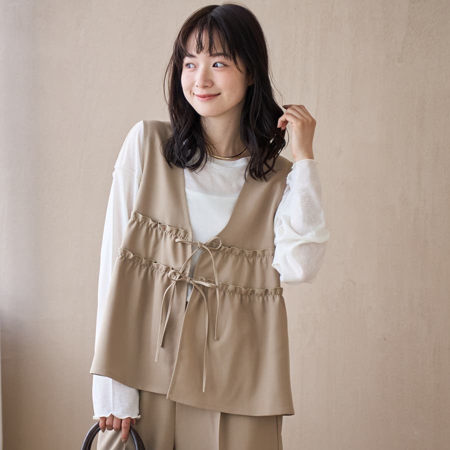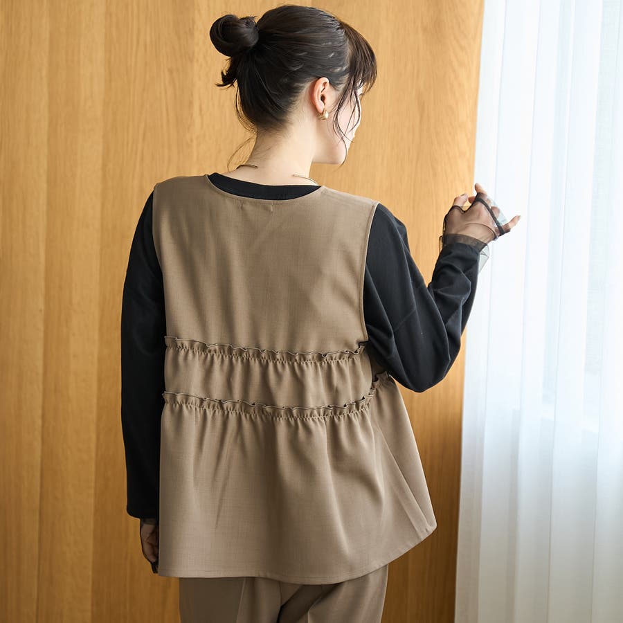 リネンライク ペプラムジップベスト(品番:76606000028)