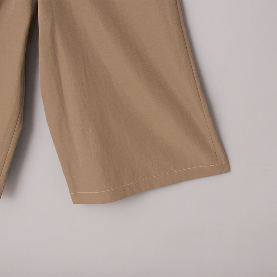 ワイドなパンツシルエットですが、レッグラインを隠すさりげないデザインも魅力です。