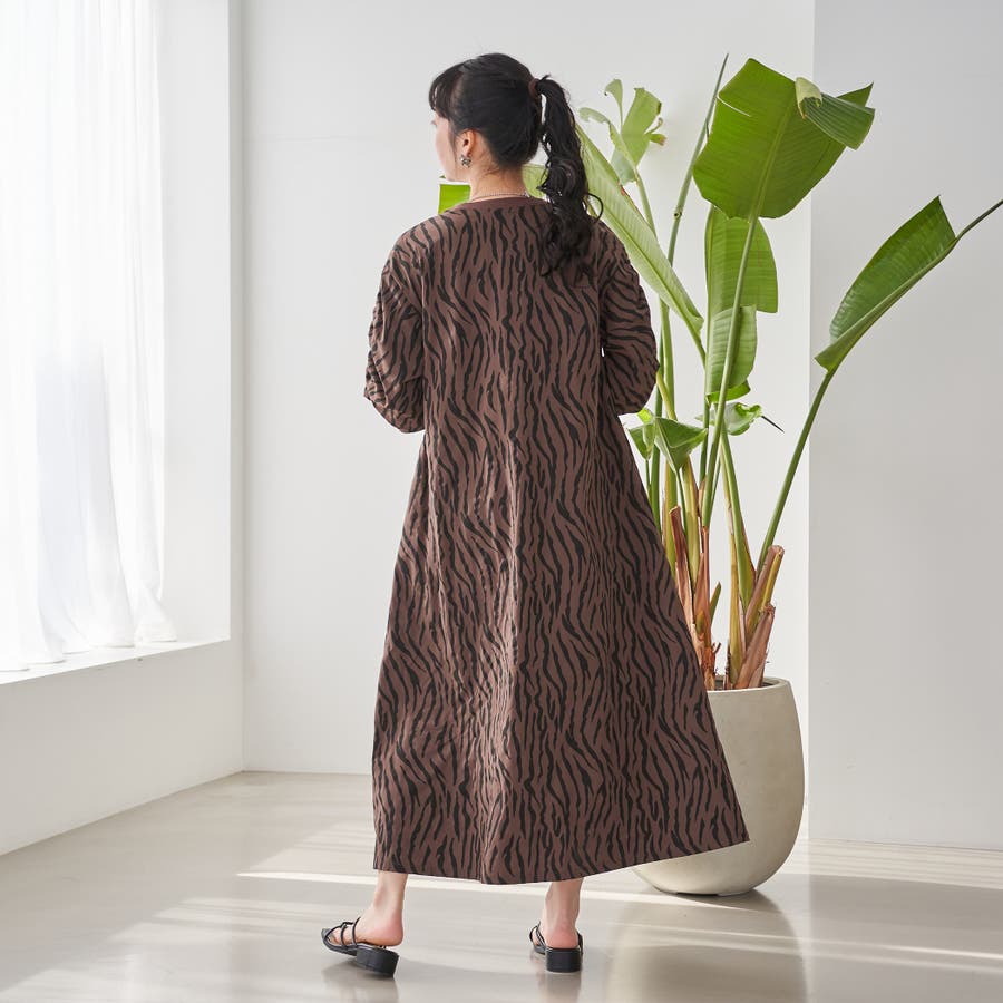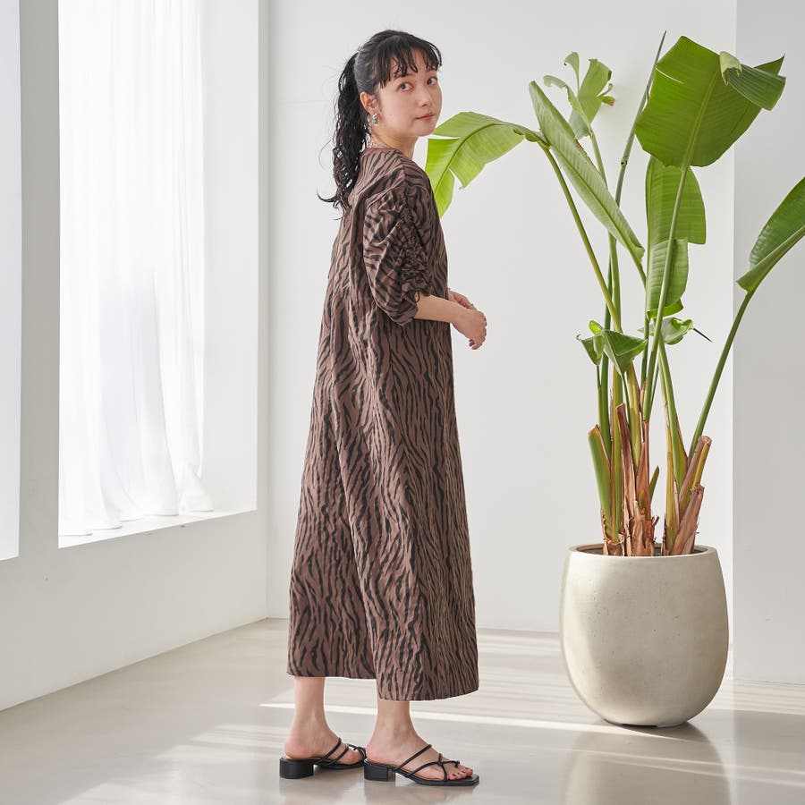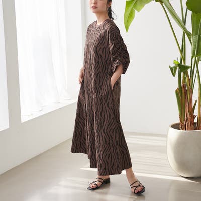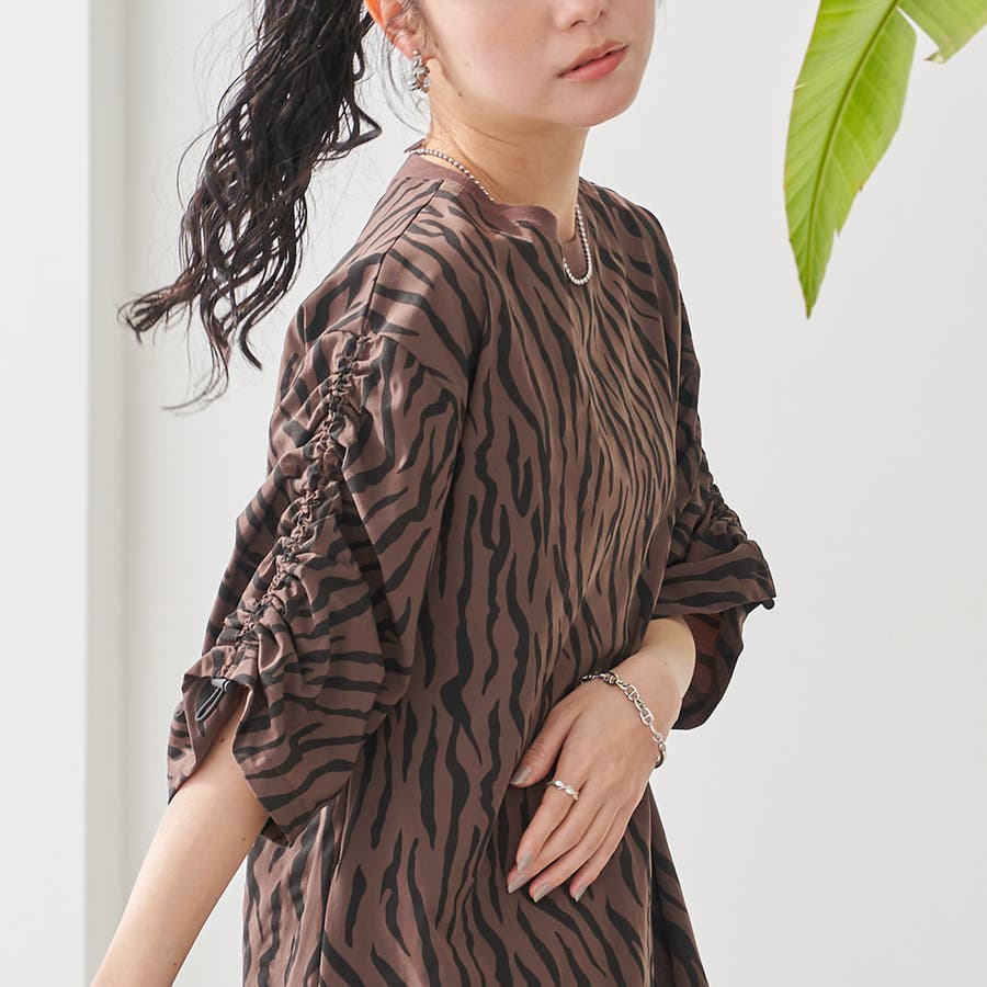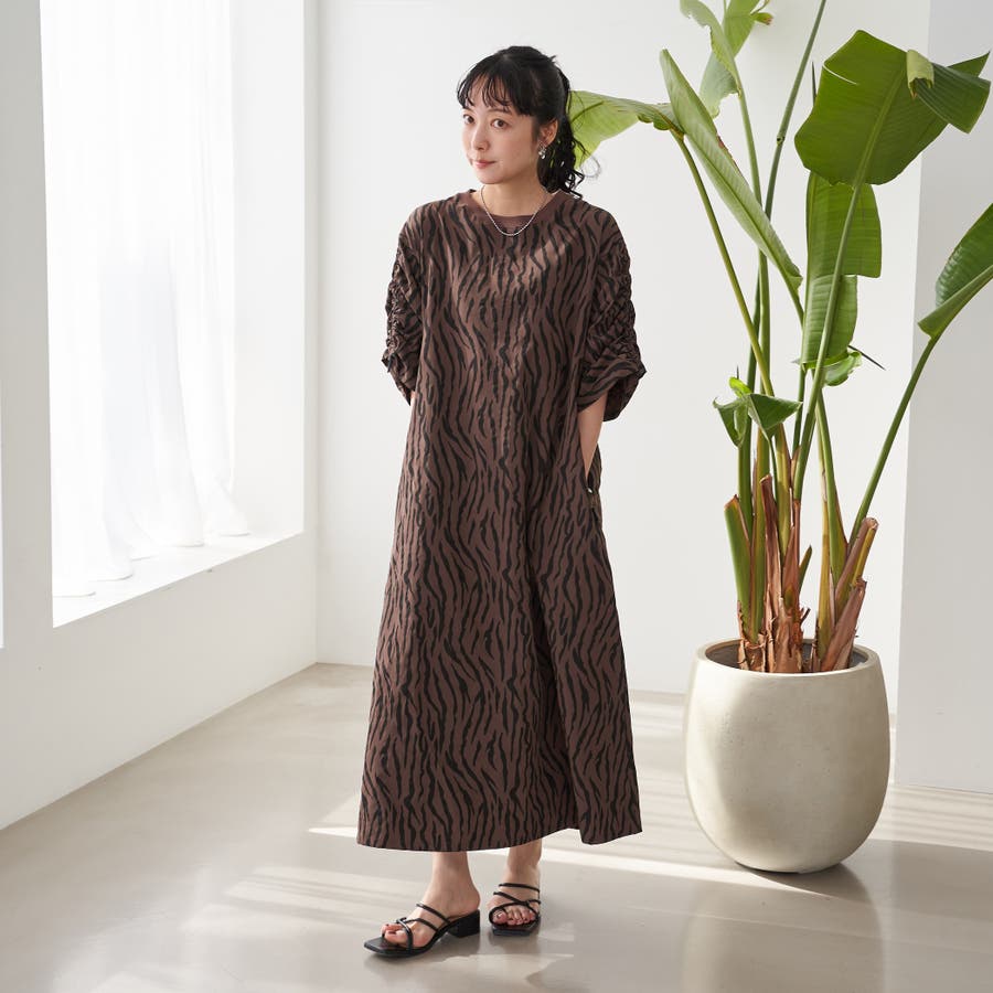 袖のドロストデザインが今年らしいアクセントになり、ゆったりとしたAラインシルエットで体型カバーも◎