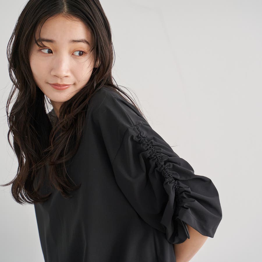 ・袖のドロストデザインがトレンド感をプラスし、シンプルながらもこなれた印象に。
