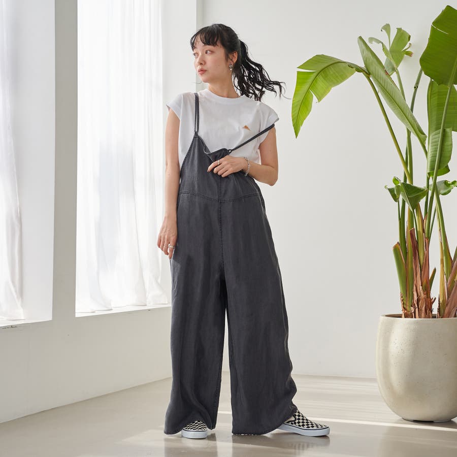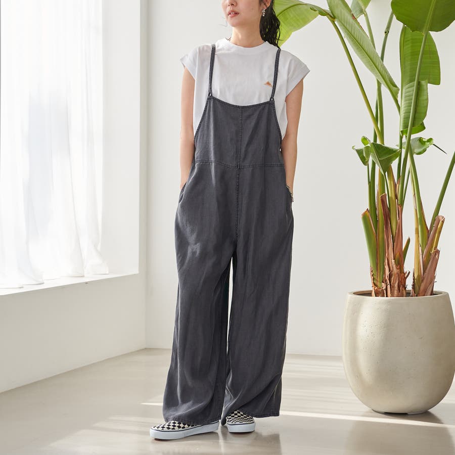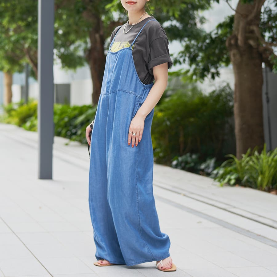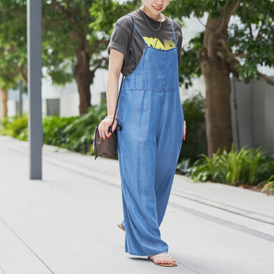 薄くてトロミのある大人ライトデニム素材を使用した、軽やかなキャミサロペット。