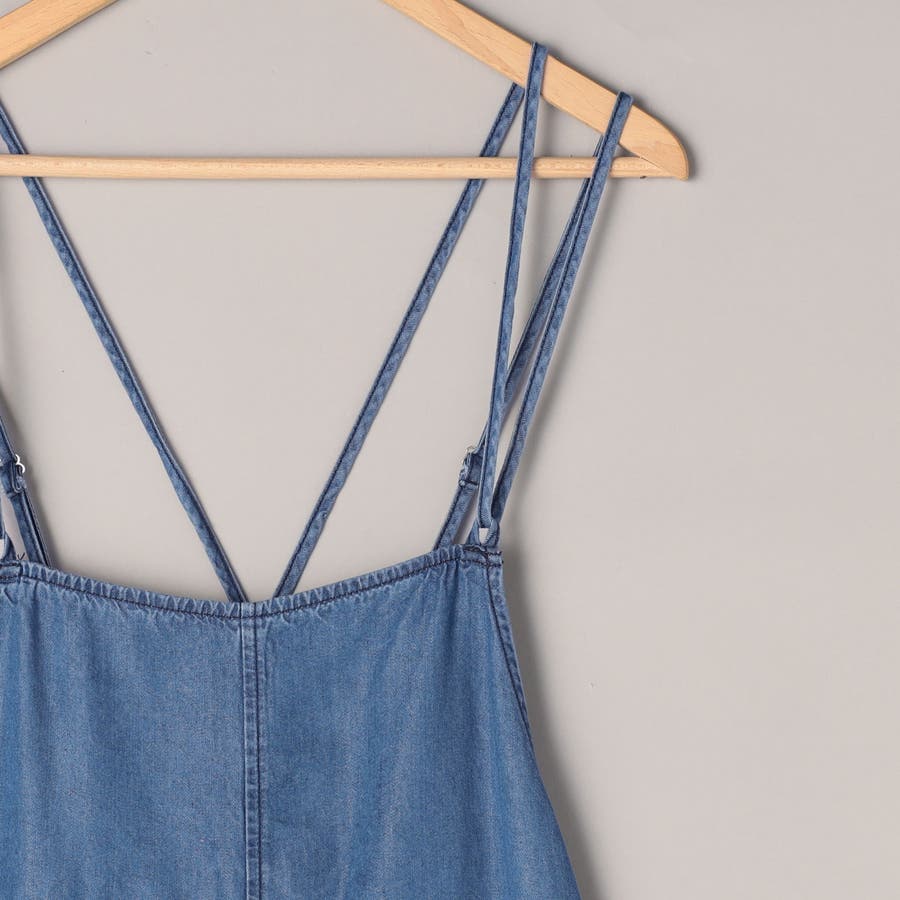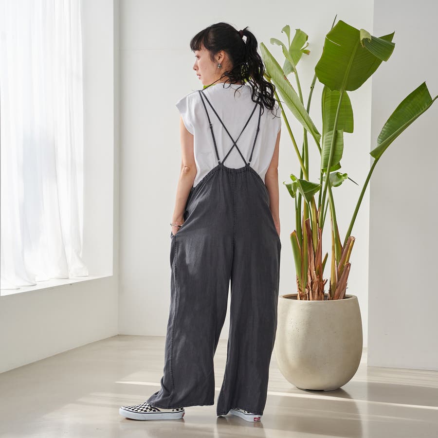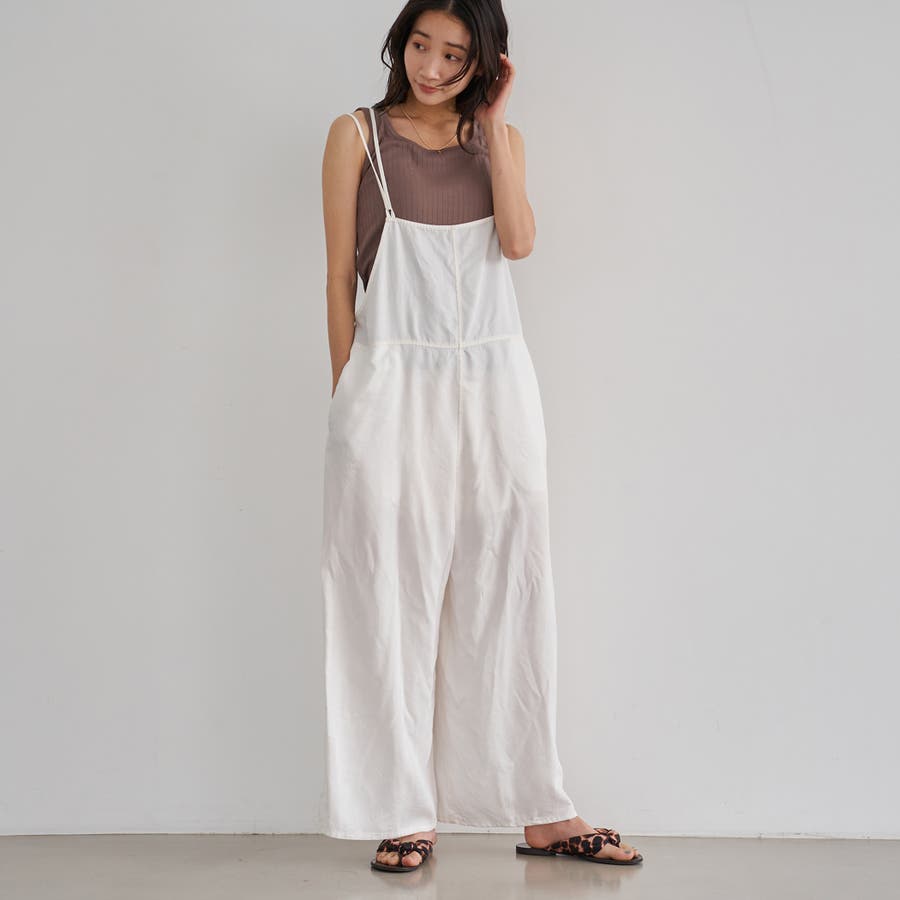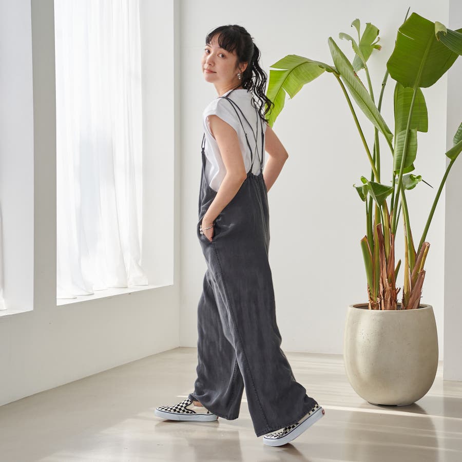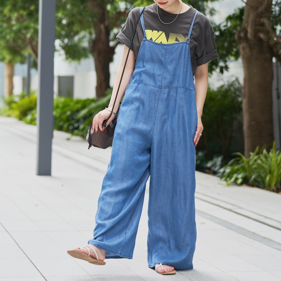 薄くてトロミのある大人ライトデニム素材を使用した、軽やかなキャミサロペット。