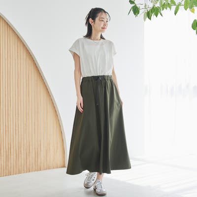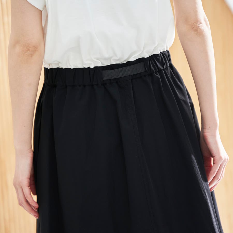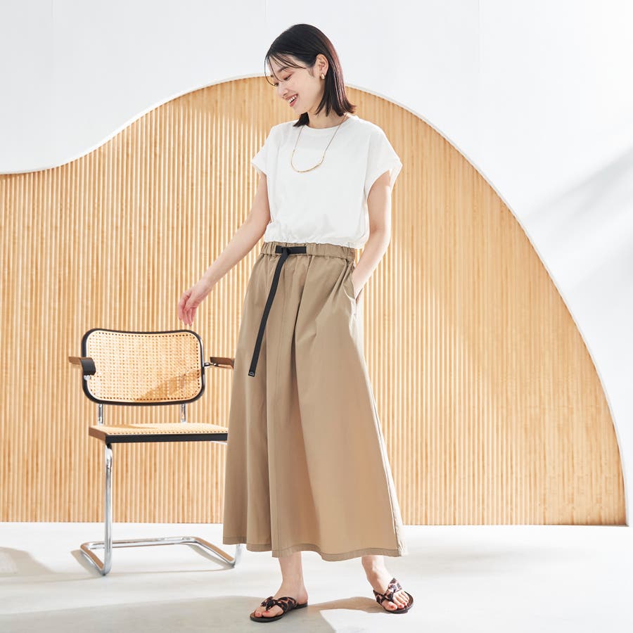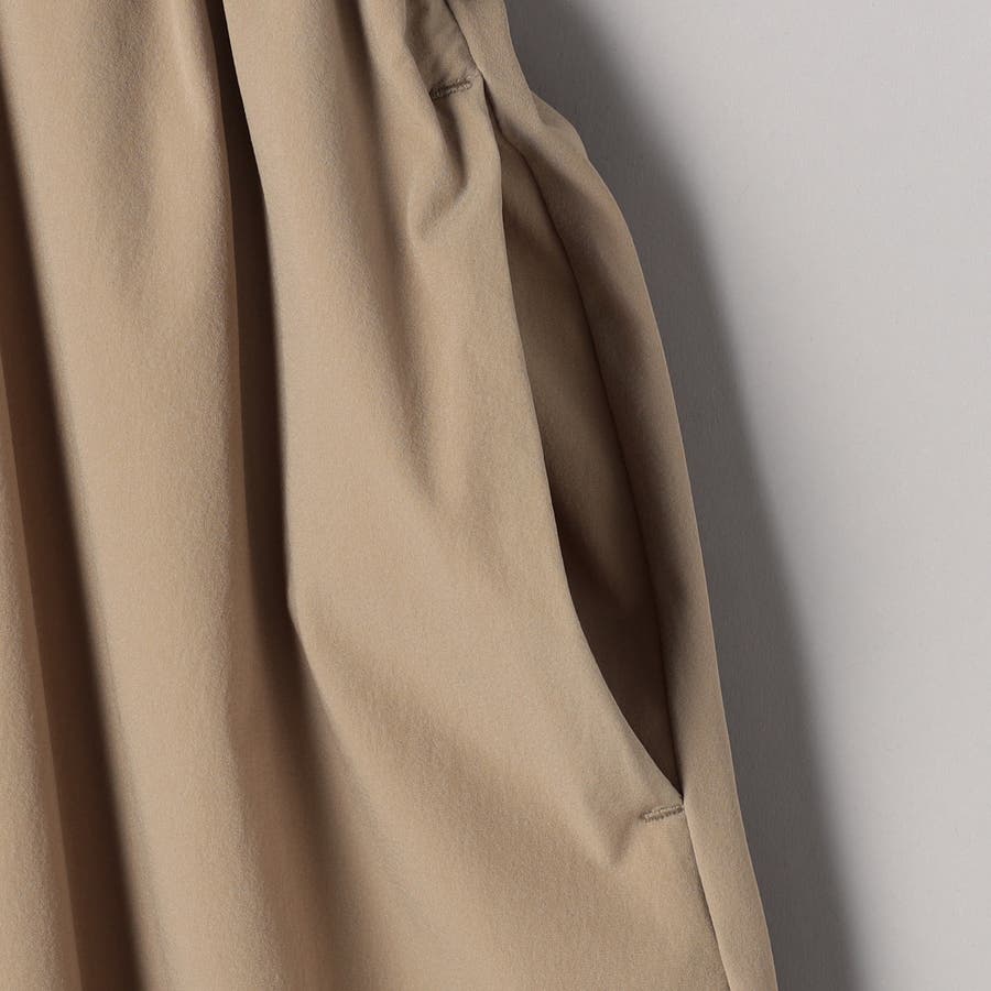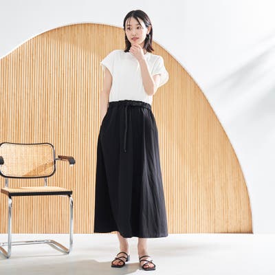 ウエストにはゴム+ドローコード入りで、ラクな着心地と自然なくびれシルエットを両立。