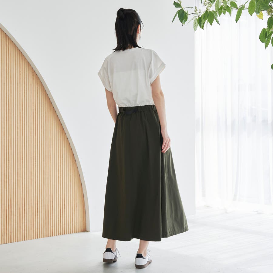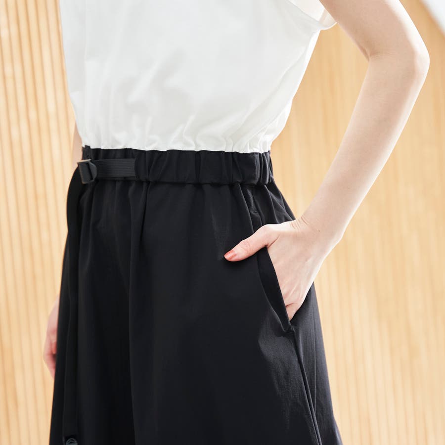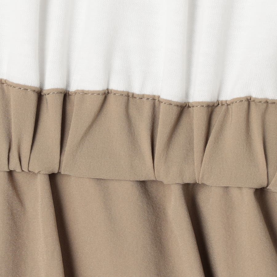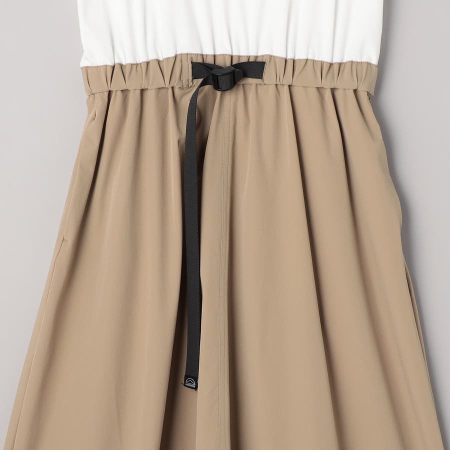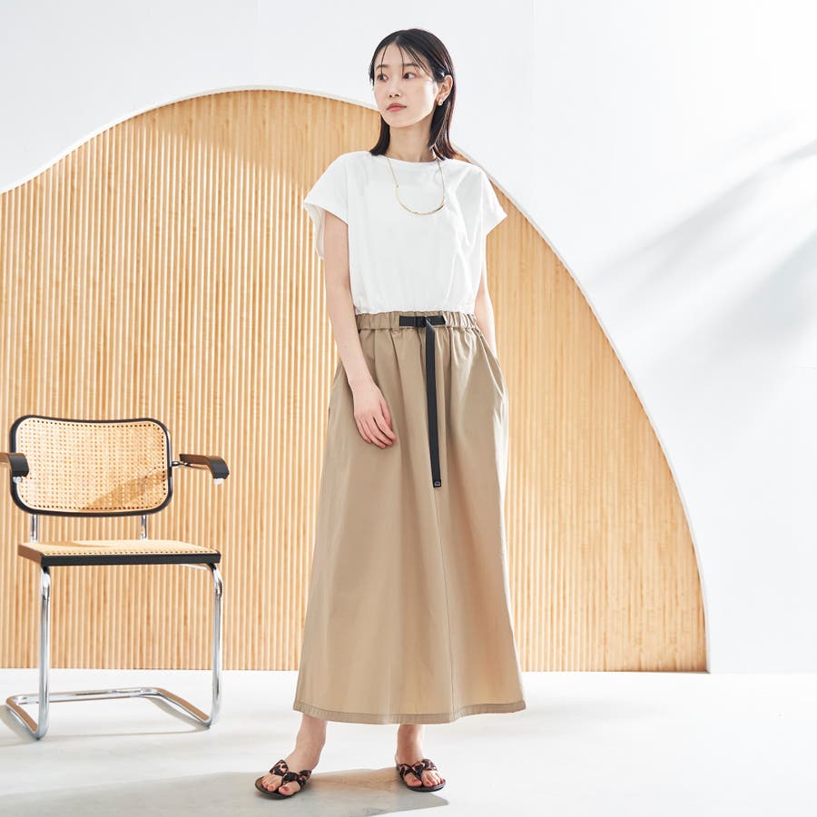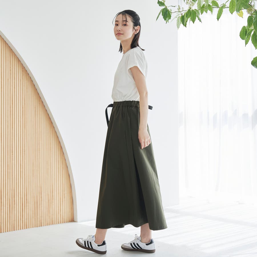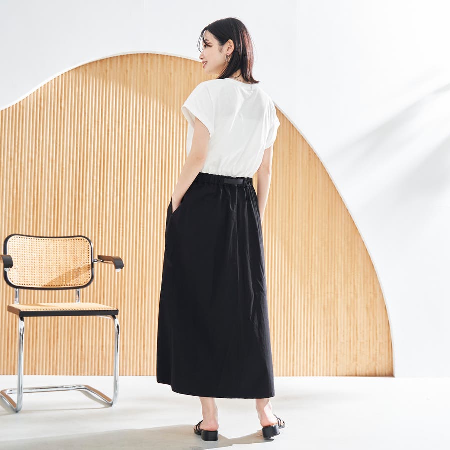 Tシャツ感覚で着られる気軽さと、スカート部分の軽やかなナイロン素材でこなれ感をプラスした、異素材ドッキングワンピース。
