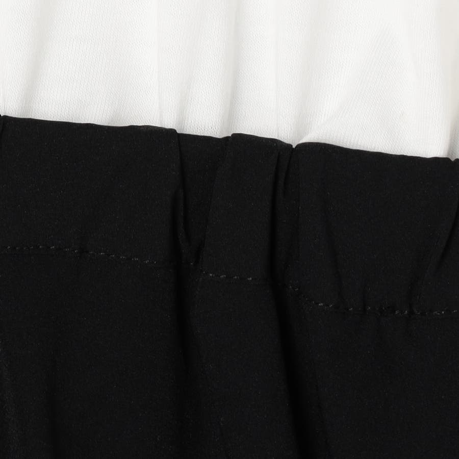 上半身はカジュアルなTシャツ素材、下半身はやや光沢感のあるナイロン素材で、1枚で着映えが叶うバランスに仕上げました。