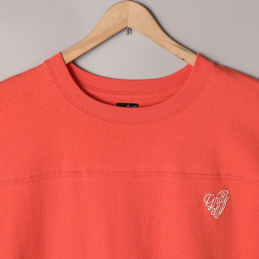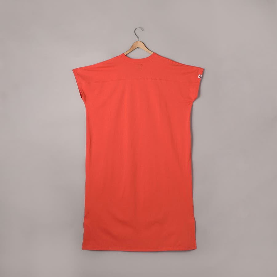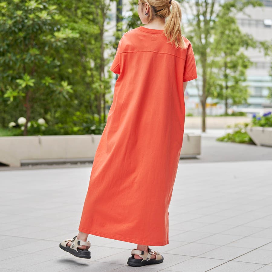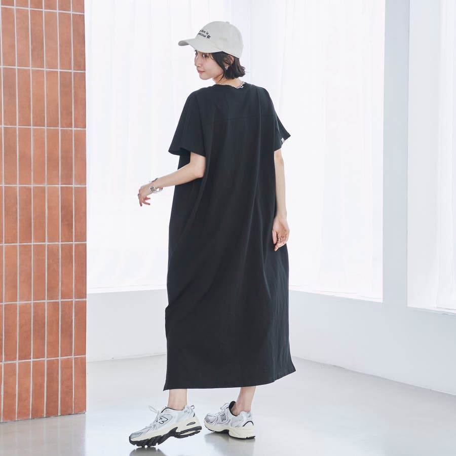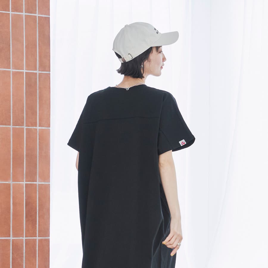 胸元に切替があり、フットボールTシャツをそのまま長くしたようなTシャツワンピースです。