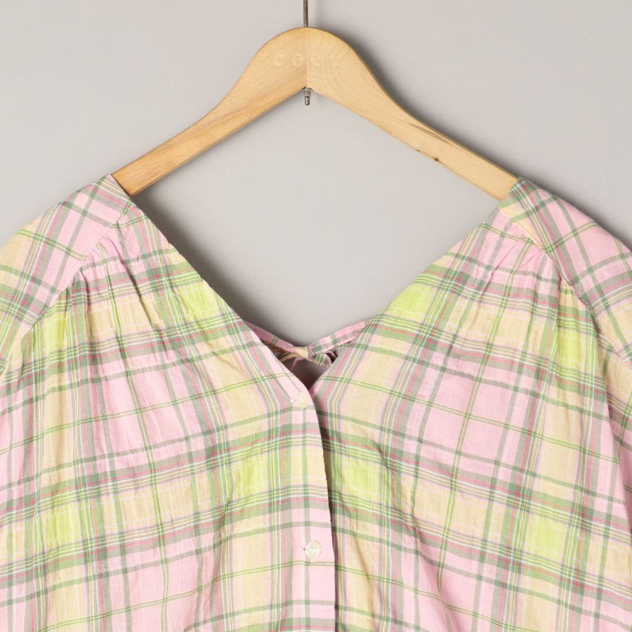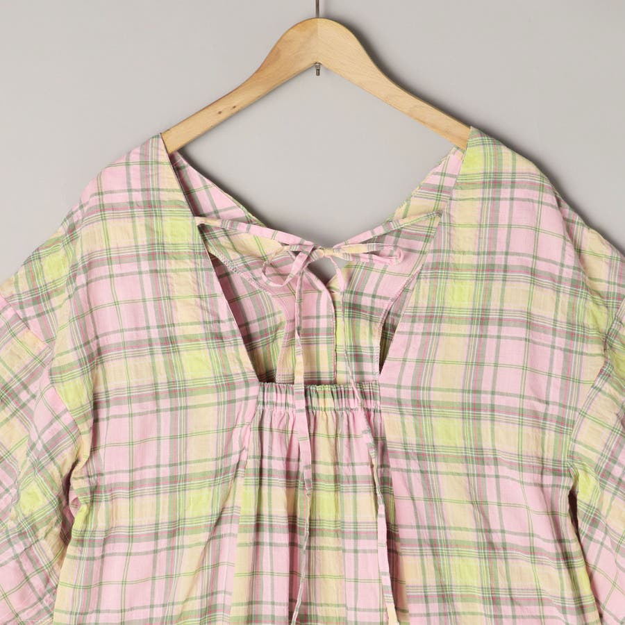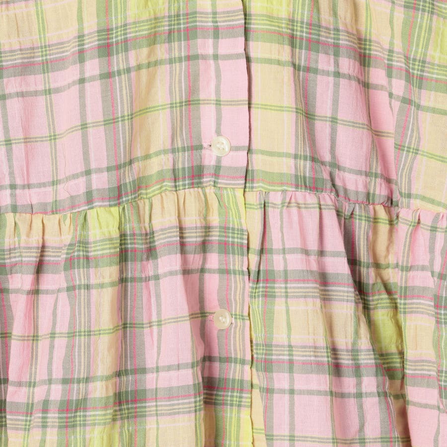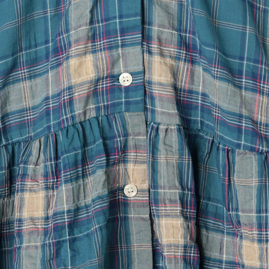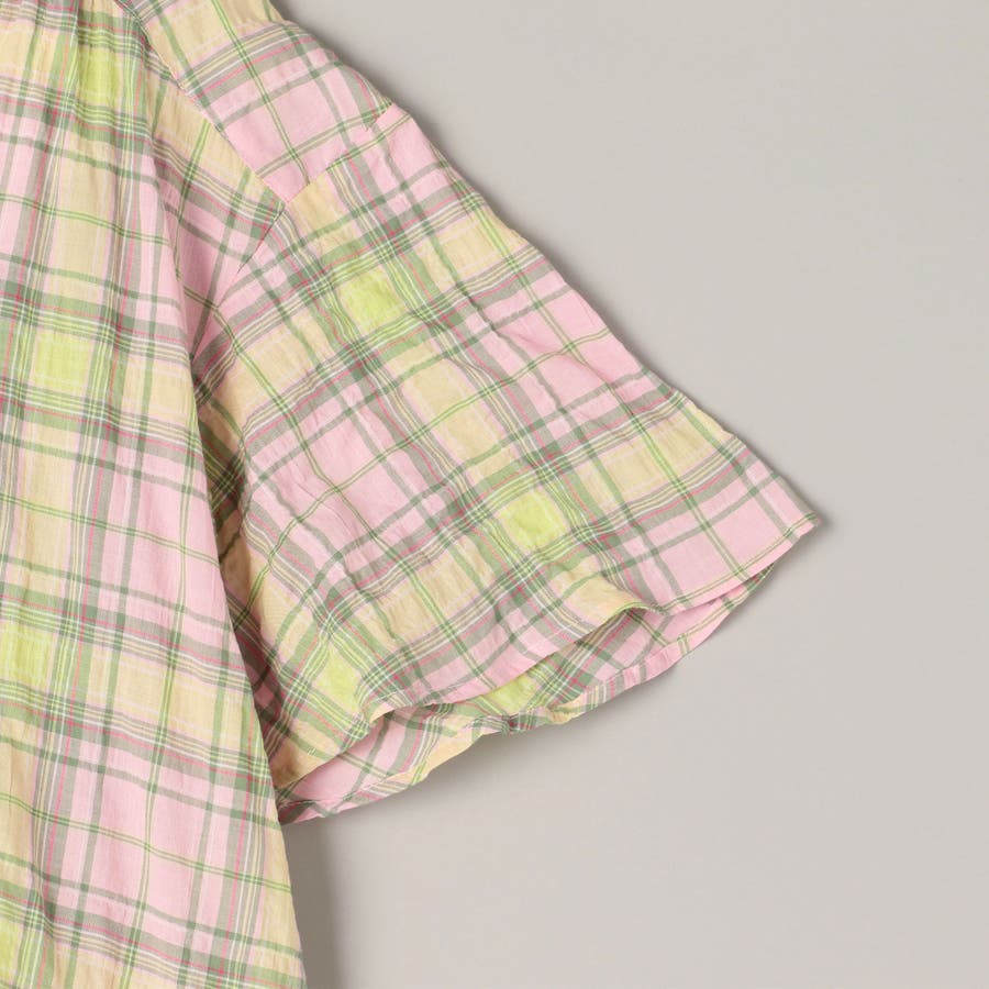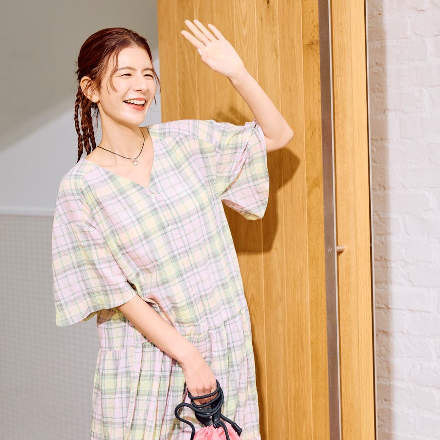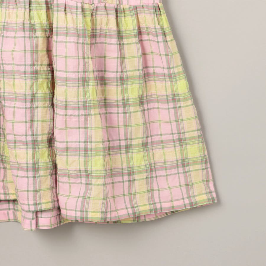 ●さらっとした肌触りと清涼感が魅力のシャーリングチェックを使用したフレアスリーブワンピース