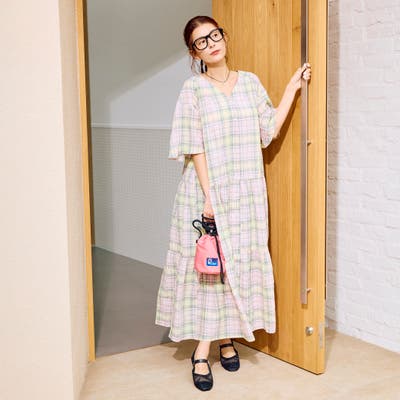 【スザンヌさんコラボ】Suuチェックフレアスリーブワンピース