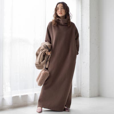 【WEB限定】着丈が選べる。CVC裏起毛タートルネックマキシワンピース