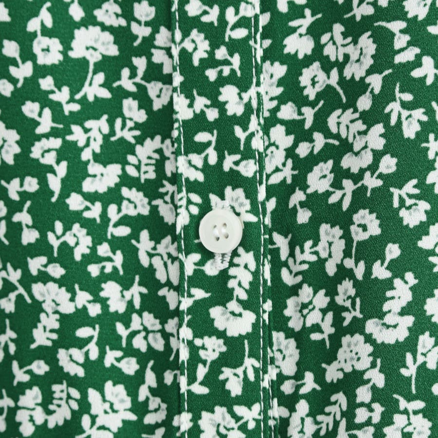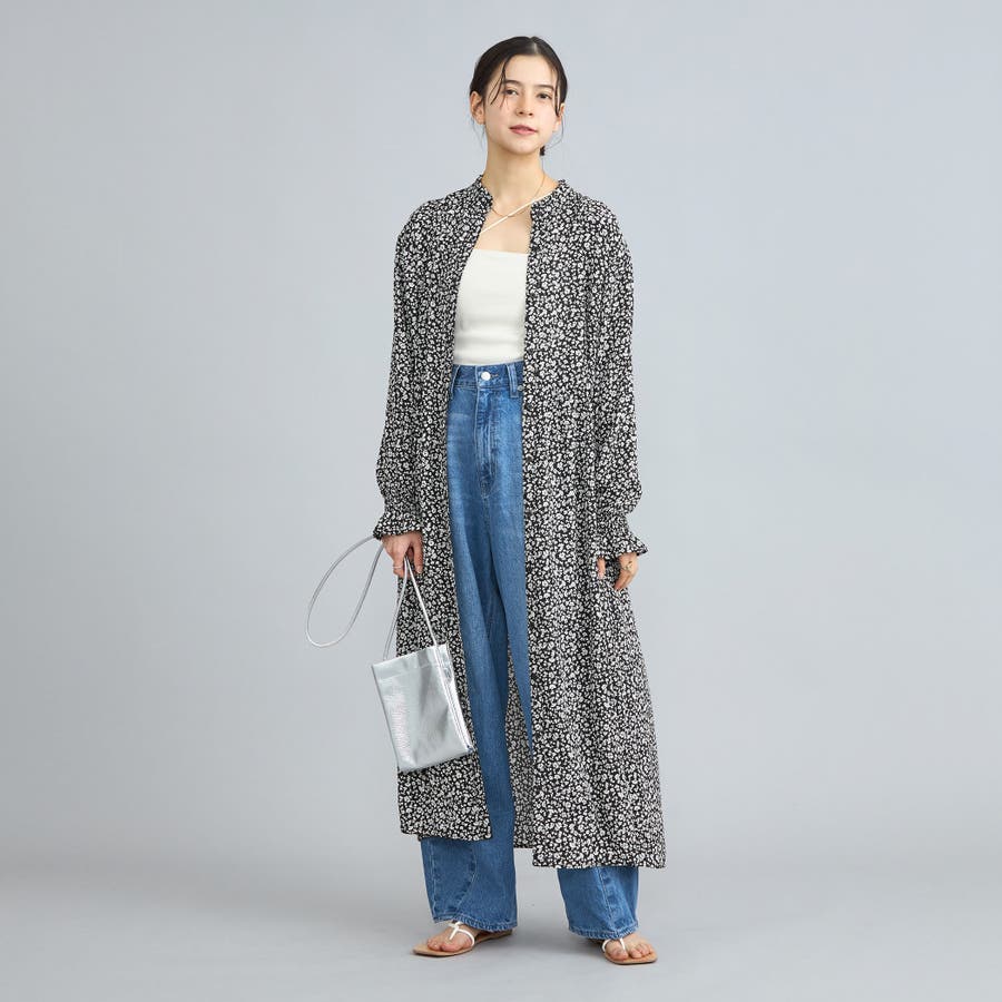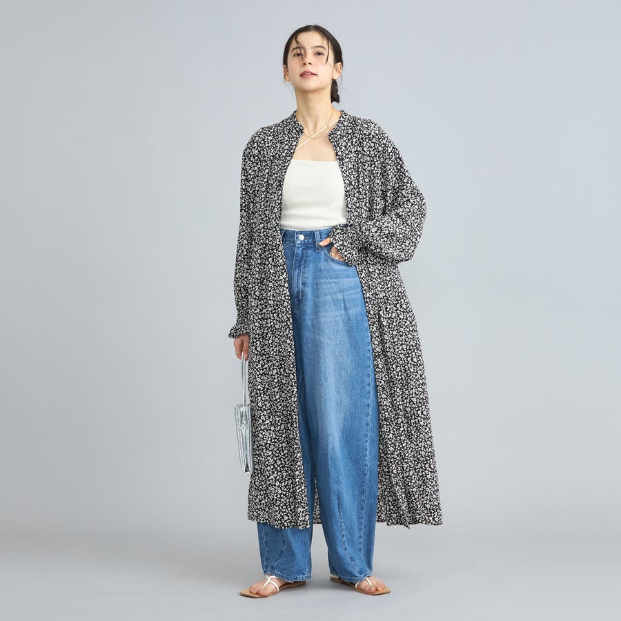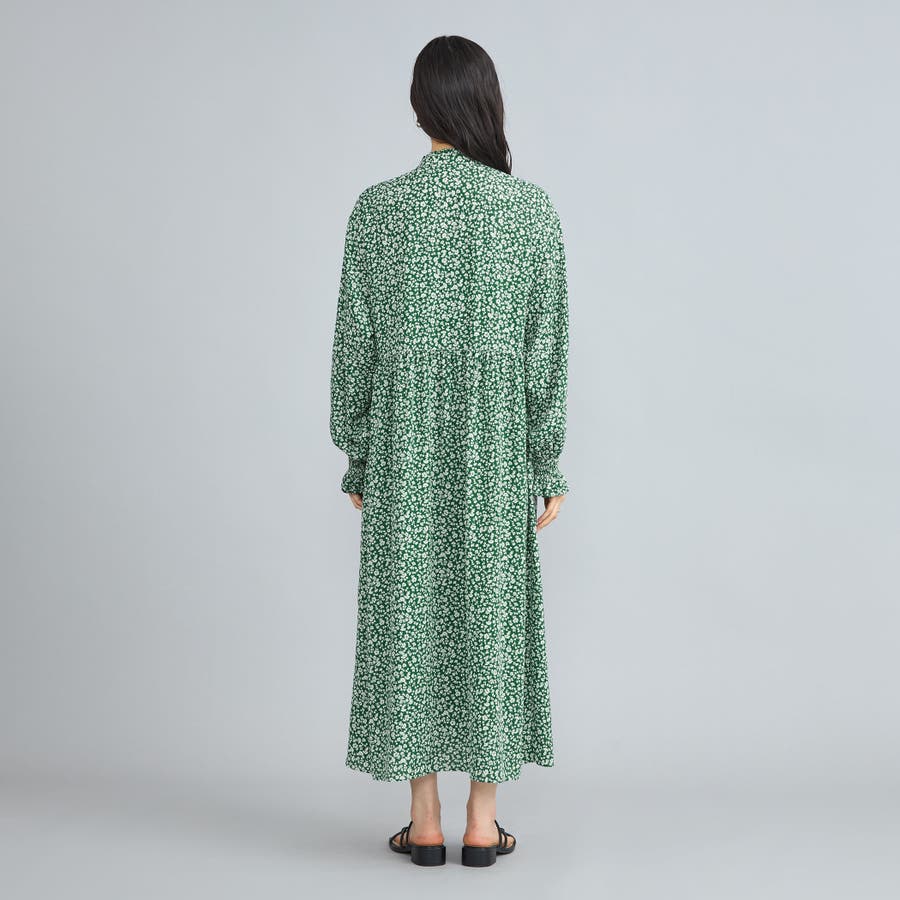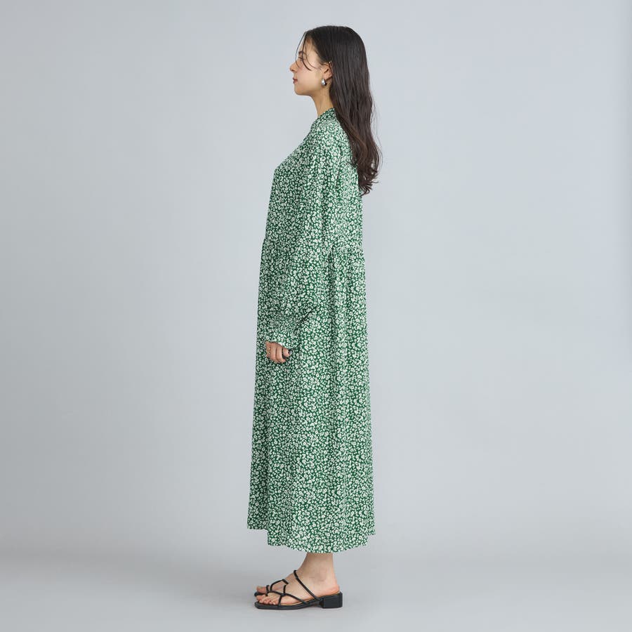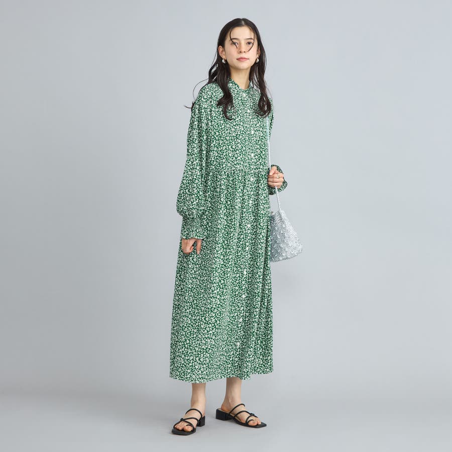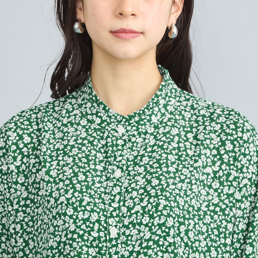 小花柄プリントフリルバンドカラーシャツワンピーズ