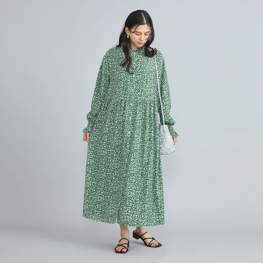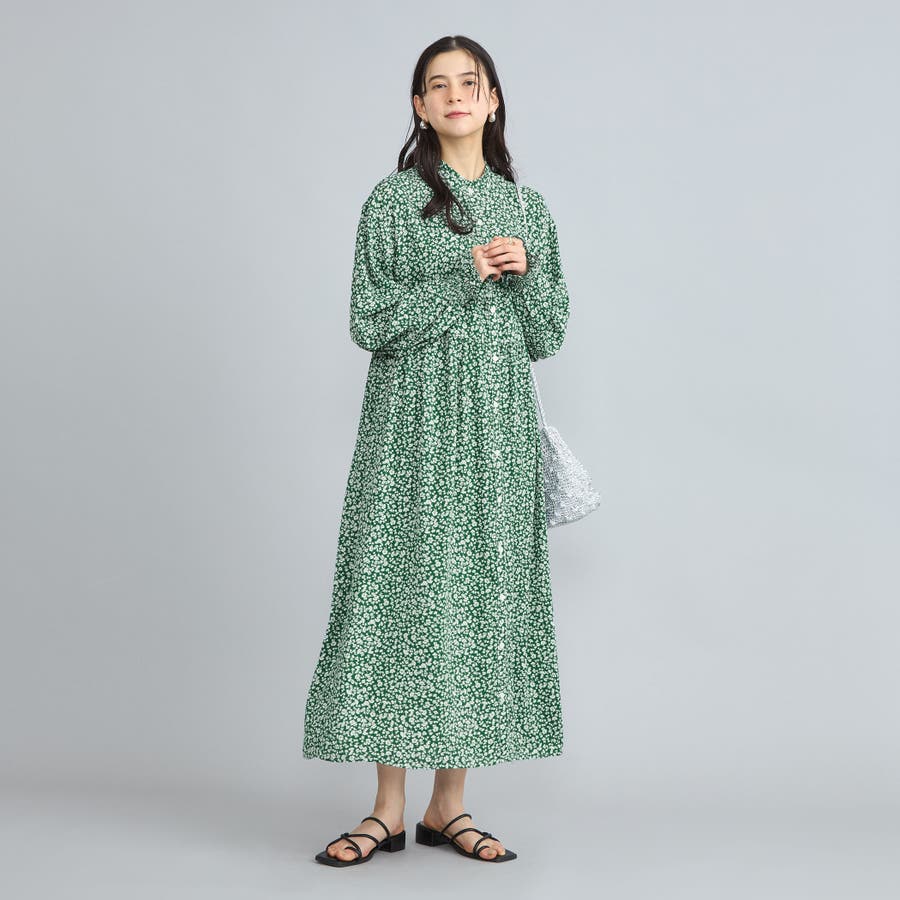 上品で愛らしい印象の小花柄プリントのワンピース。